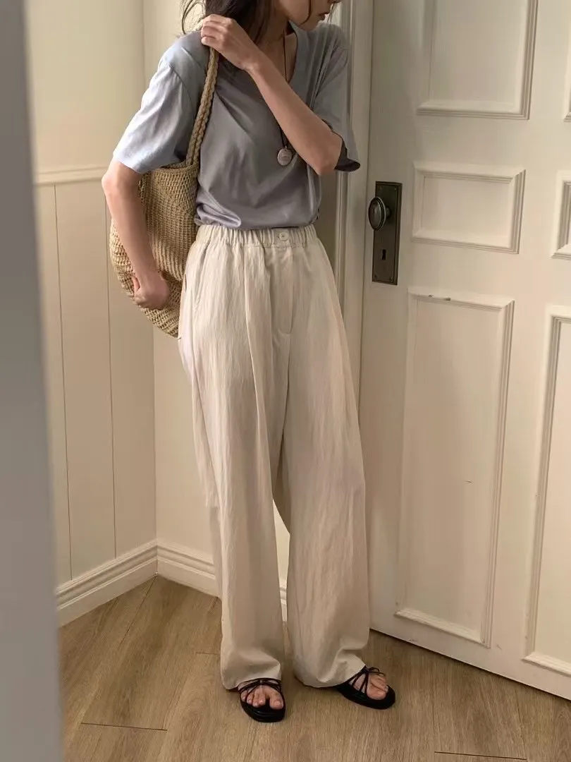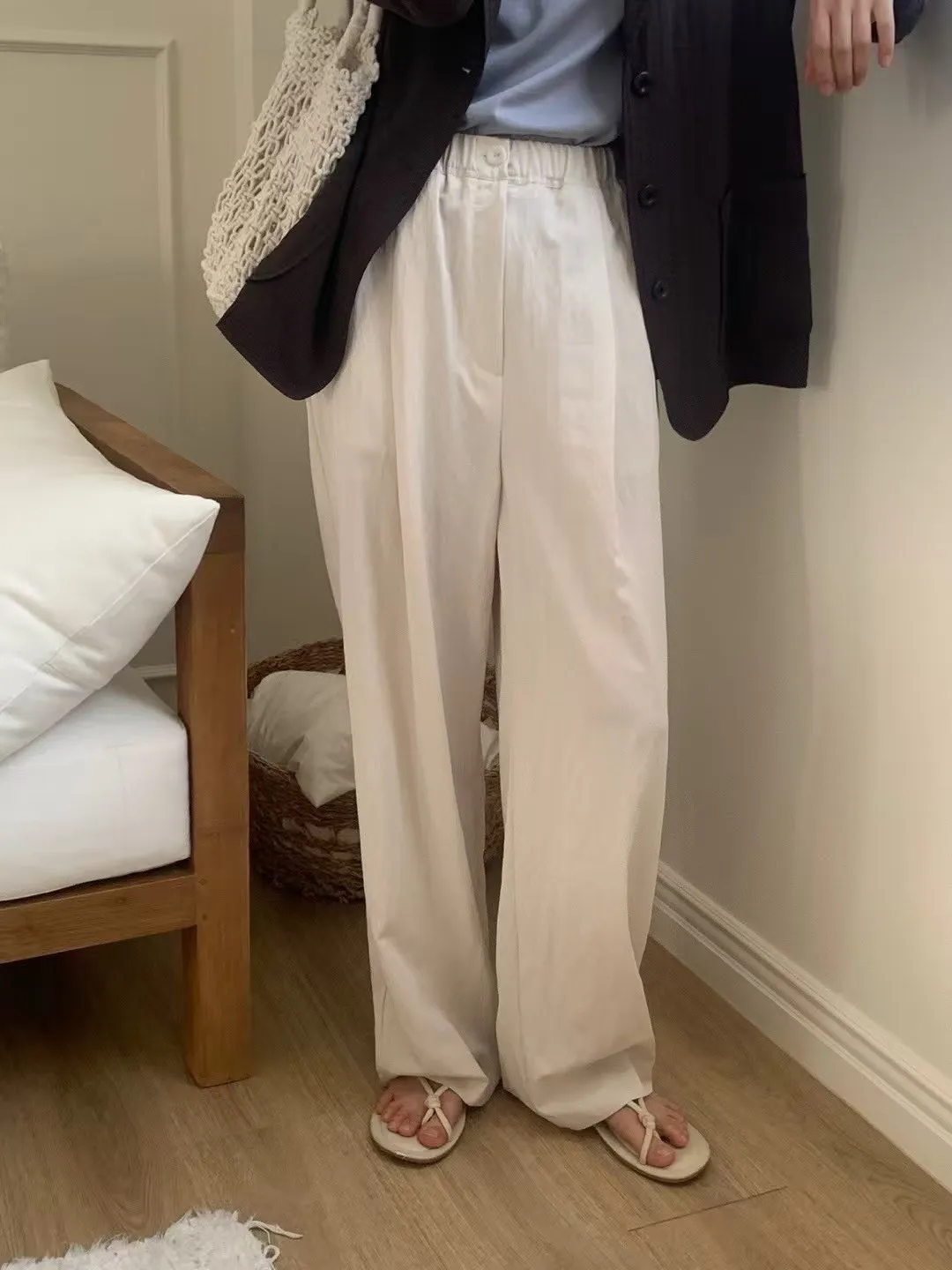 棉 薄款舒適 釦鍊穿脫 腰有鬆緊 有口袋 空間寬鬆 前腿摺線 適合夏天