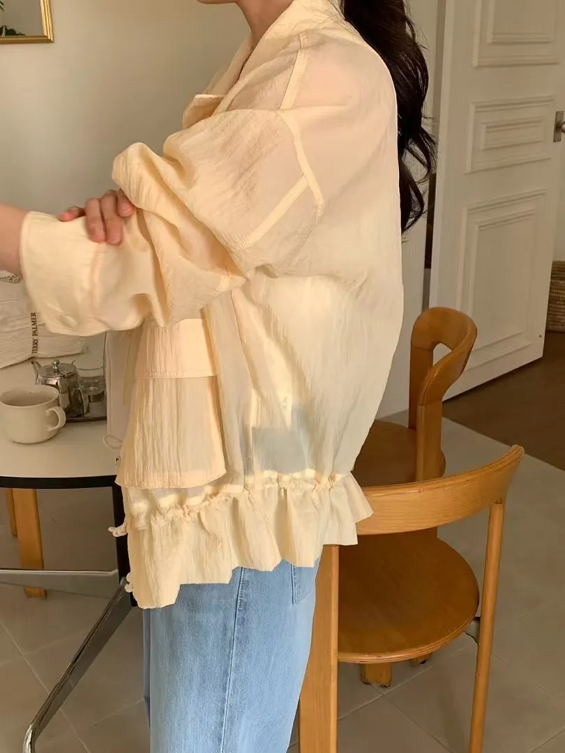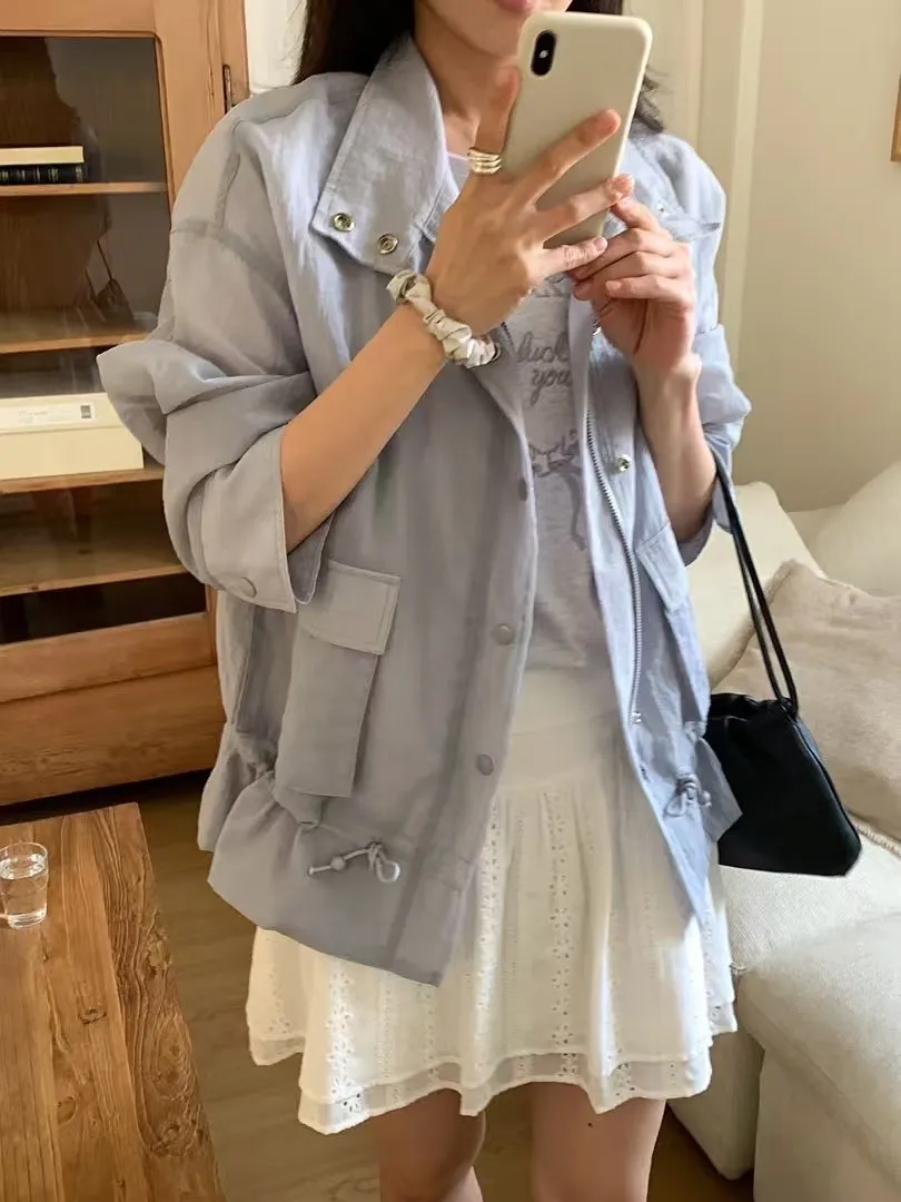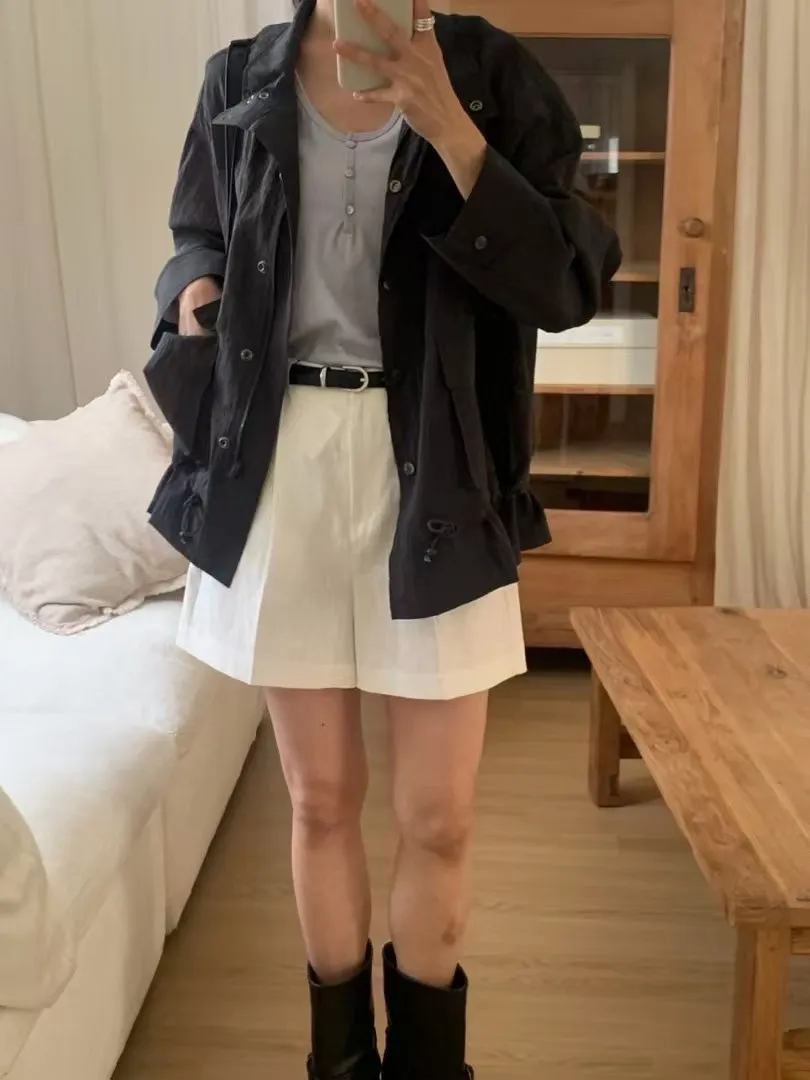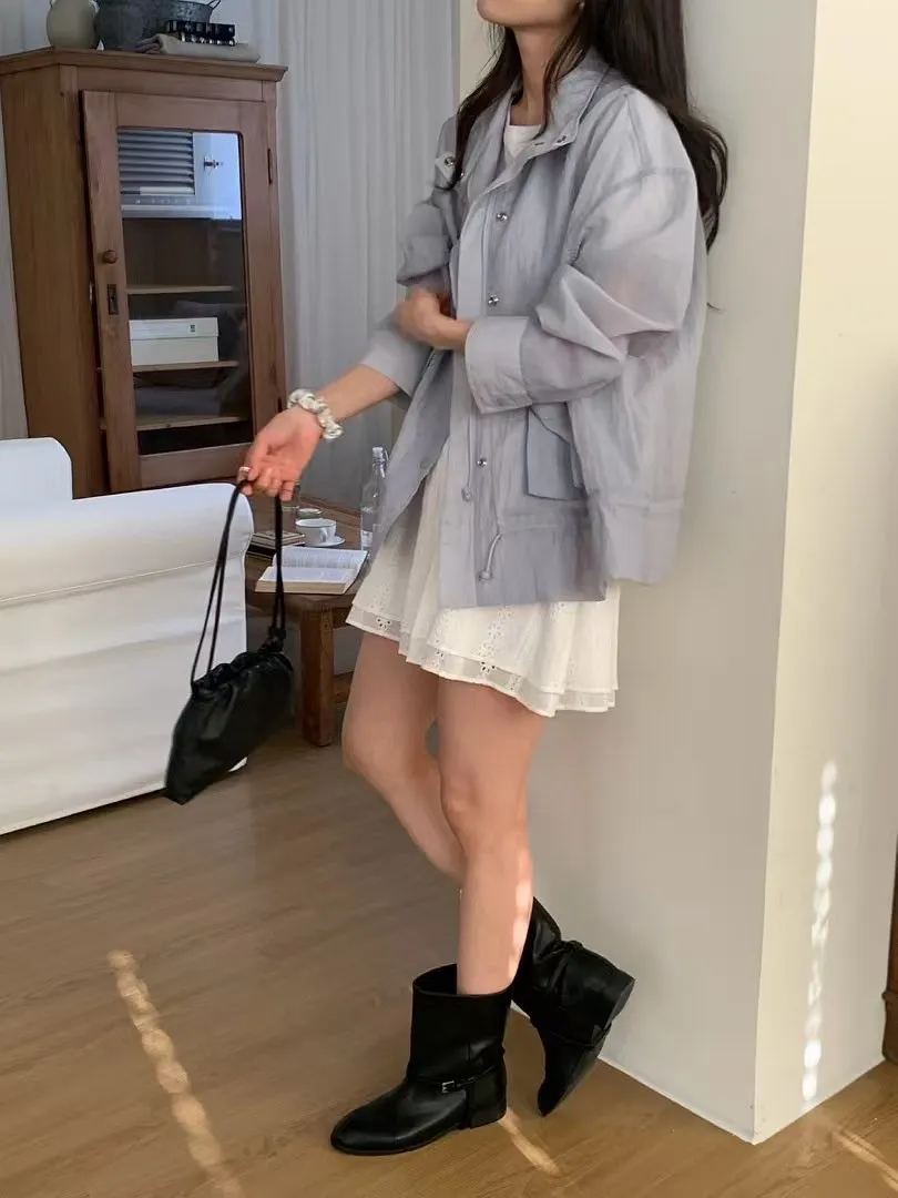 棉+聚酯 非常薄款 細緻面料 無內裡有口袋 釦子穿脫 XL友善