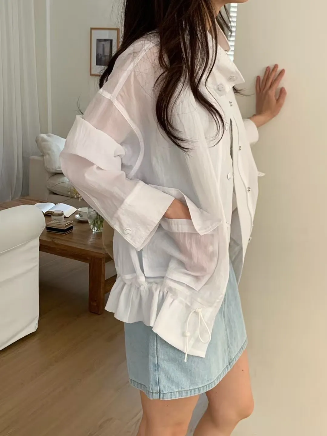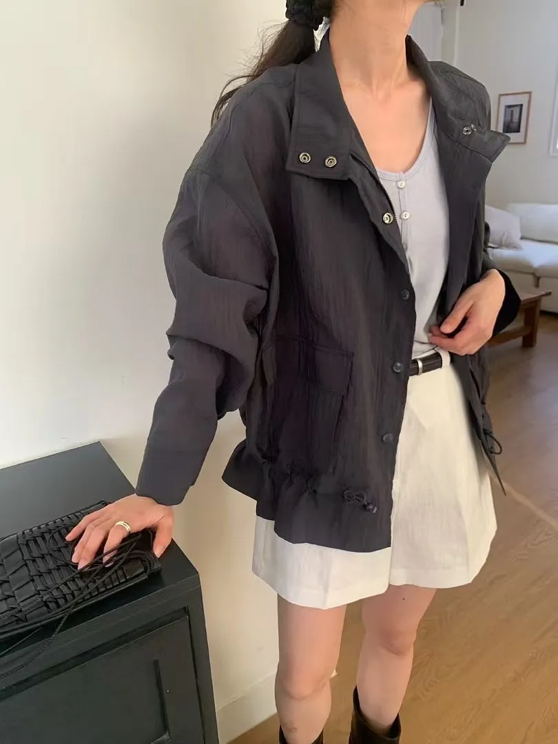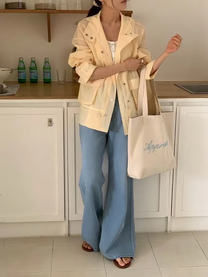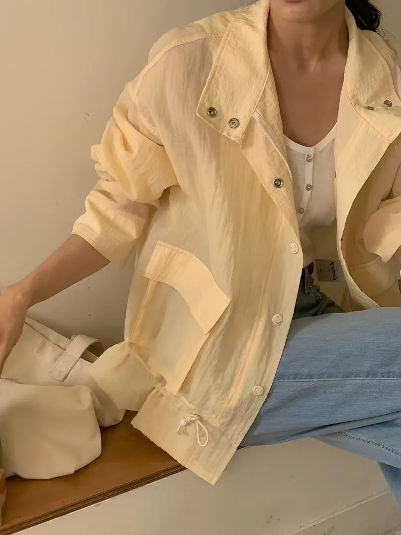 棉+聚酯 非常薄款 細緻面料 無內裡有口袋 釦子穿脫 XL友善