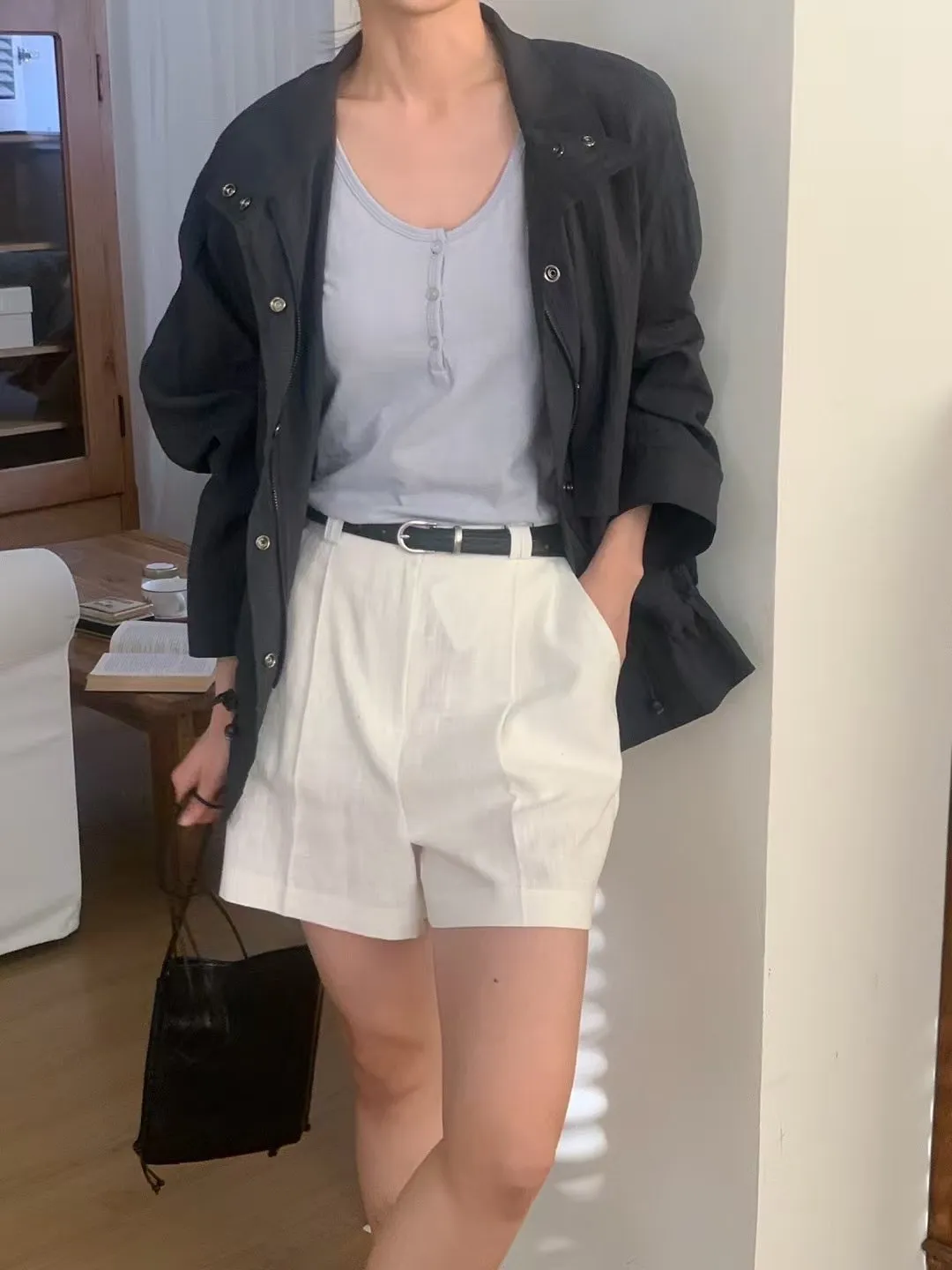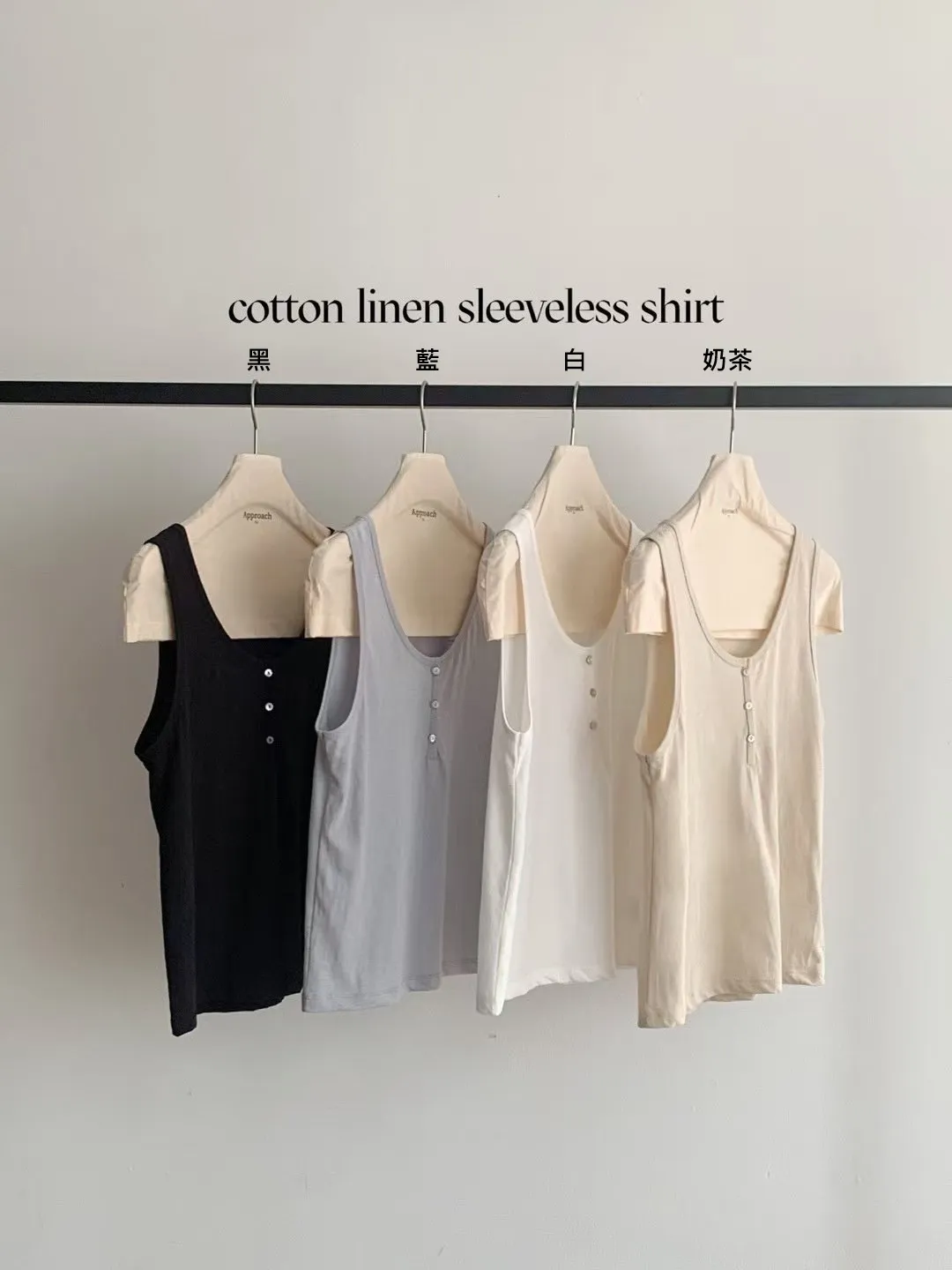 棉+亞麻+彈力 面料有彈性 胸前三釦