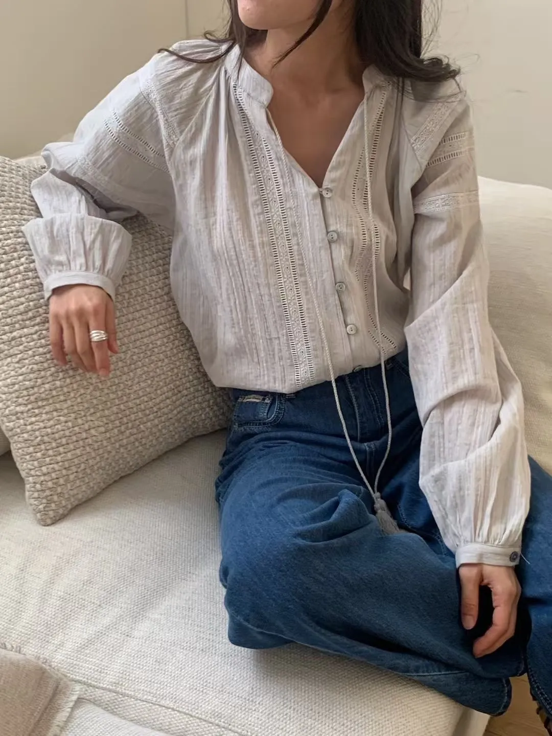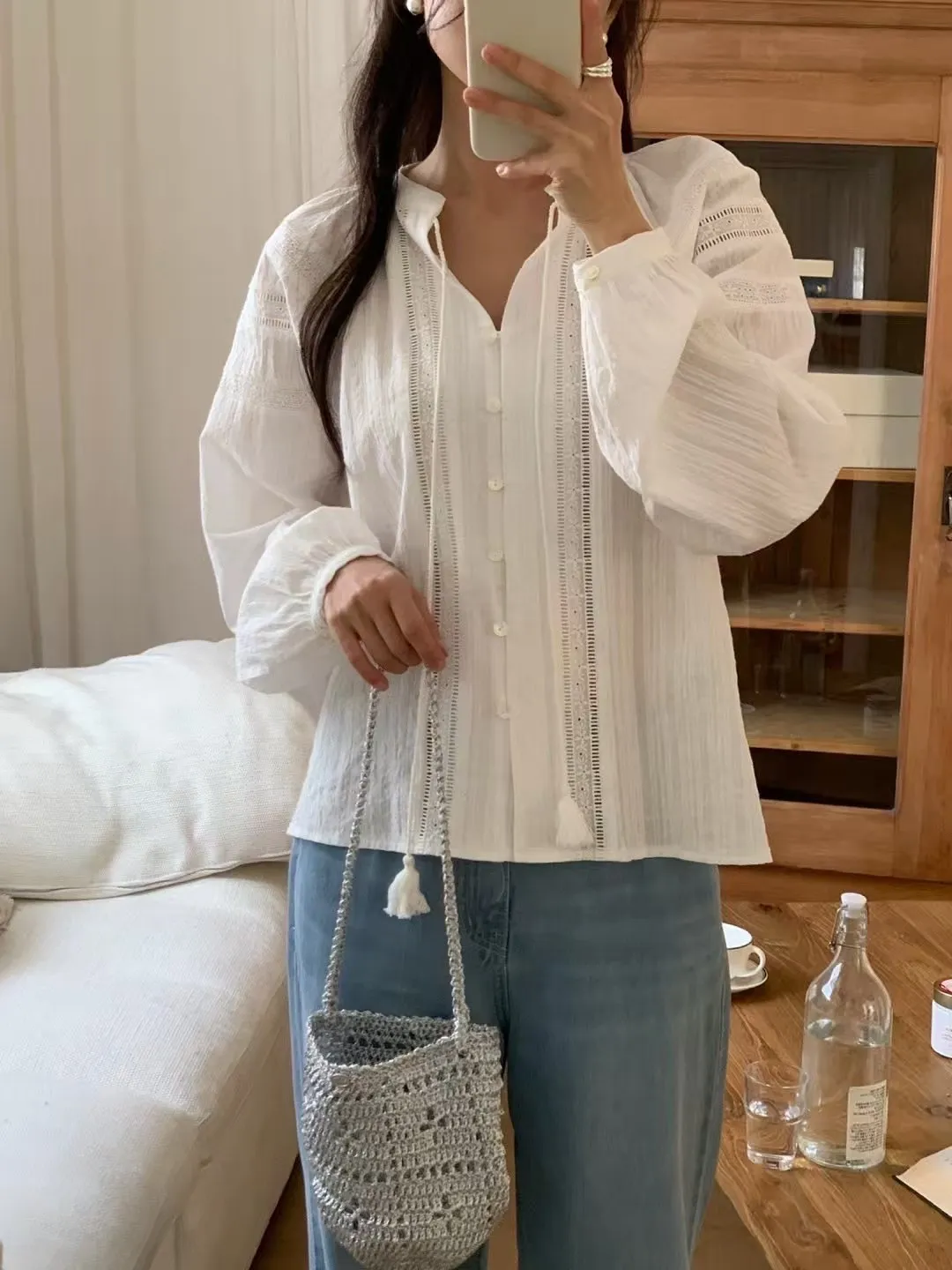 棉 透氣舒適 胸綁帶 肩線抓皺 V領顯瘦 細緻微透蕾絲