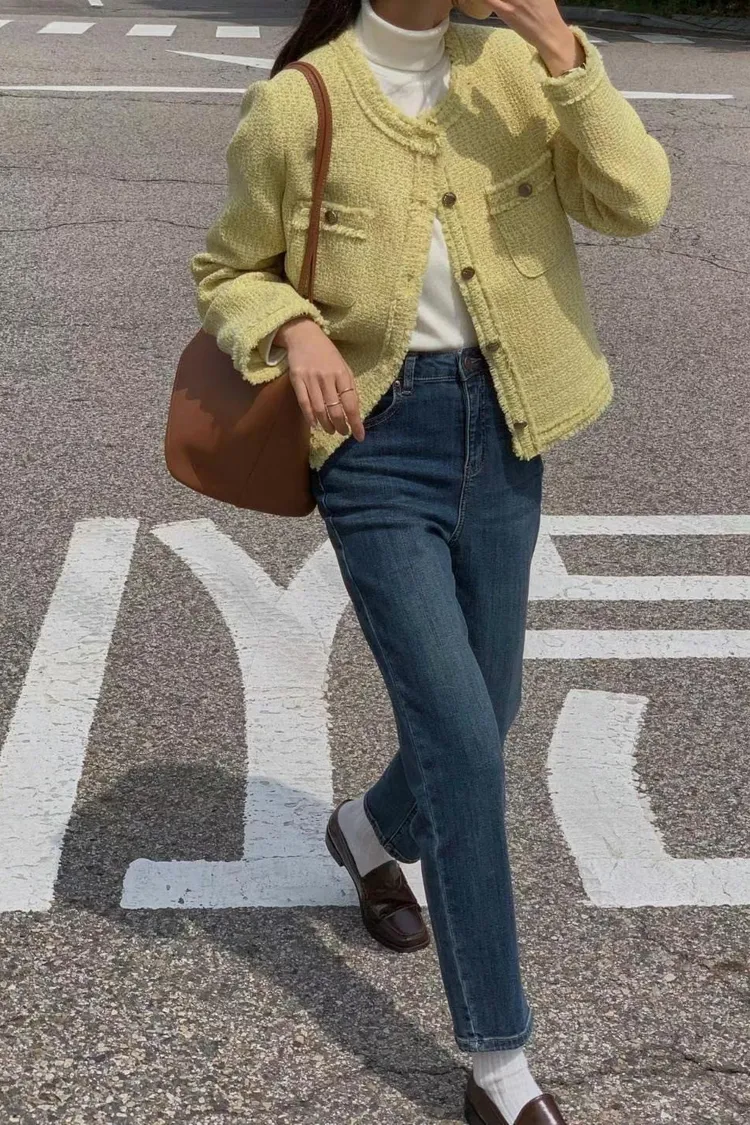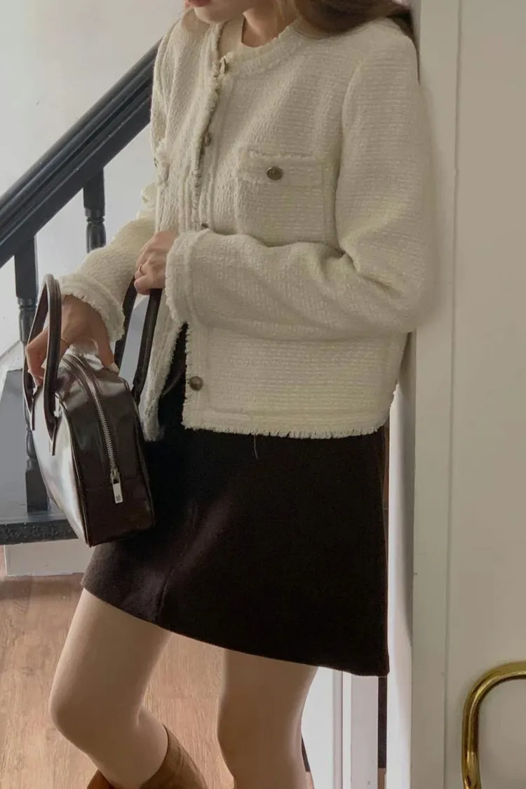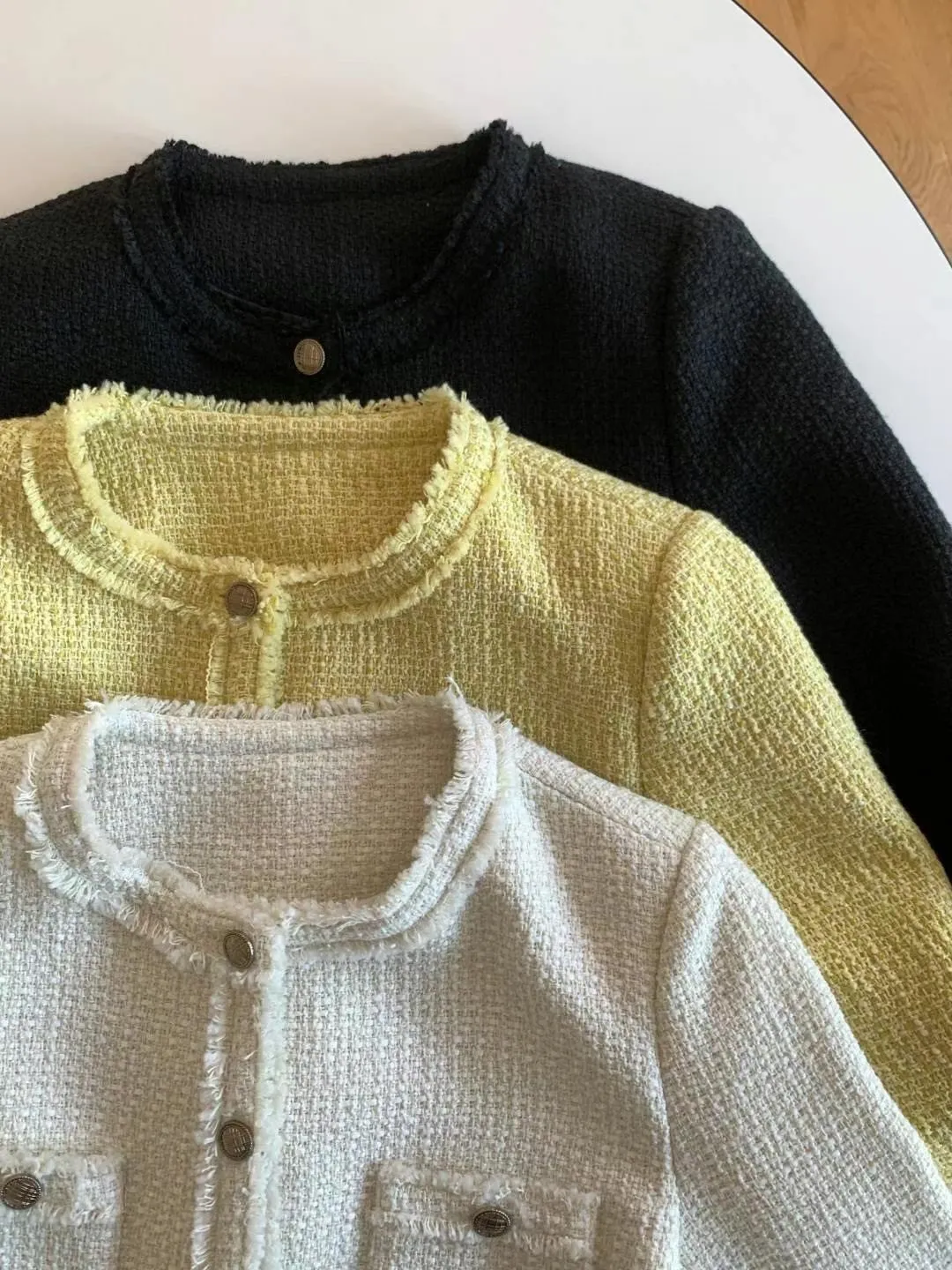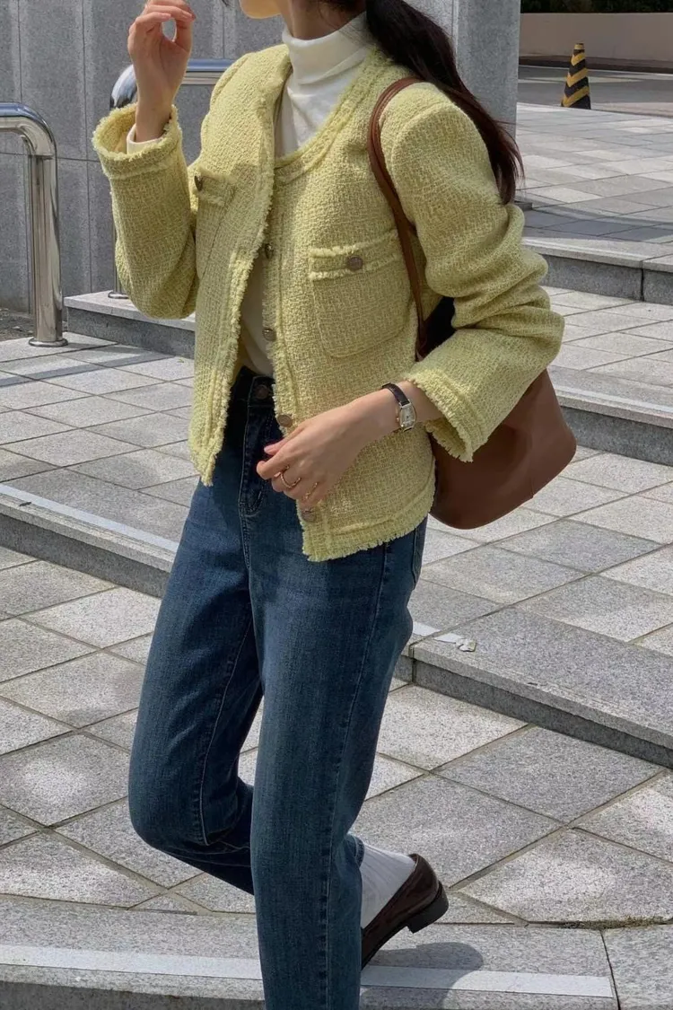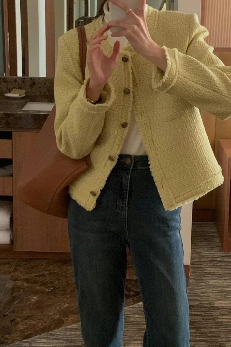KC161質感小香短版外套 米 黃 黑 S M 線上價$1620 官網價$1650