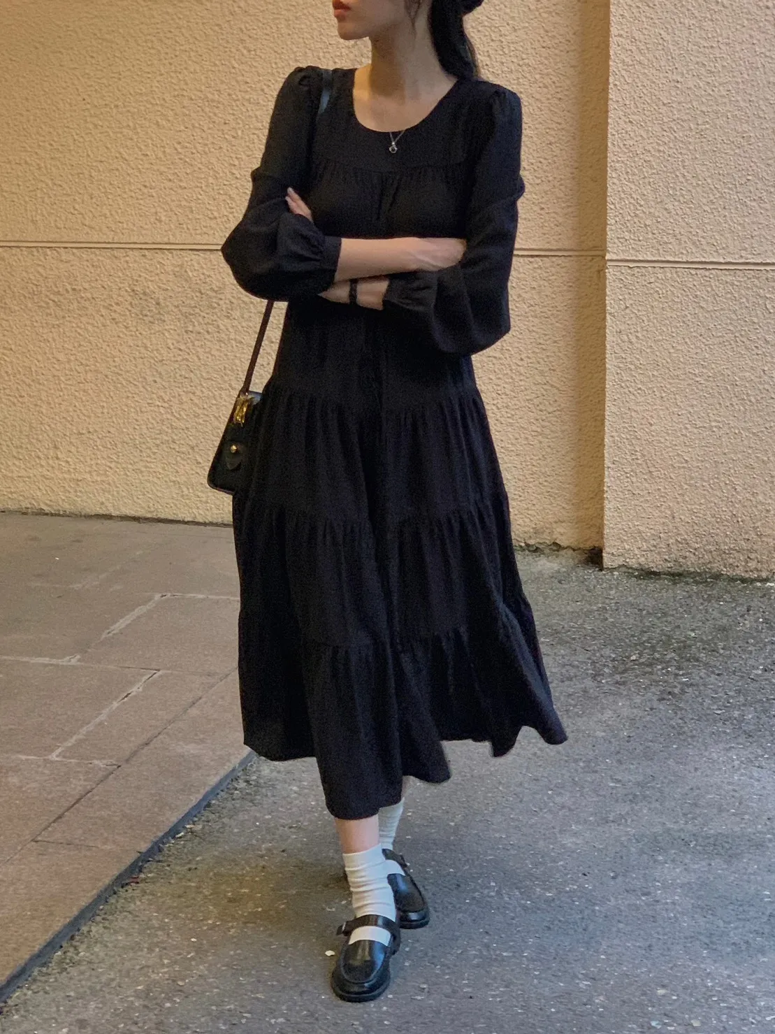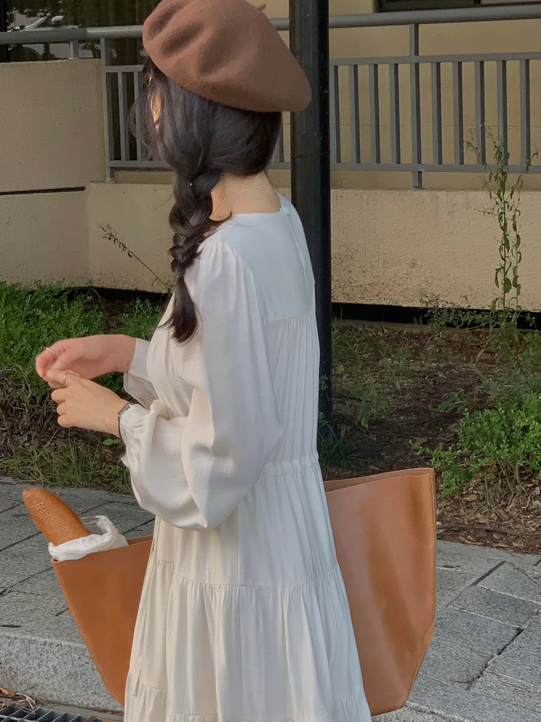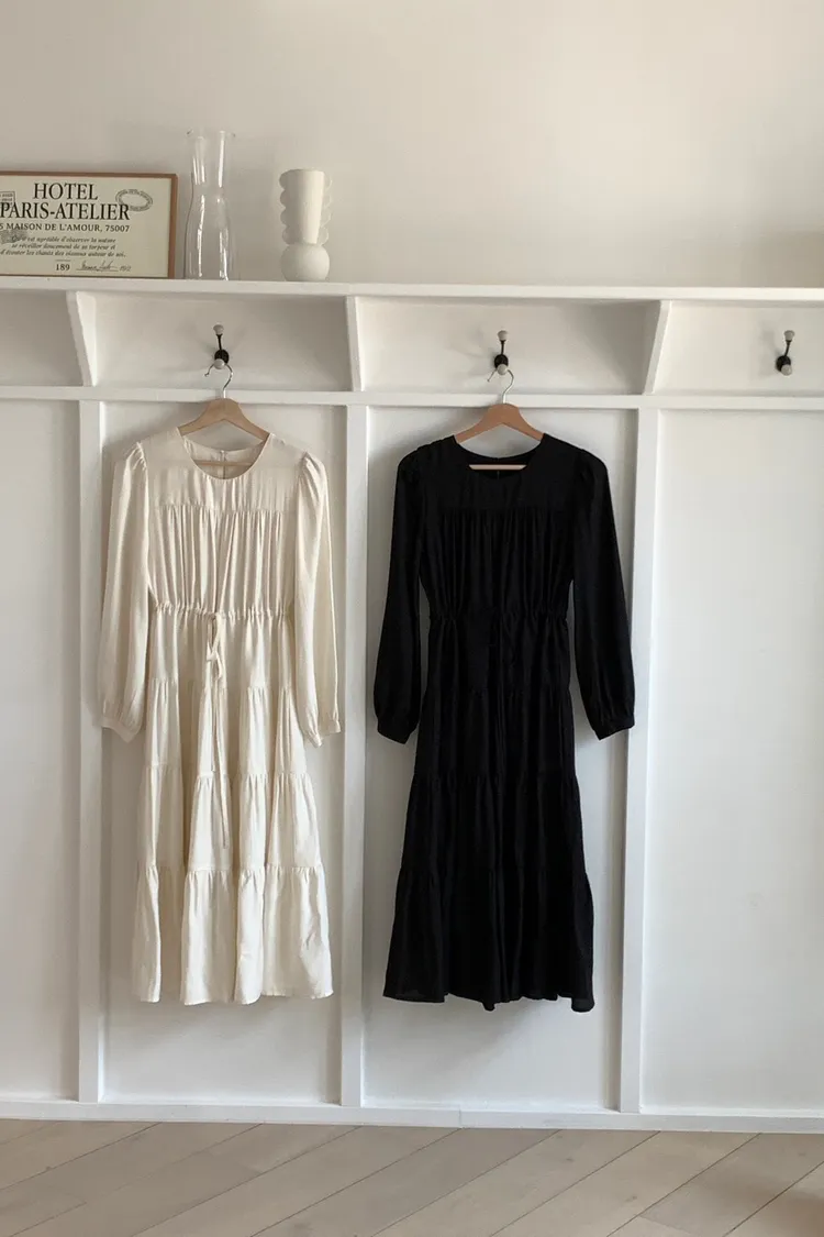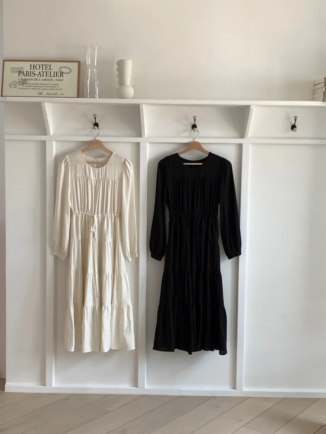 KC190圓領風琴細弦摺線洋裝 白 黑 線上價$1260 官網價$1290