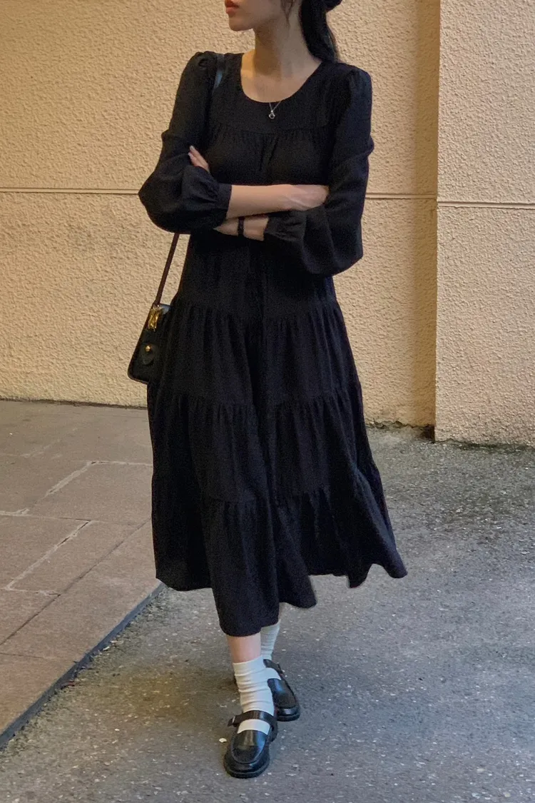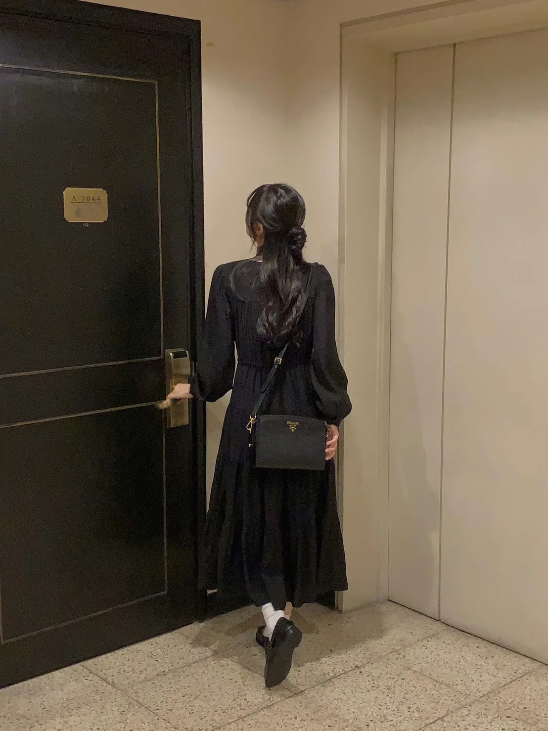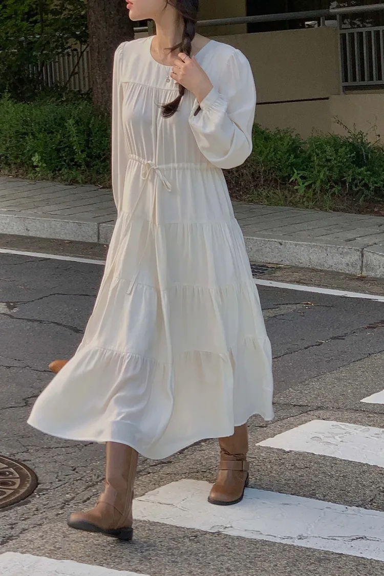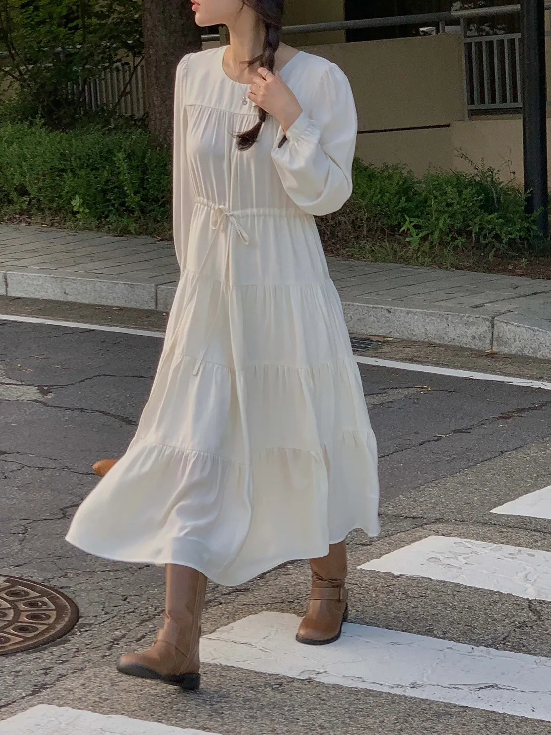 KC190圓領風琴細弦摺線洋裝 白 黑 線上價$1260 官網價$1290