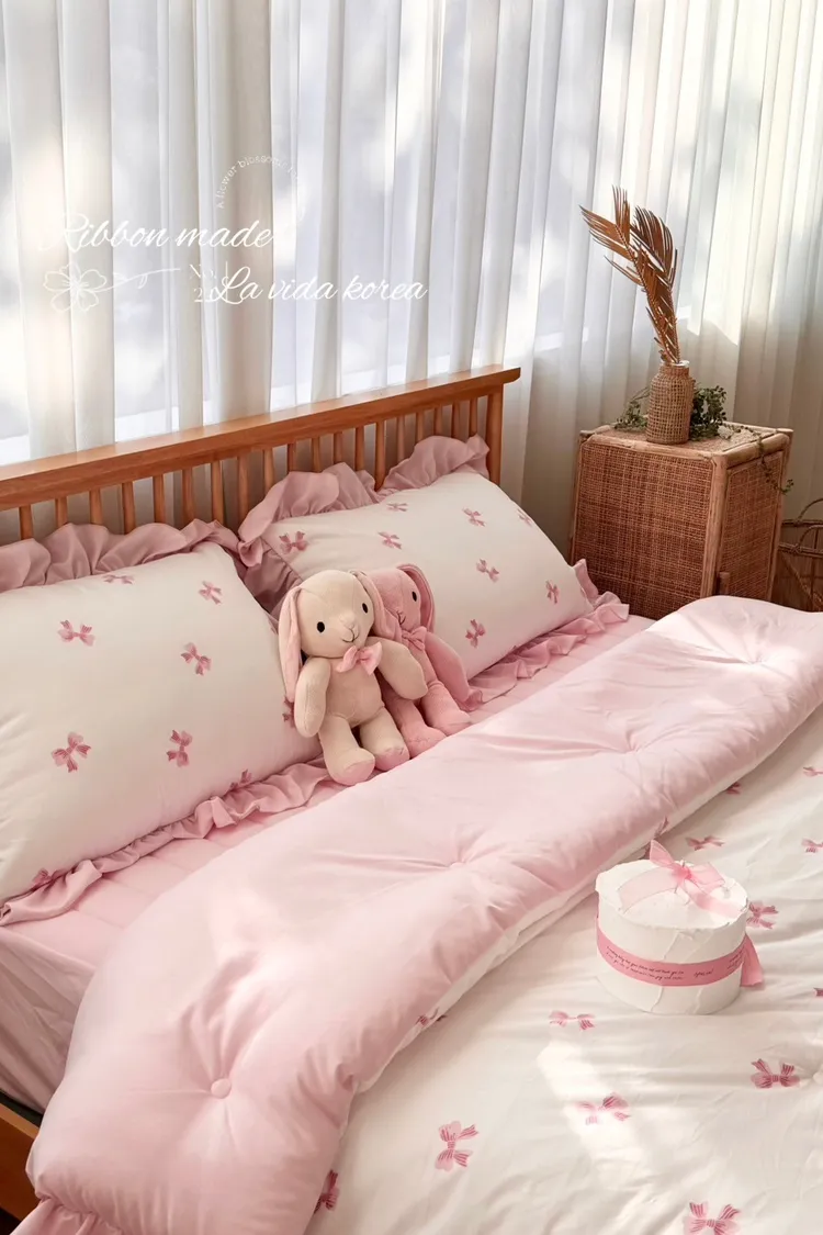 KK003韓製Lavida自訂款蝴蝶結床包 藍 粉 單人$1190 雙人$1280 King$1480