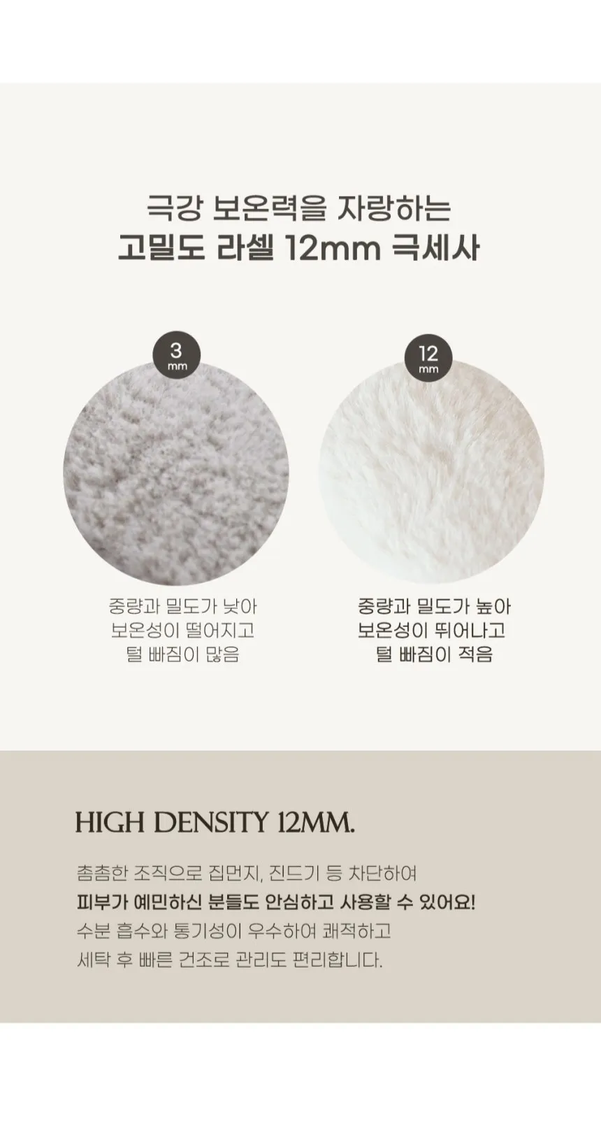 高密度12MM高重量和密度提供出色的保暖性並減少皮毛脫落。