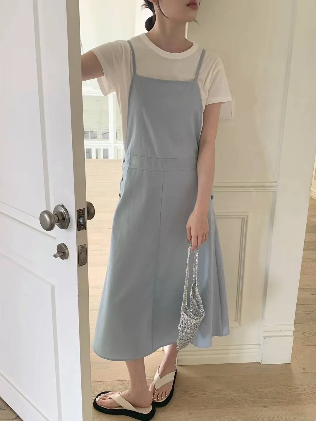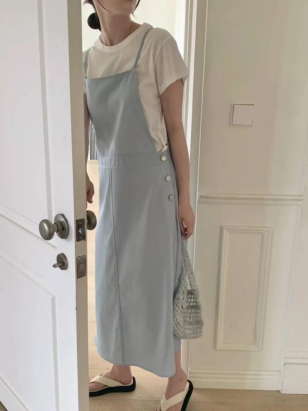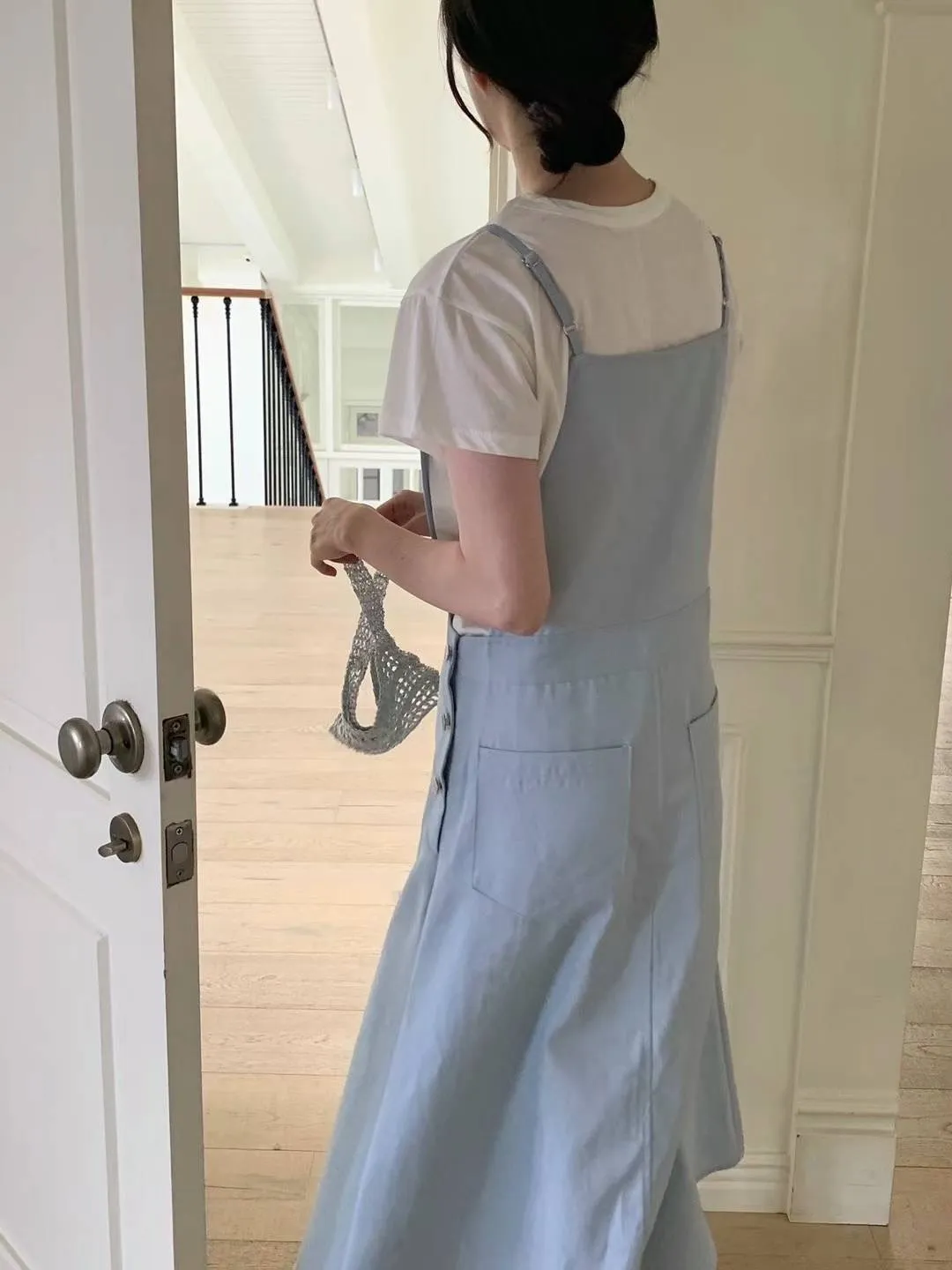 棉 薄款輕盈 肩帶可調 側腰釦穿脫 有口袋 穿到M號