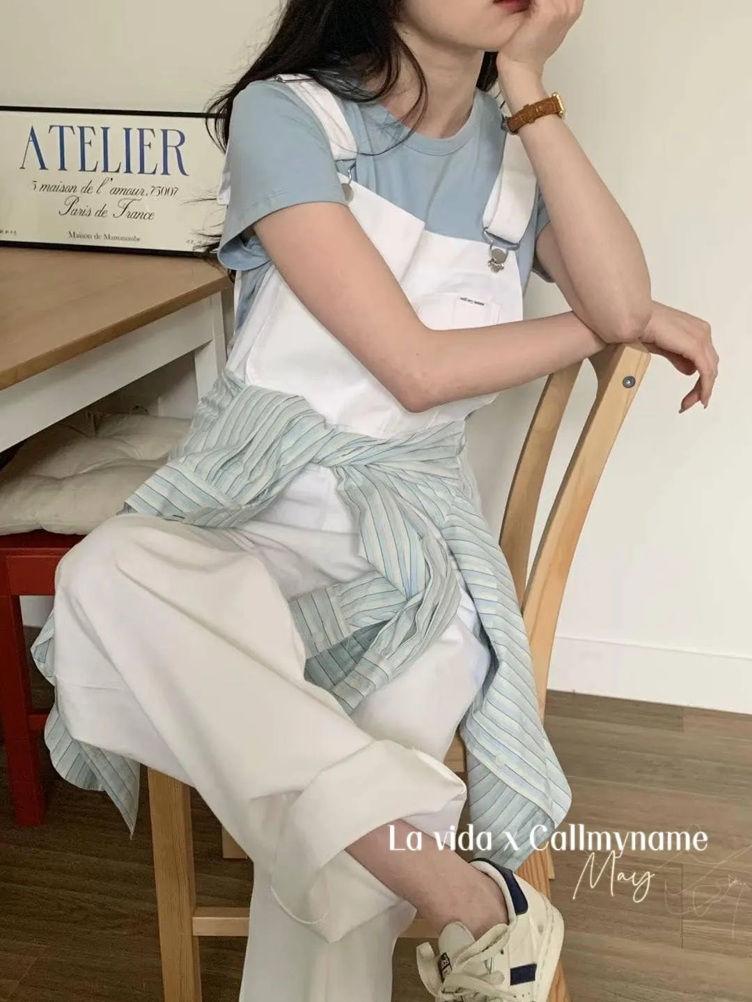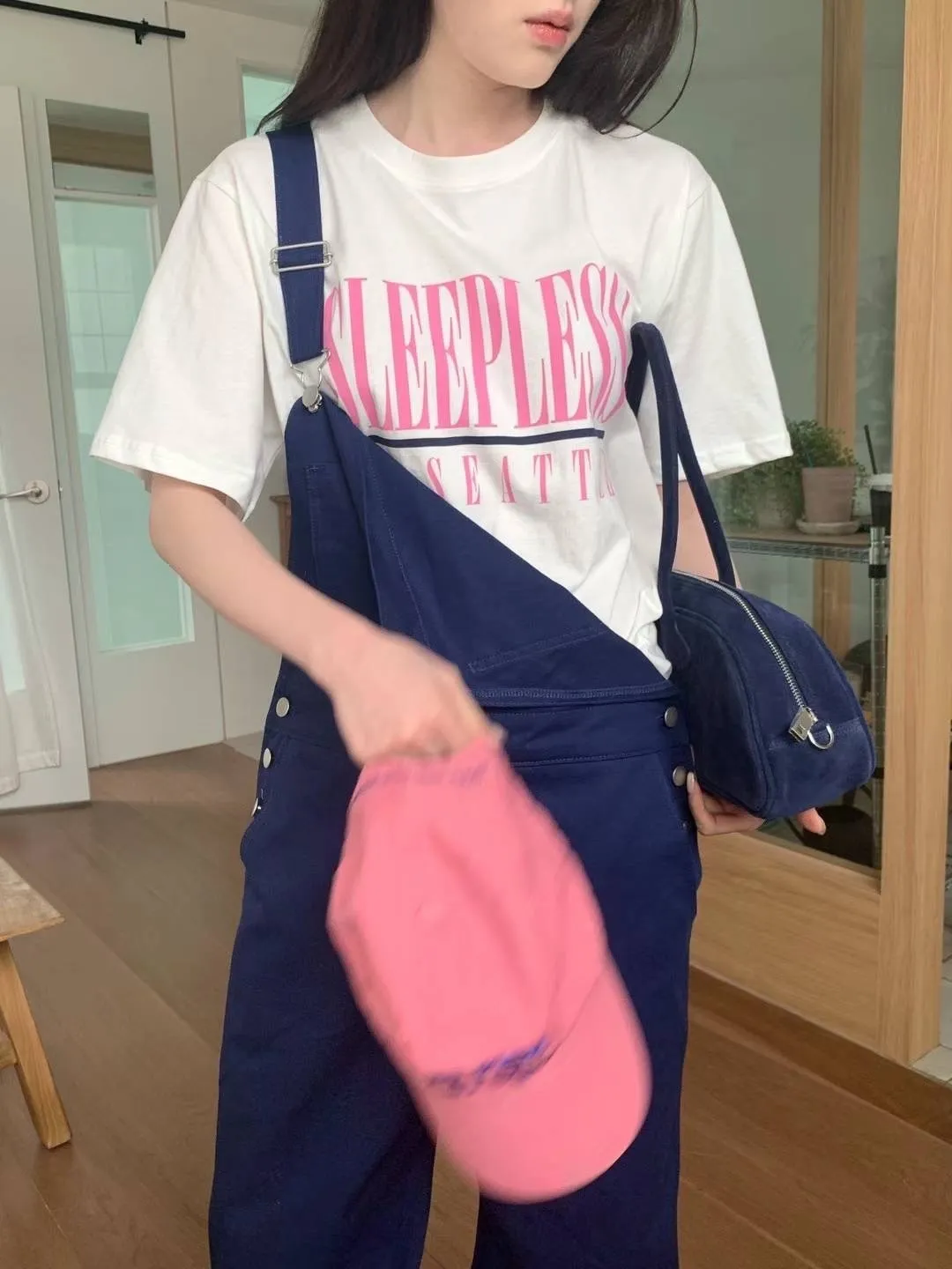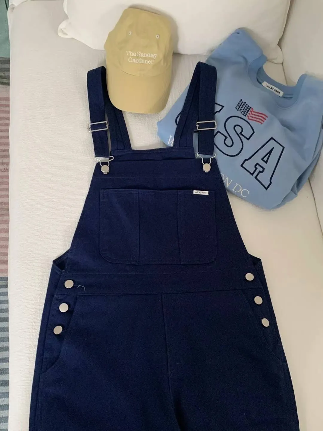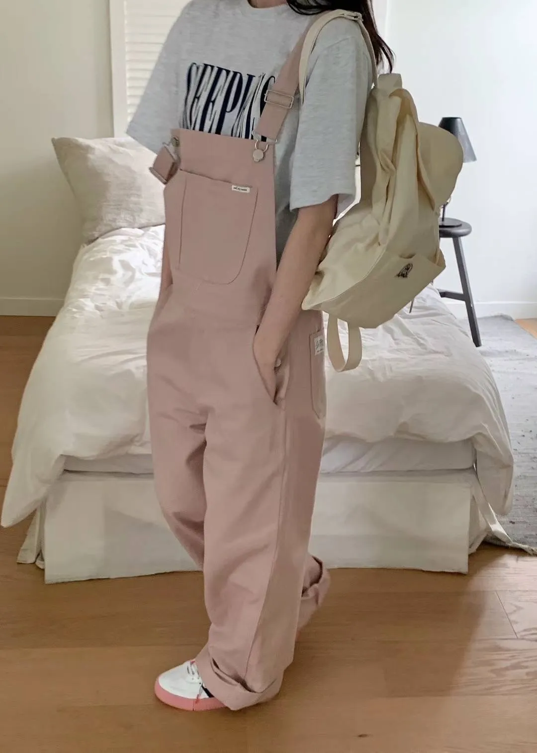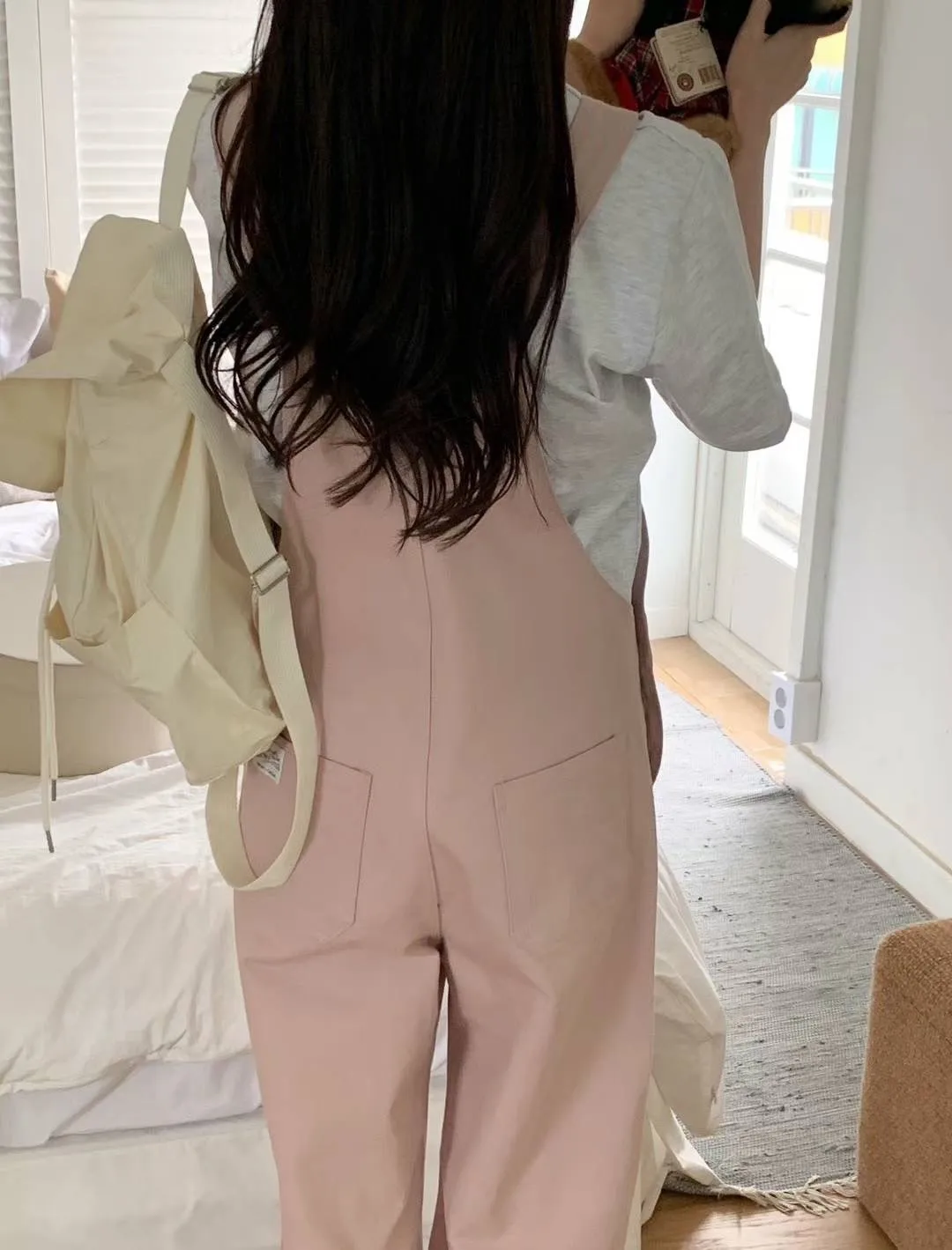 棉 空間寬鬆 有口袋 肩帶可調 褲管偏長