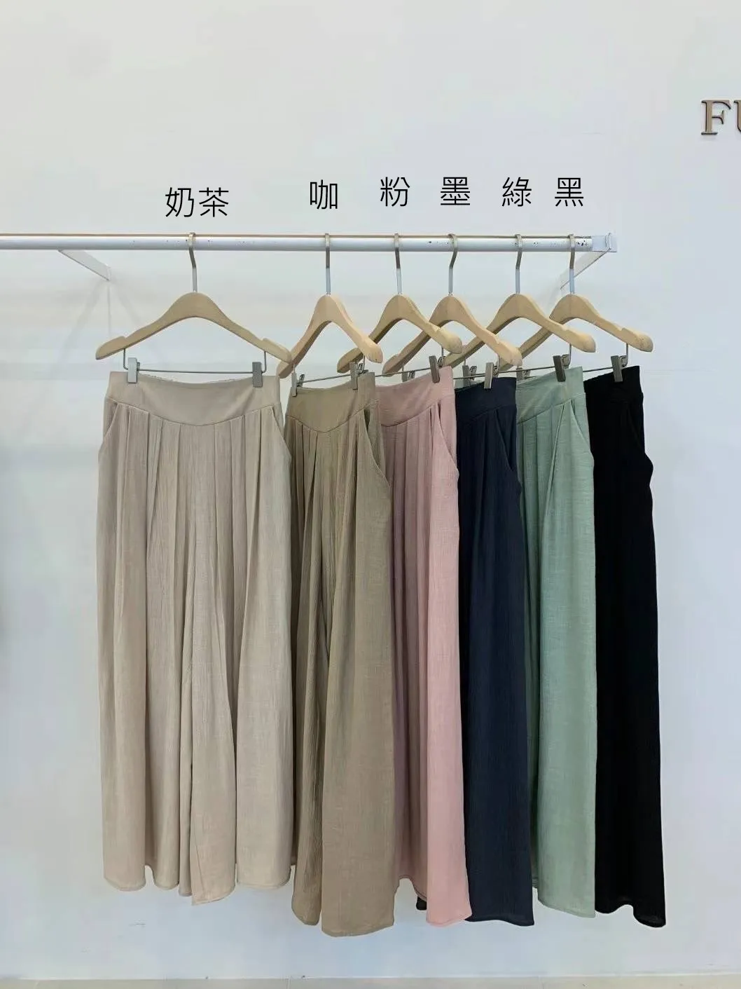 KM041輕盈腰封寬褲 咖 粉 綠 墨 黑 奶茶 官網價$1150 線上價$1120