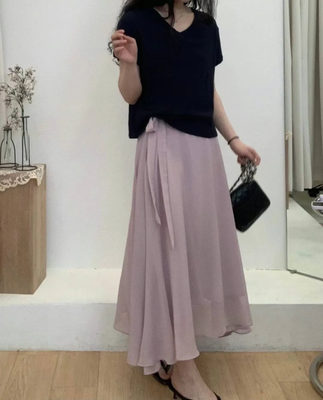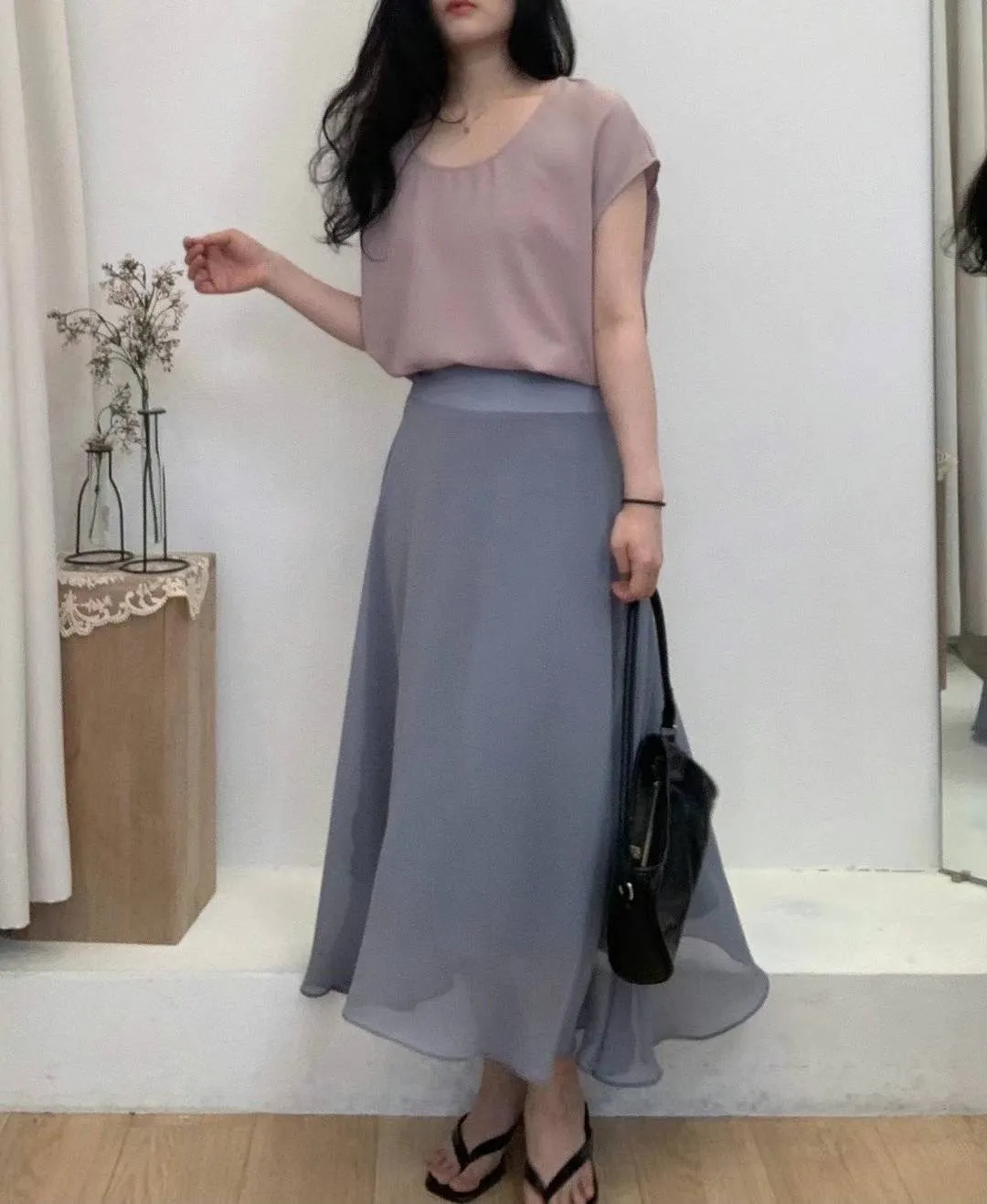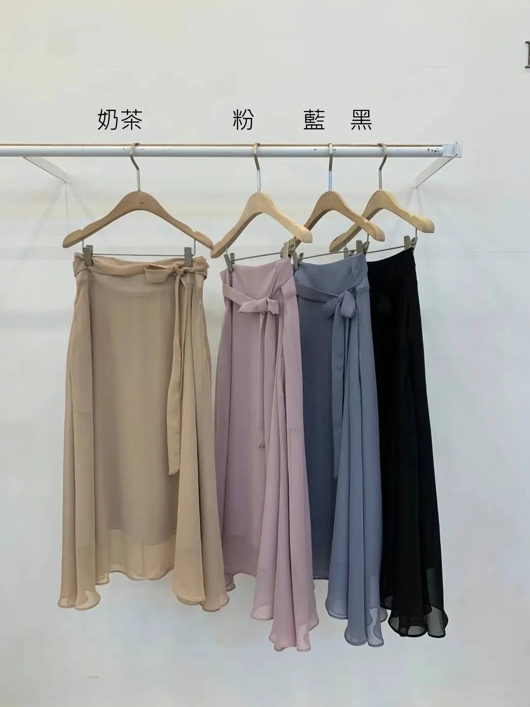KM044高級雪紡飄逸腰綁帶裙子 黑 粉 藍 奶茶 官網價$1090 線上價$1060