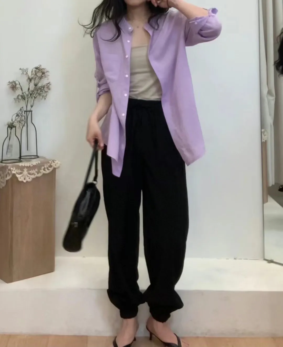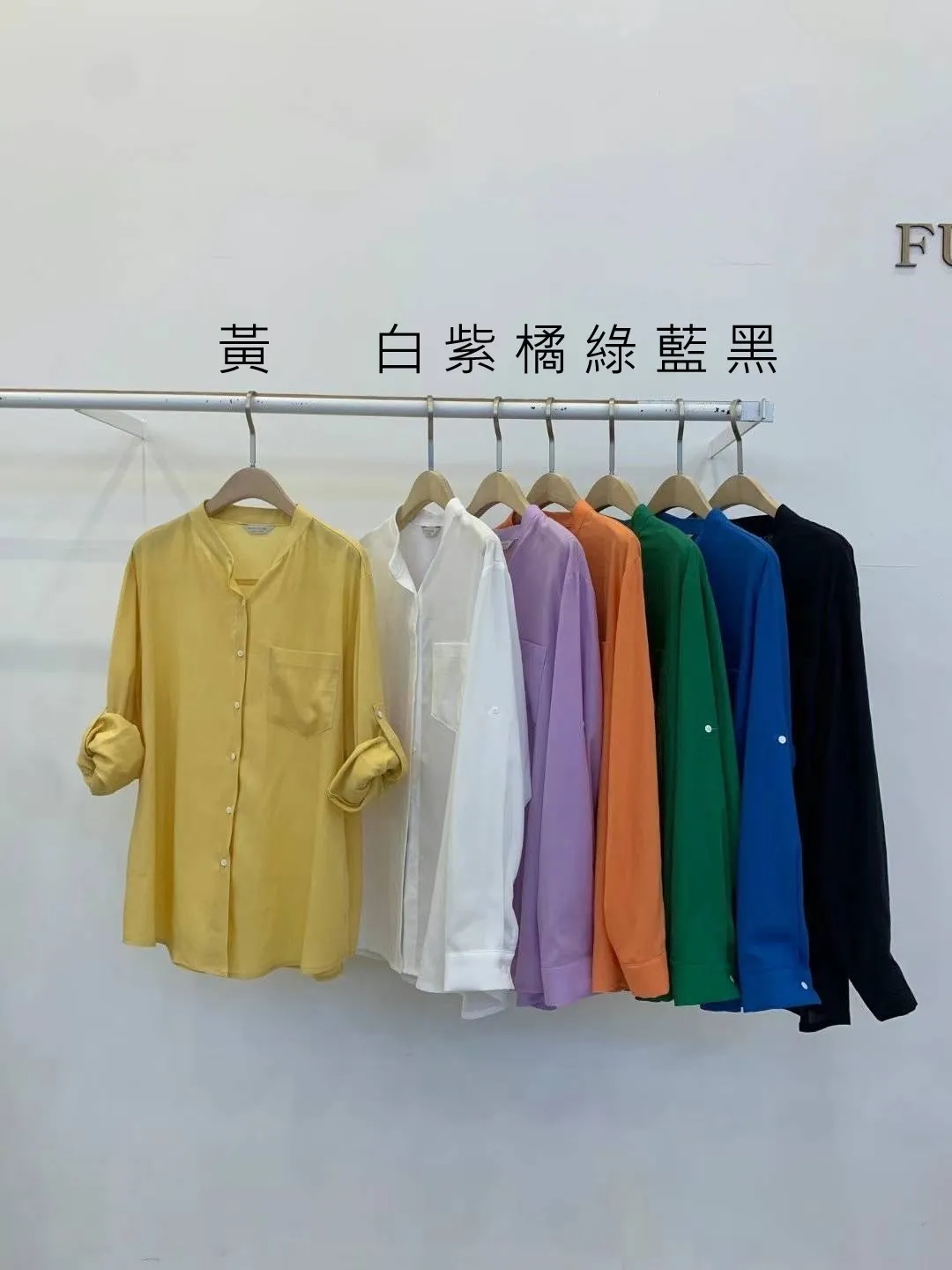 KM045天絲單口袋袖反摺排釦上衣 黃 白 紫 橘 綠 藍 黑 官網價$1070 線上價$1040