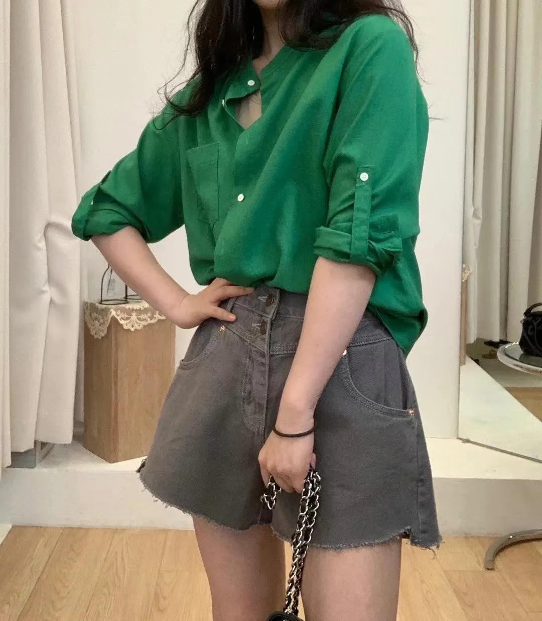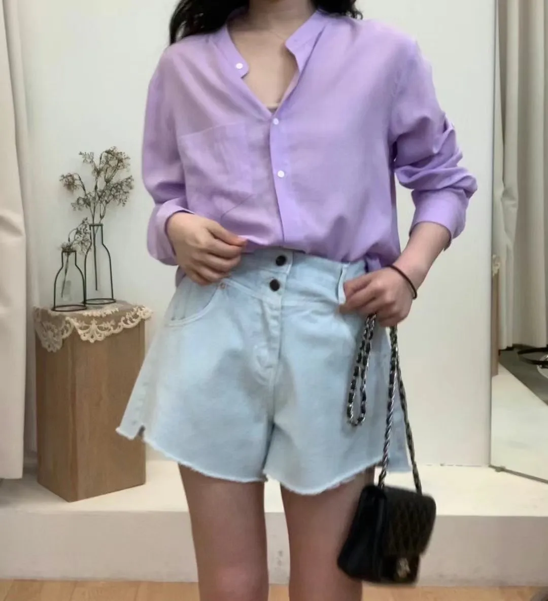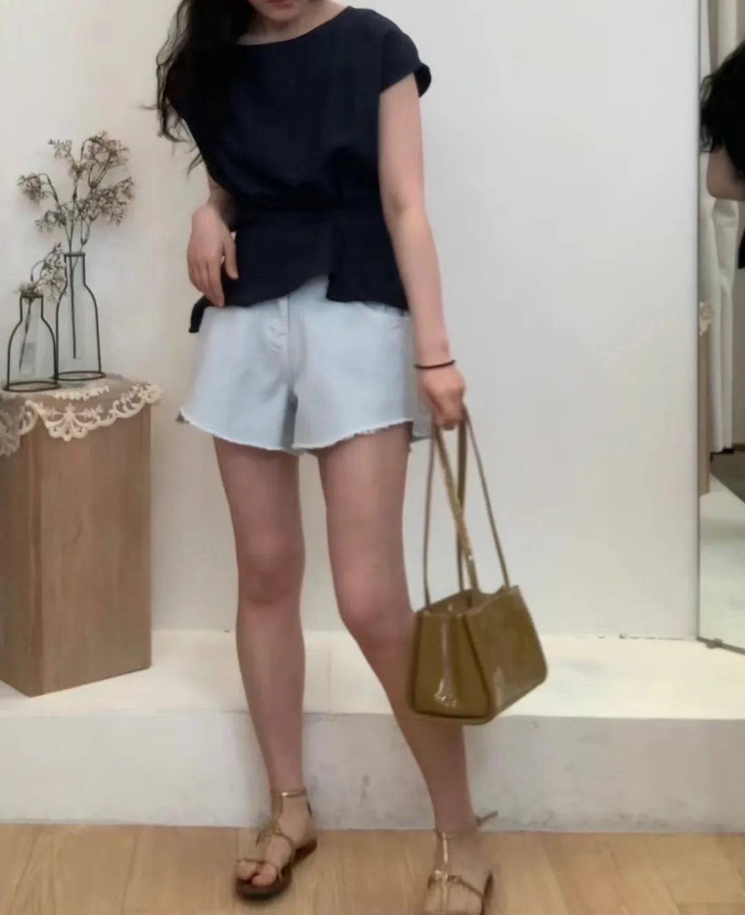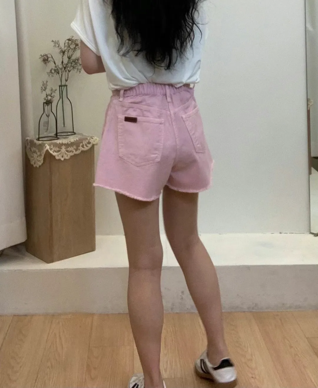 KM047不收邊雙釦牛仔Aline短褲 藍 粉 灰 S M L 官網價$1090 線上價$1060