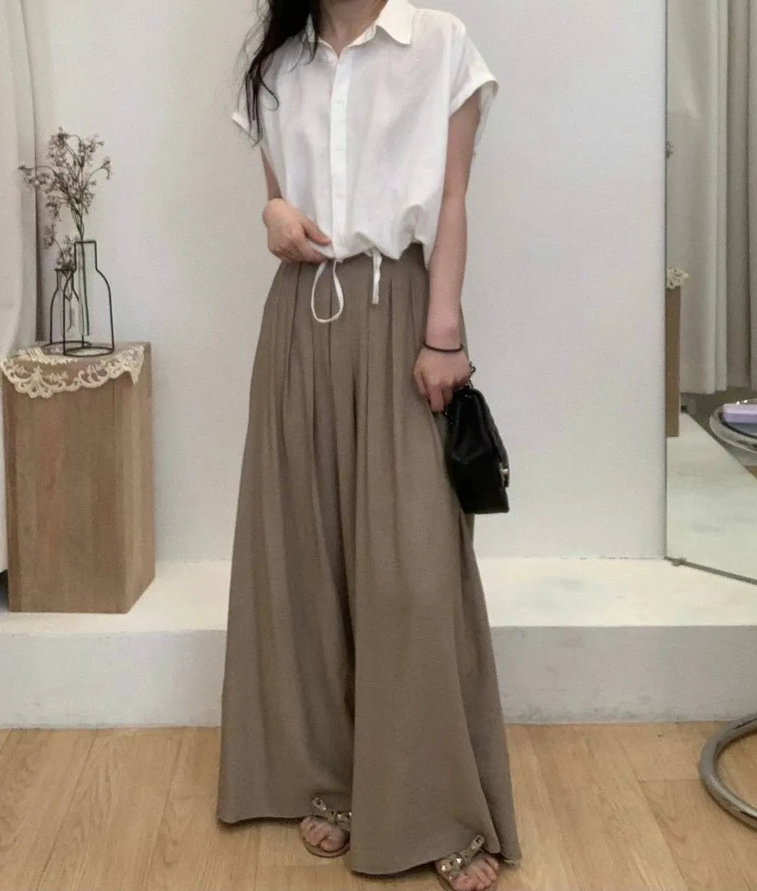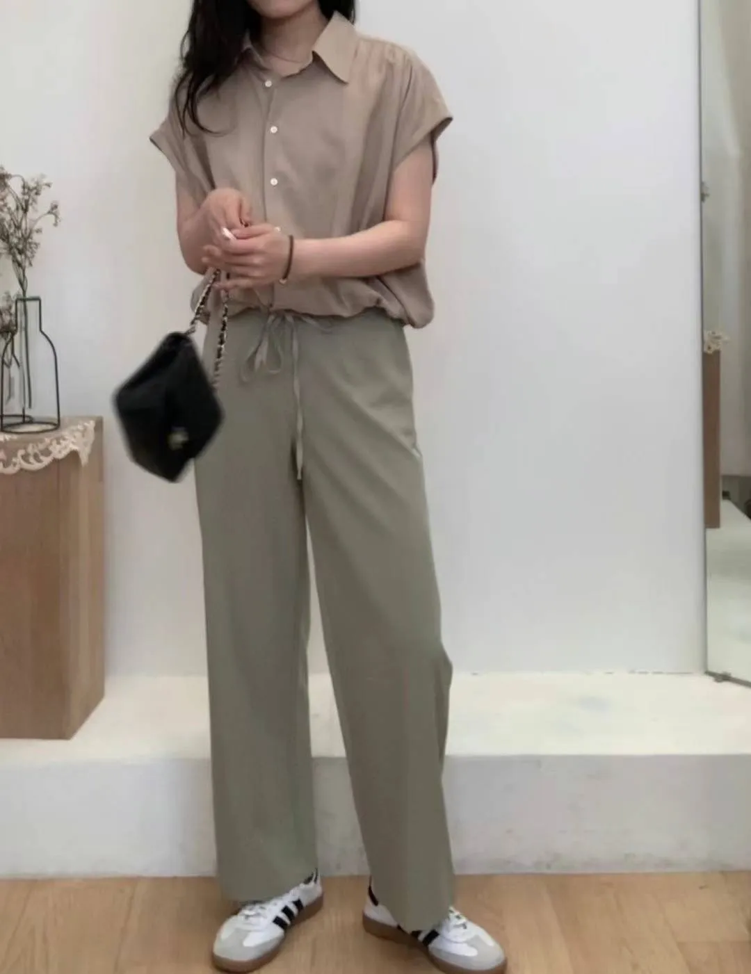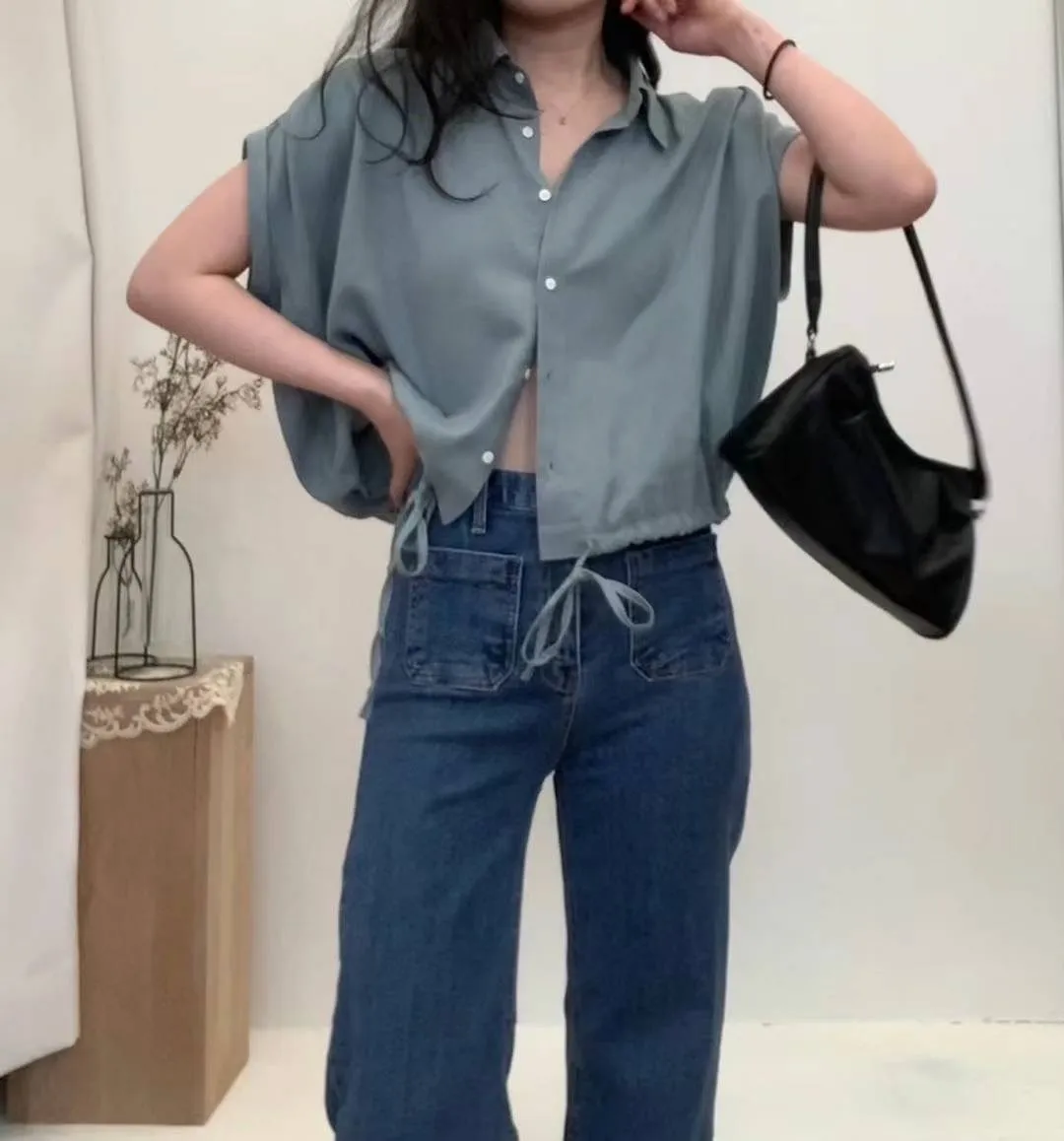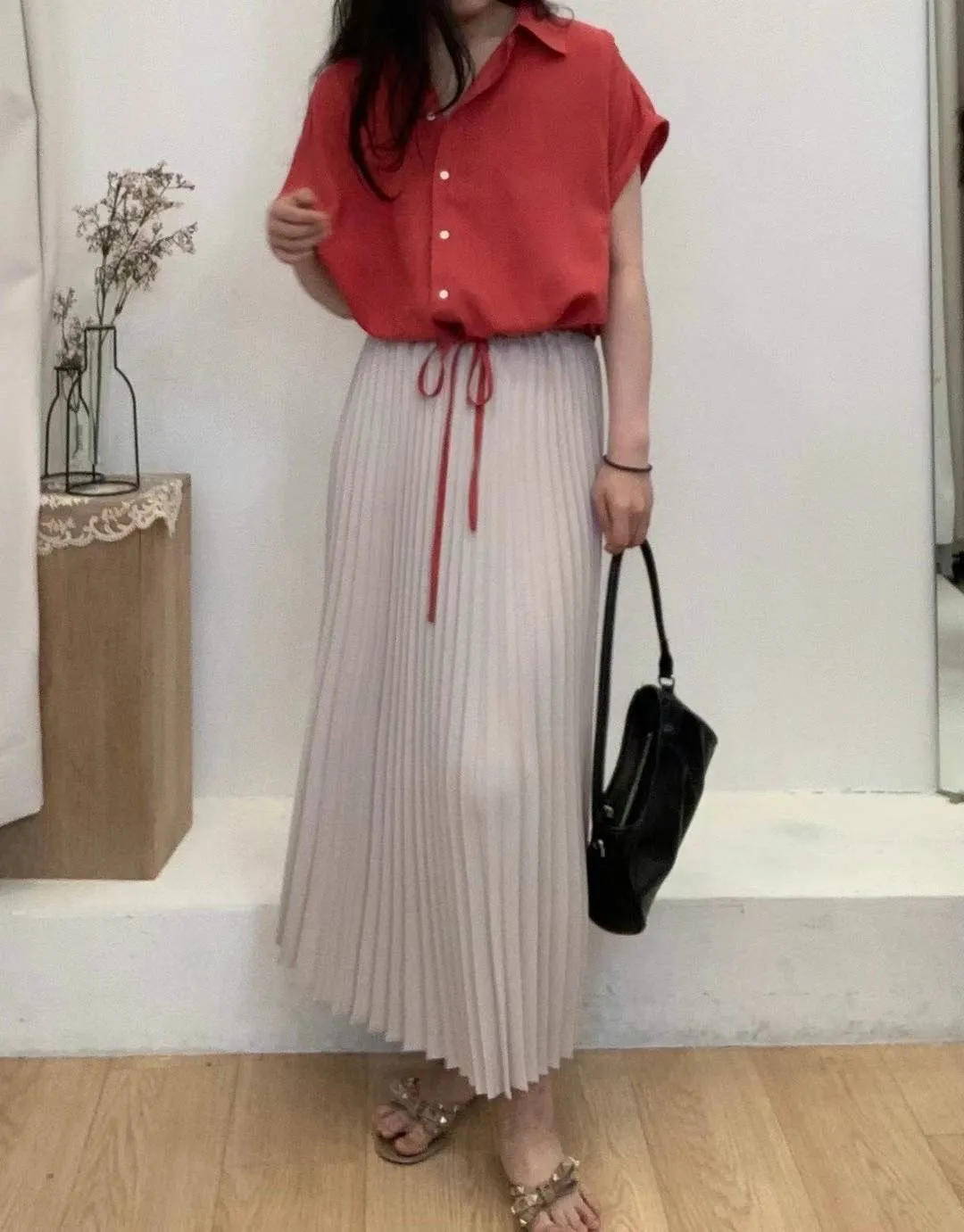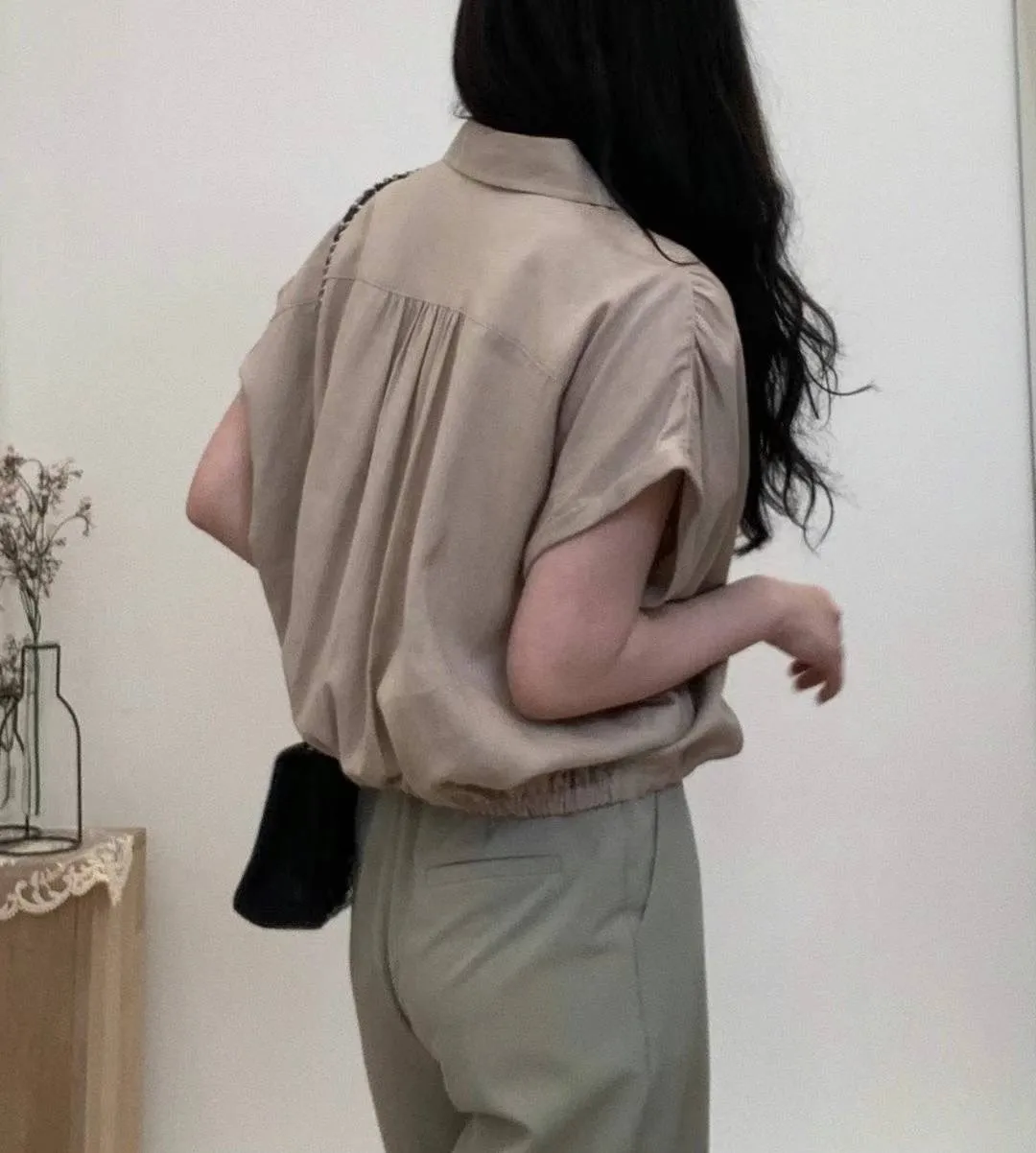 KM060腰綁帶短袖襯衫領上衣 白 奶茶 紅 淺藍 深藍 官網價$1129 線上價$1099天絲+麻 下擺鬆緊 腰綁帶 排釦穿脫 可上衣可外套 XXL友善