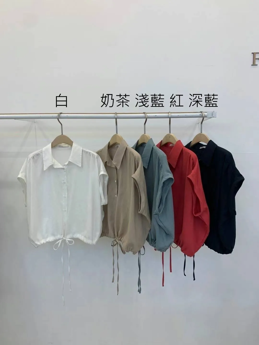 KM060腰綁帶短袖襯衫領上衣 白 奶茶 紅 淺藍 深藍 官網價$1129 線上價$1099