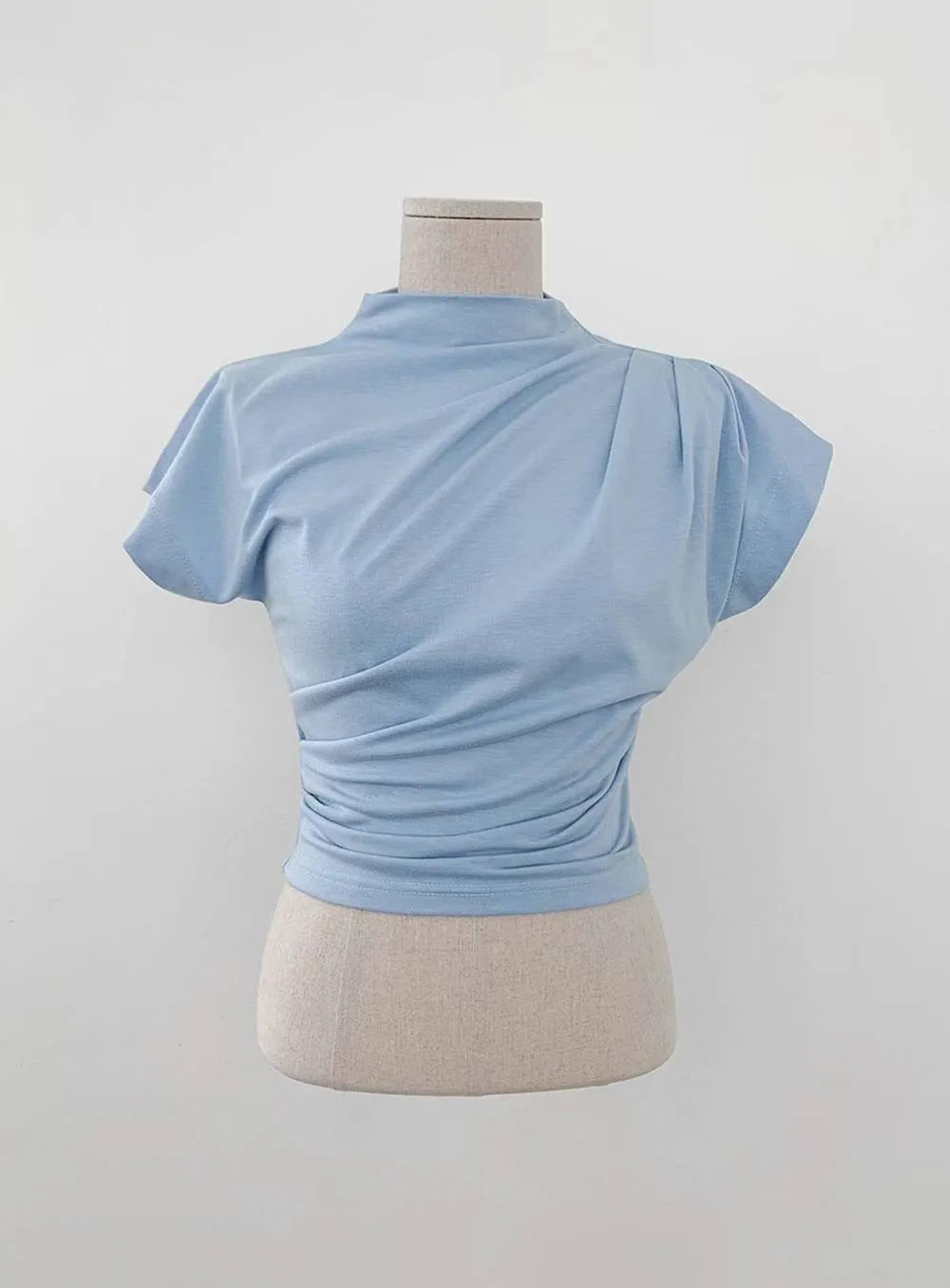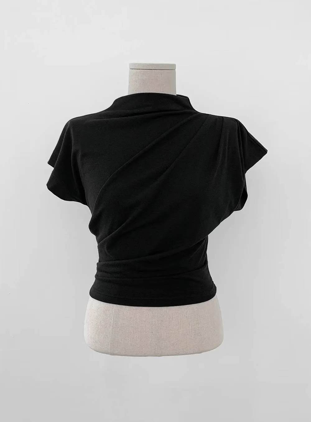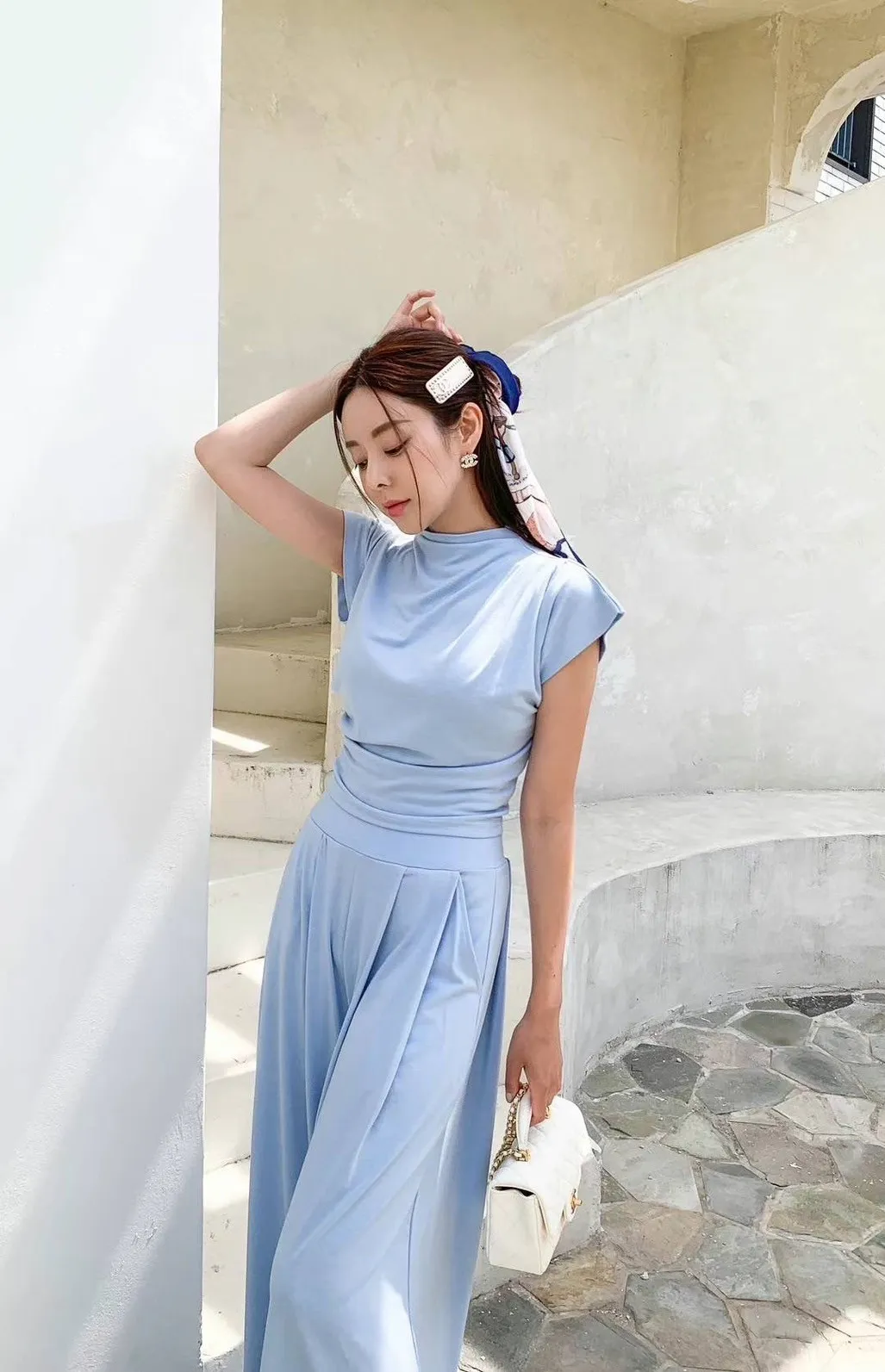 KM078套裝的女神摺皺設計感上衣 藍 黑 奶茶 官網價$560 線上價$530