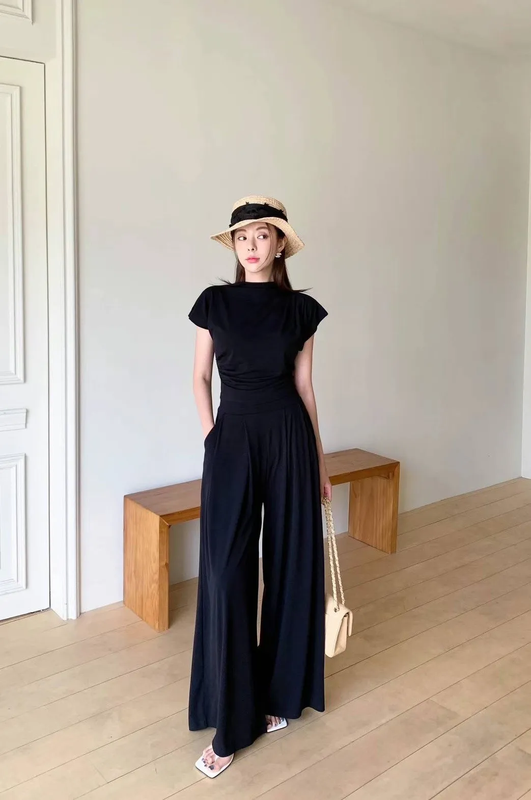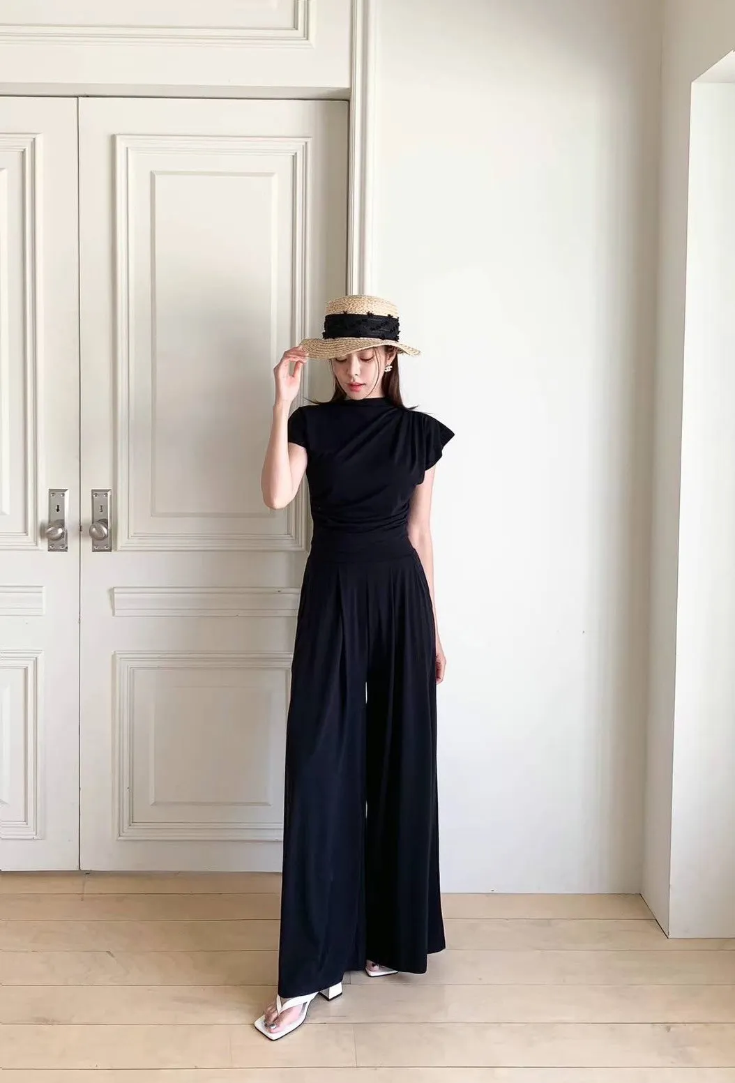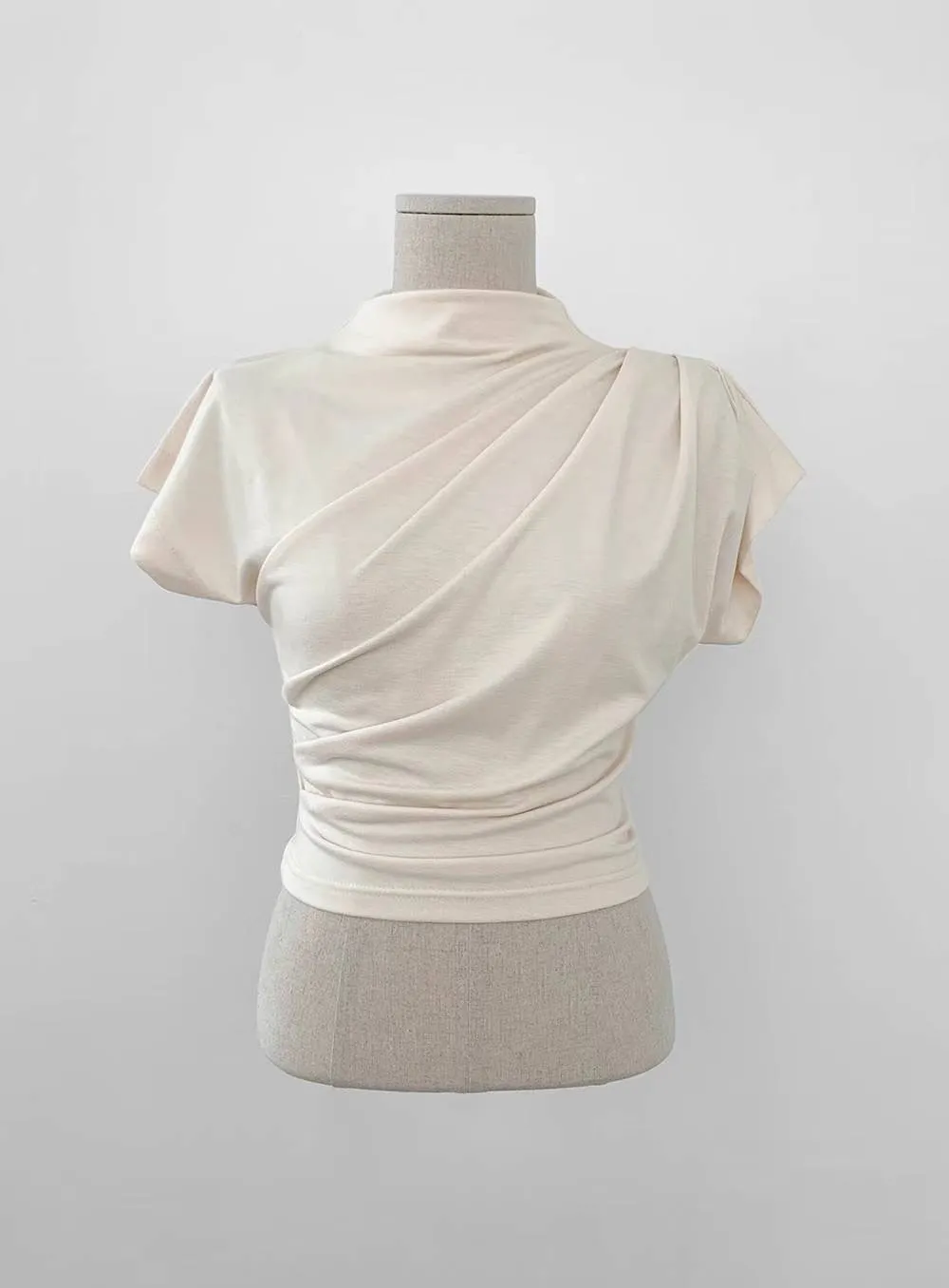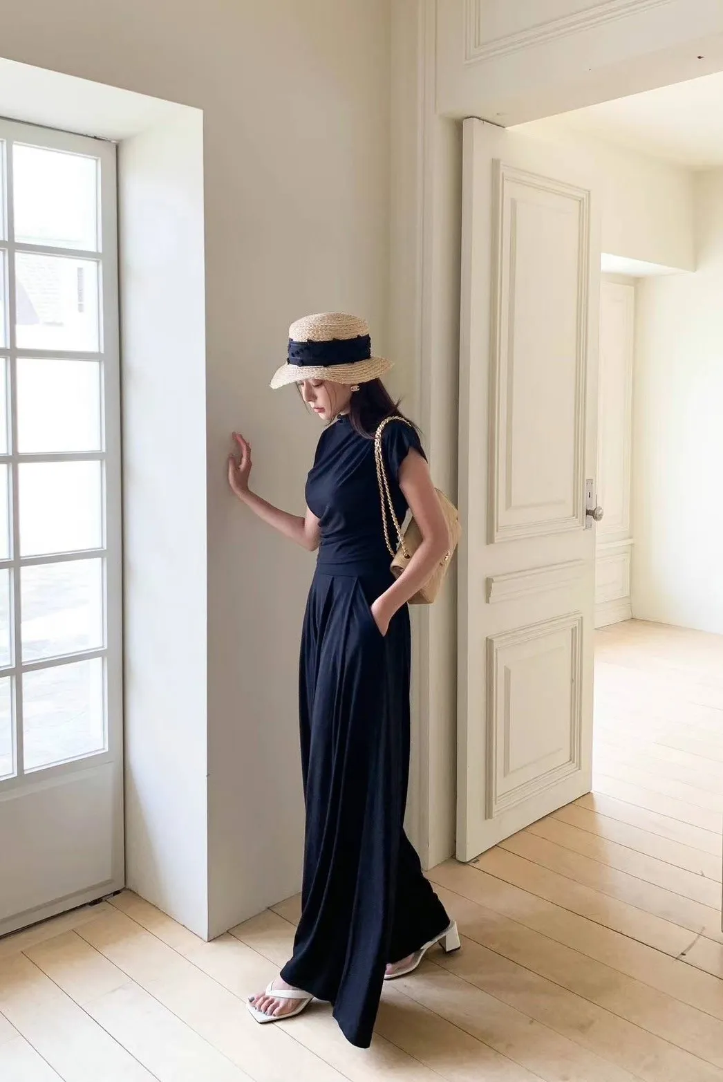 KM078套裝的女神摺皺設計感上衣 藍 黑 奶茶 官網價$560 線上價$530