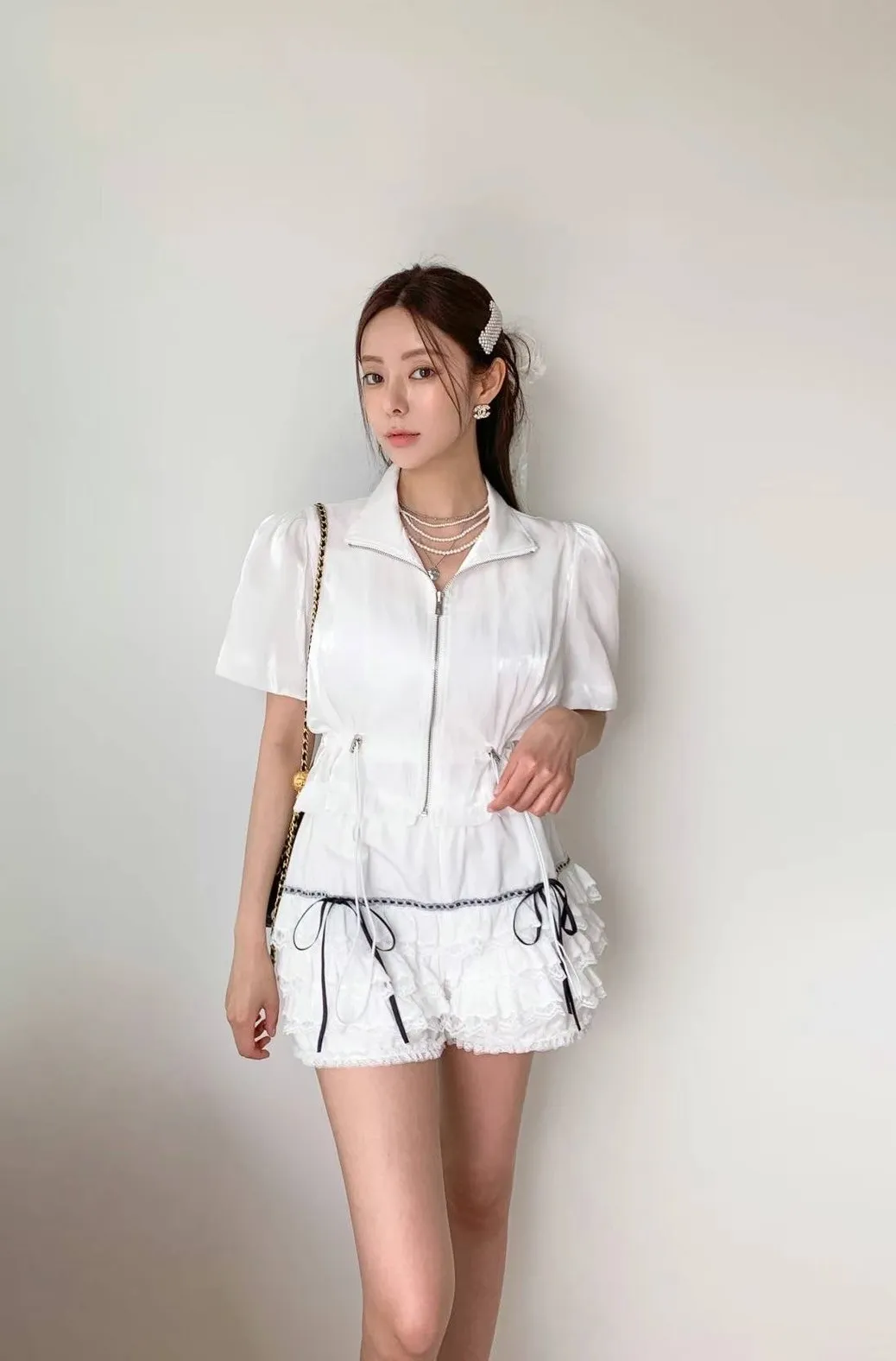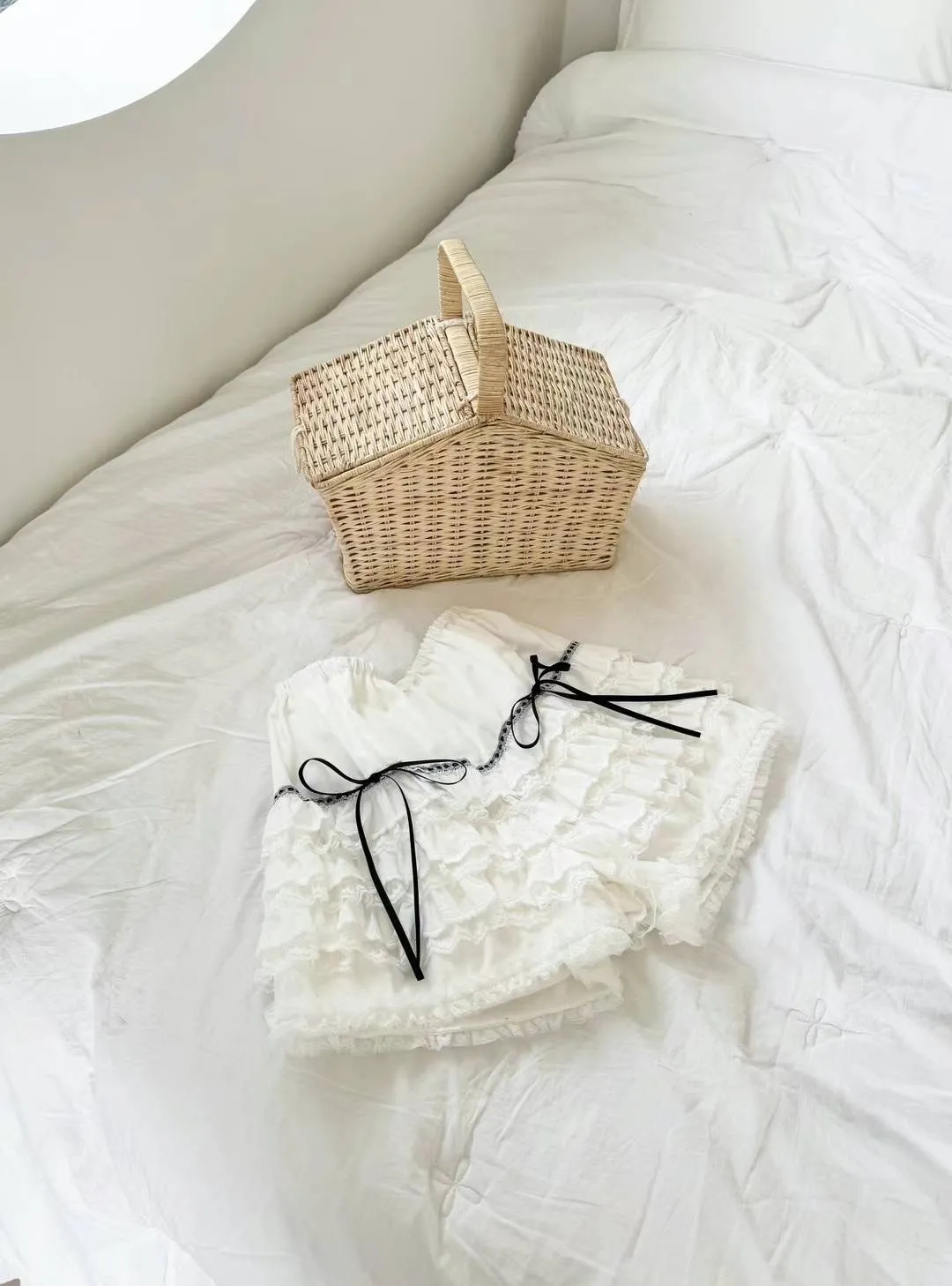 KM091細緞帶蛋糕短褲 白 黑 官網價$1650 線上價$1620