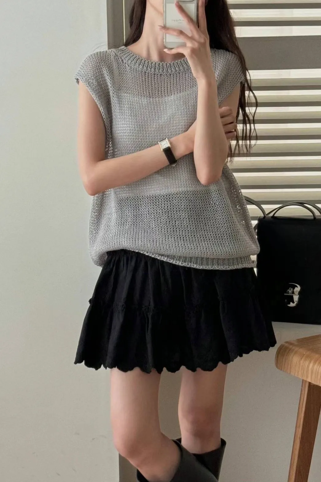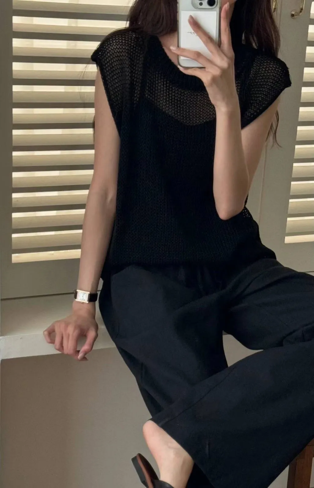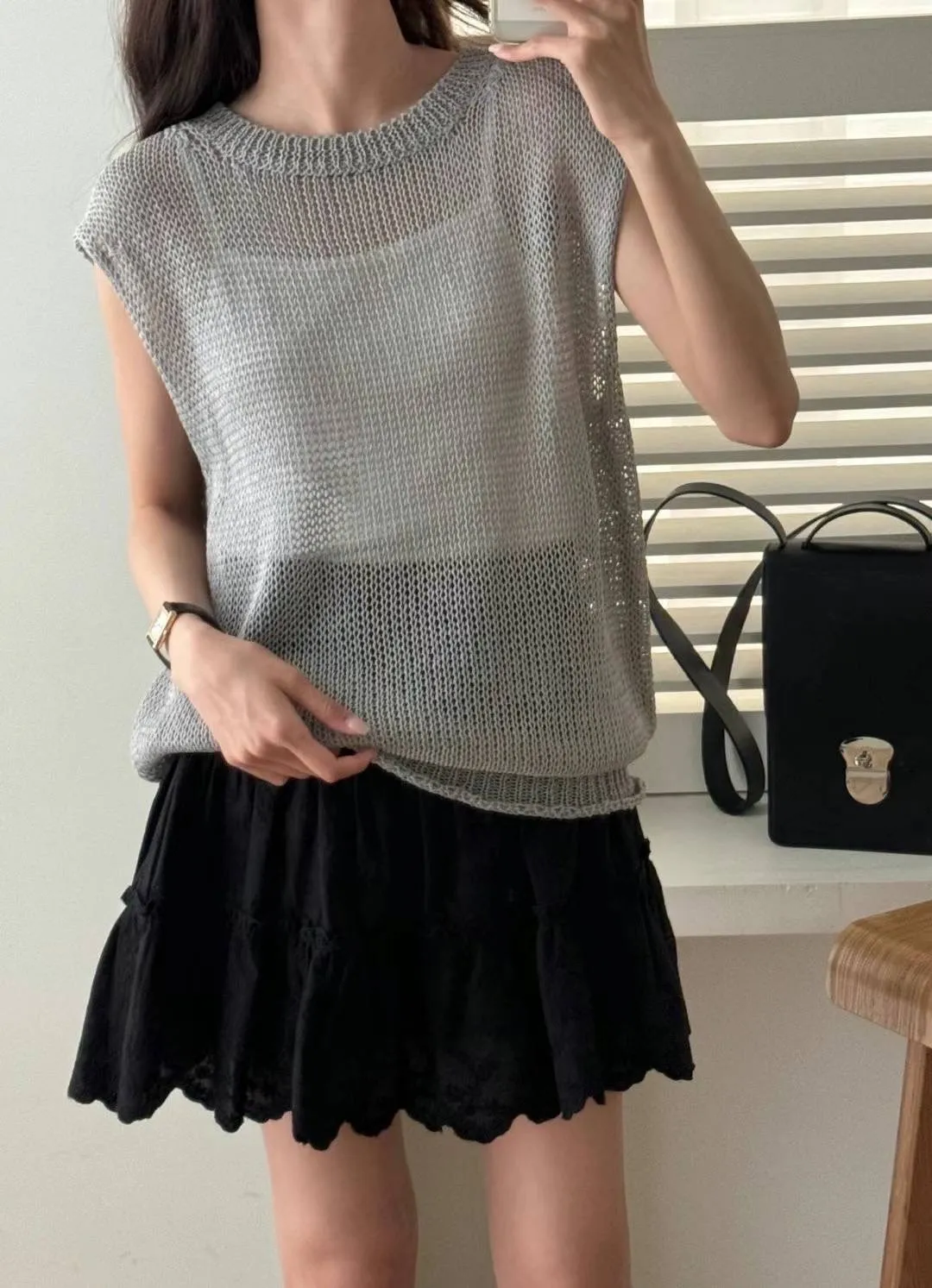 KM130層次穿搭洞洞透膚背心 白 灰 黑 奶茶 官網價$780 線上價$750