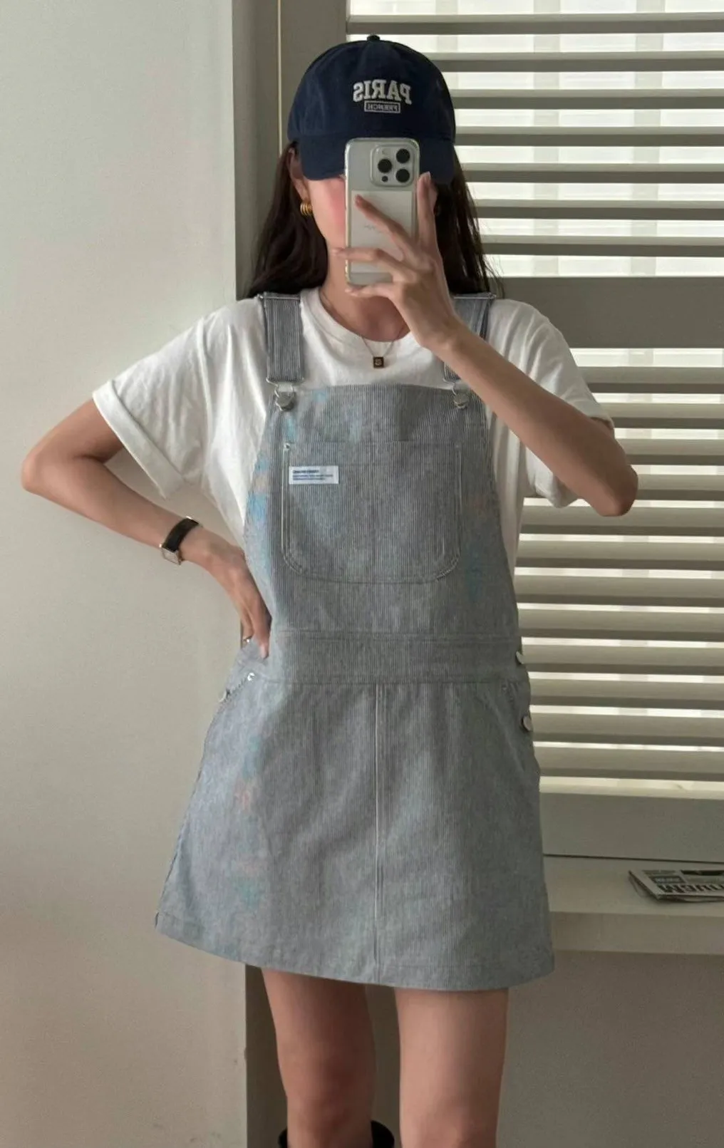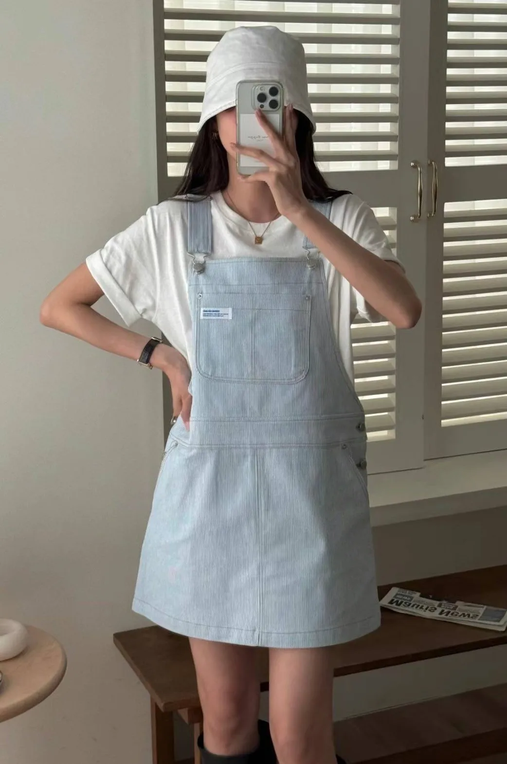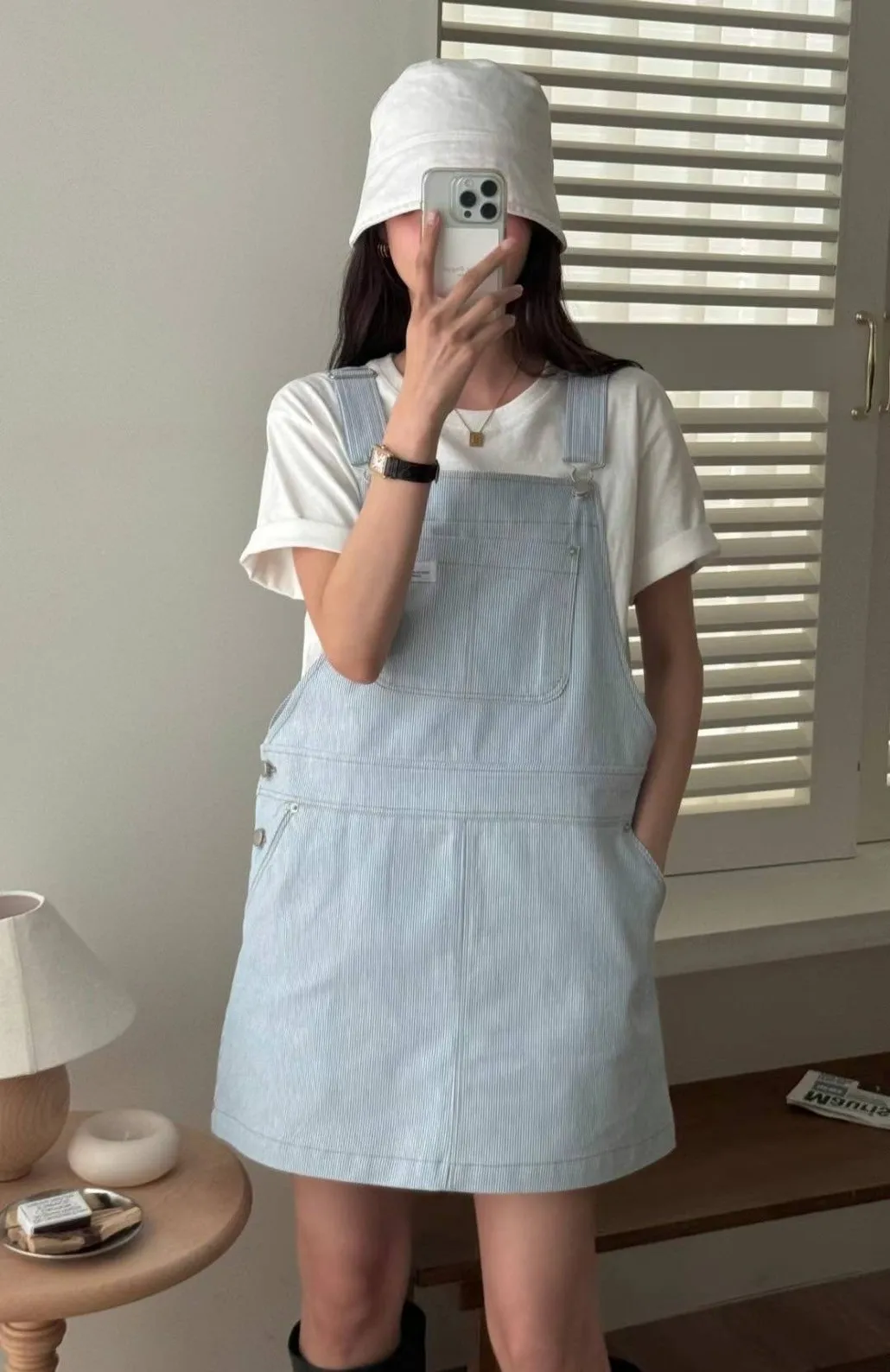 KM132小車標胸前口袋吊帶裙 天藍 灰藍 官網價$1560 線上價$1530