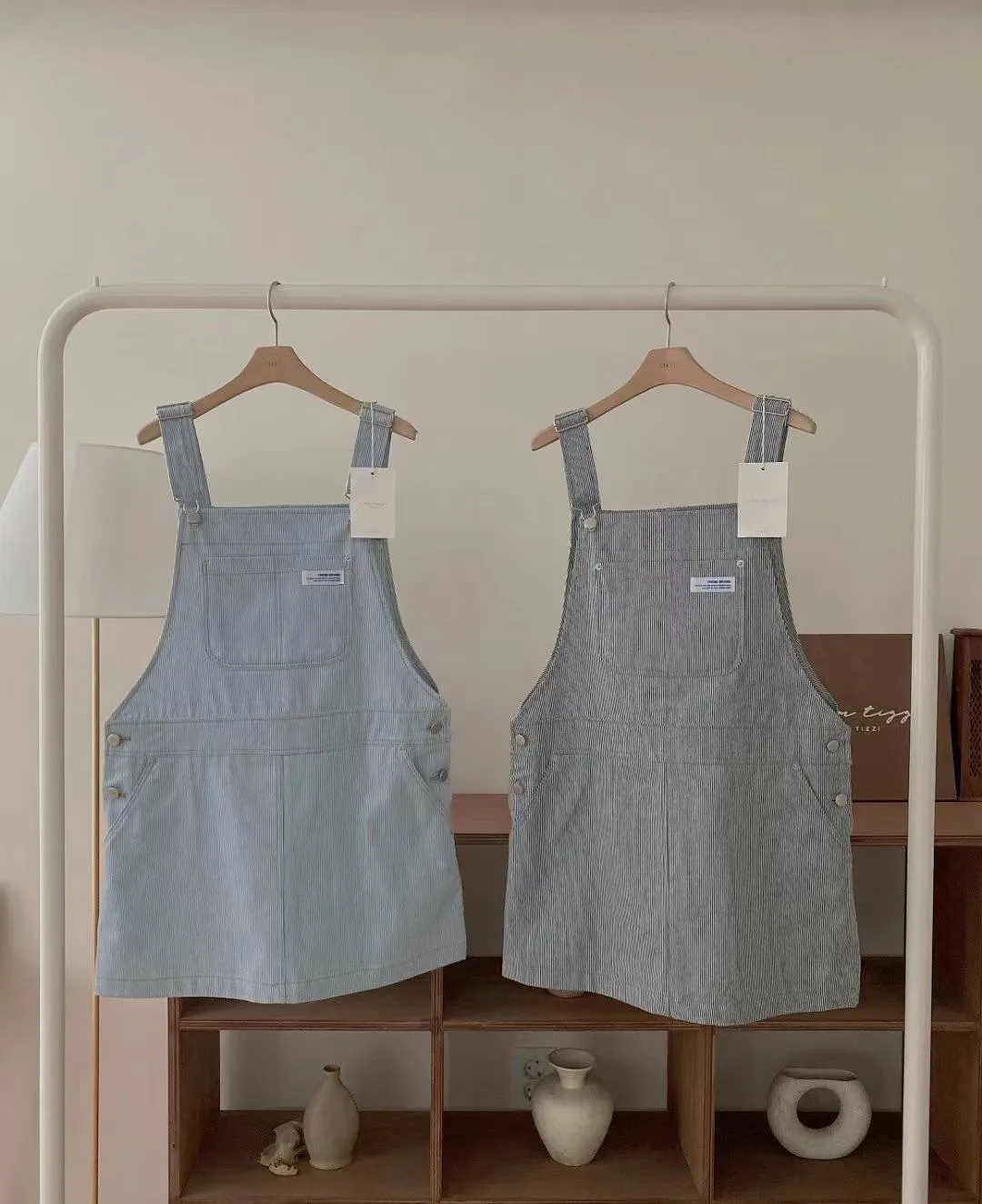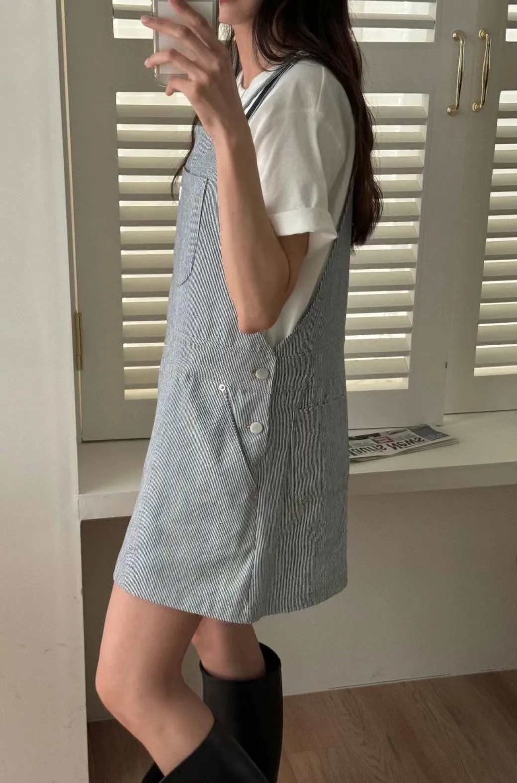 棉,細細線直條紋 肩帶可調 有口袋 適合台灣