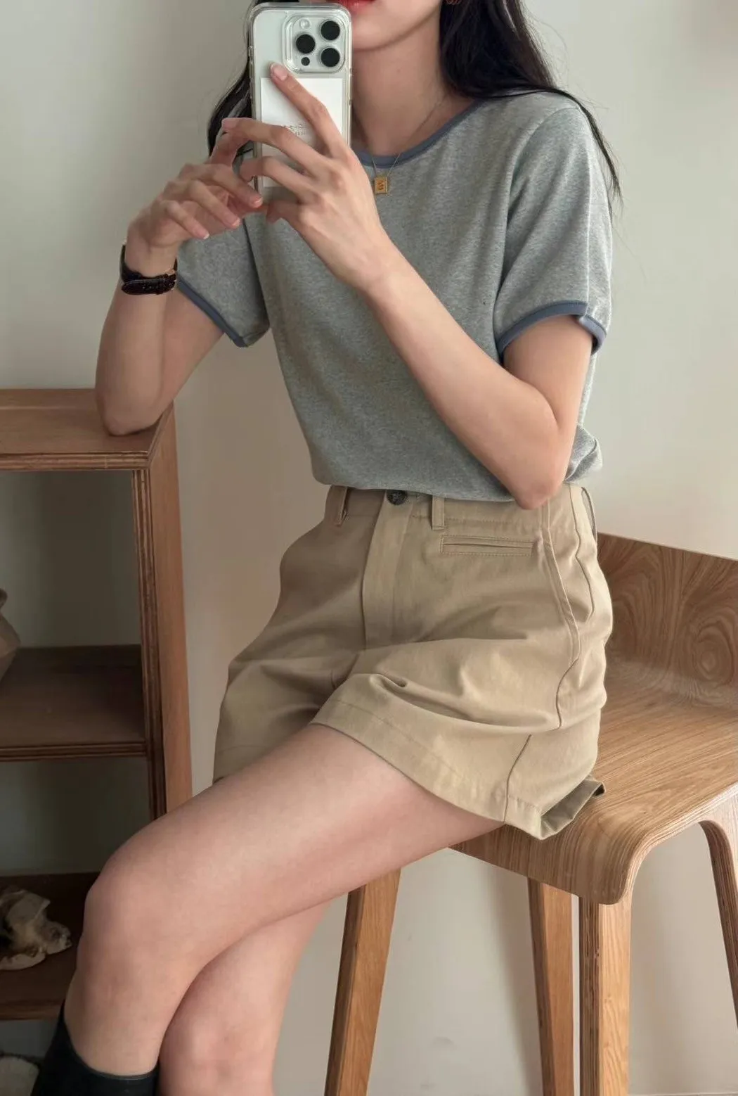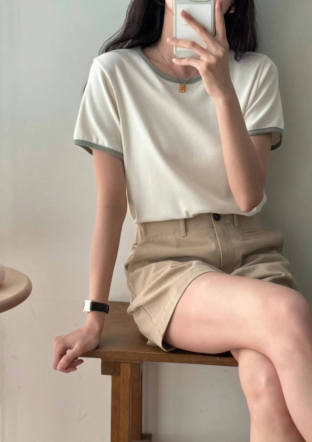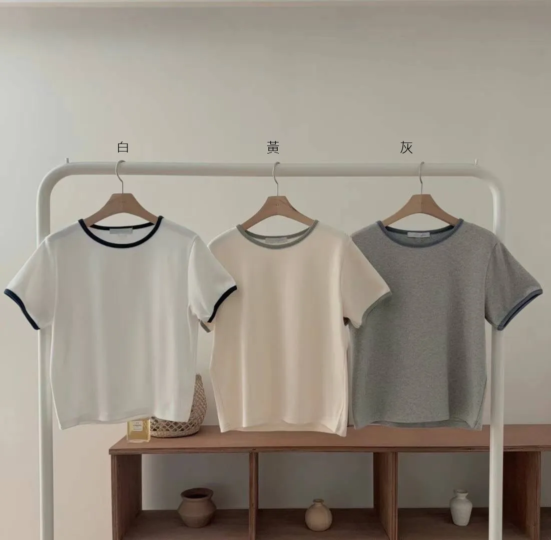 KM133滾邊舒適彈性Tshirt 白 黃 灰 官網價$599 線上價$569