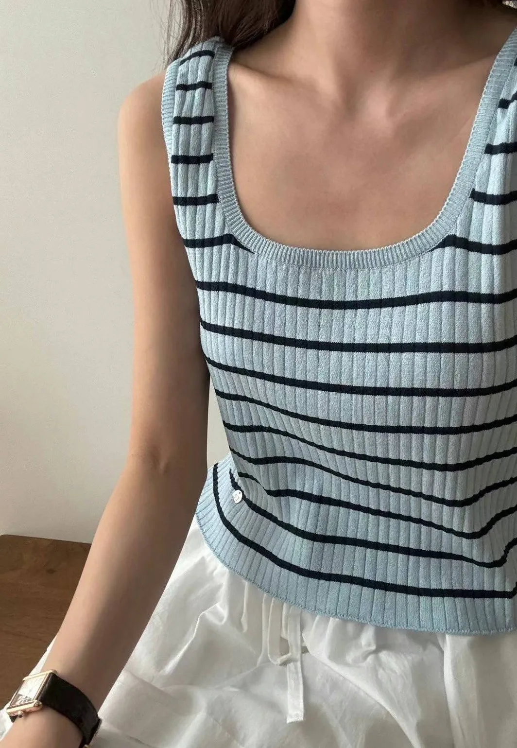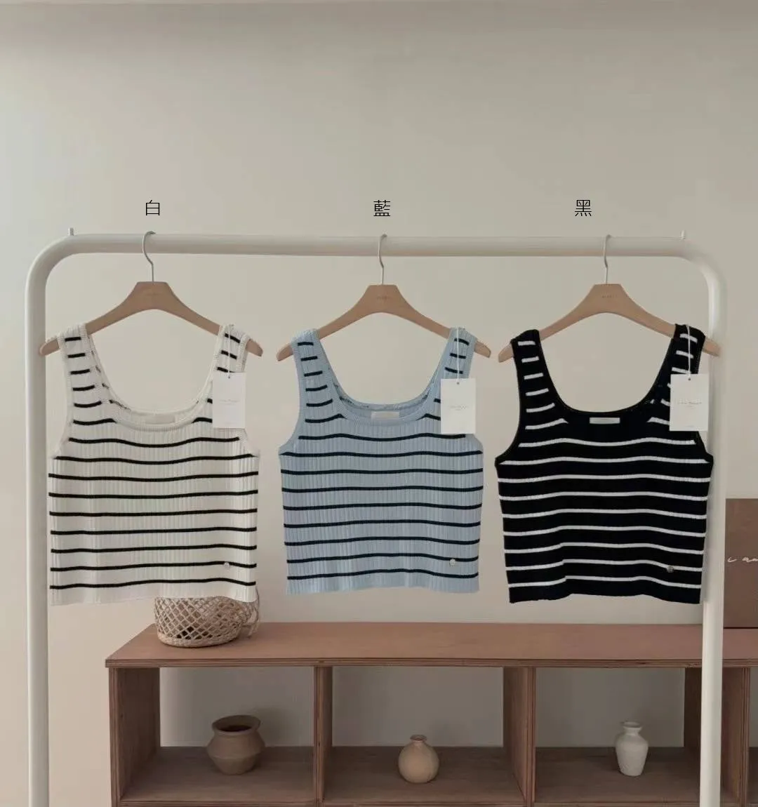 KM134條紋U領背心 白 藍 黑 官網價$ 820 線上價$790