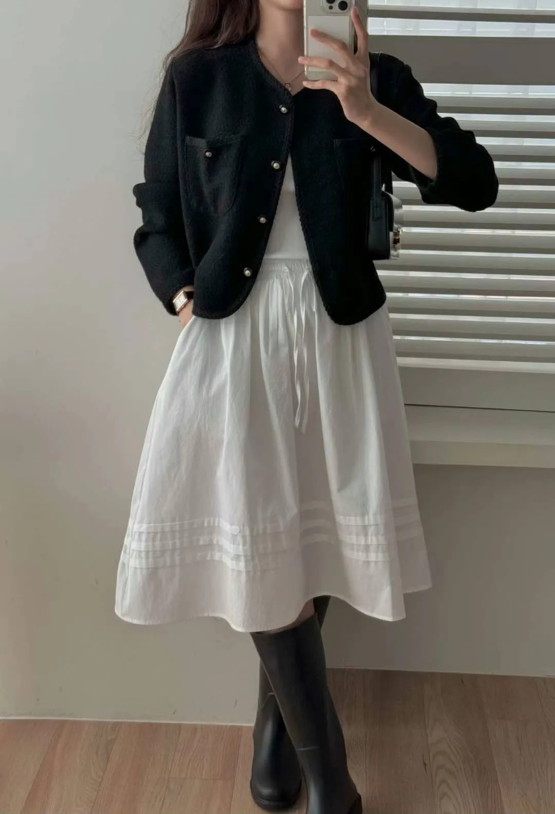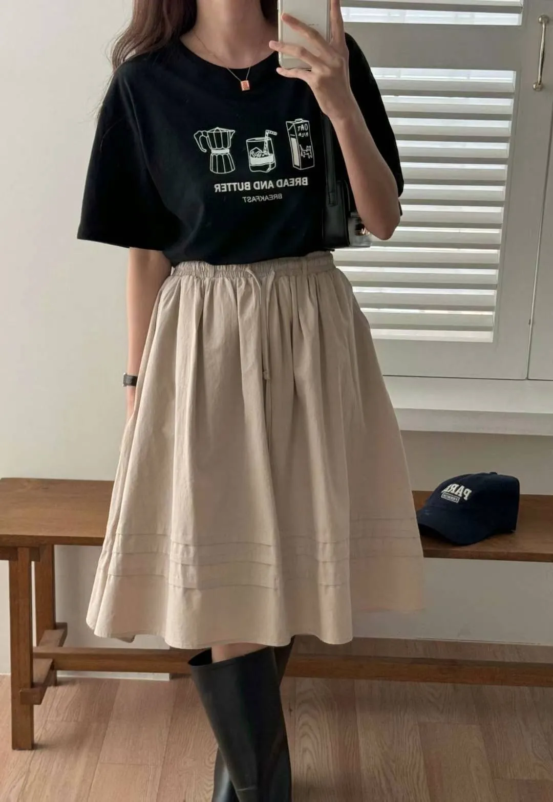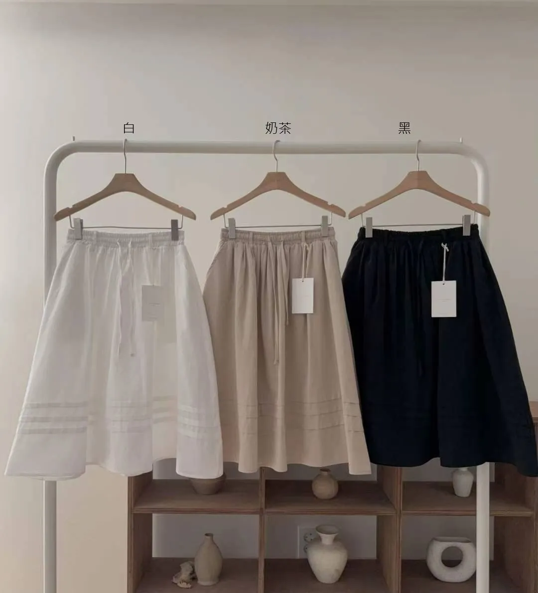 KM136簡單順身顯瘦中長裙 白 黑 奶茶 官網價$1160 線上價$1130