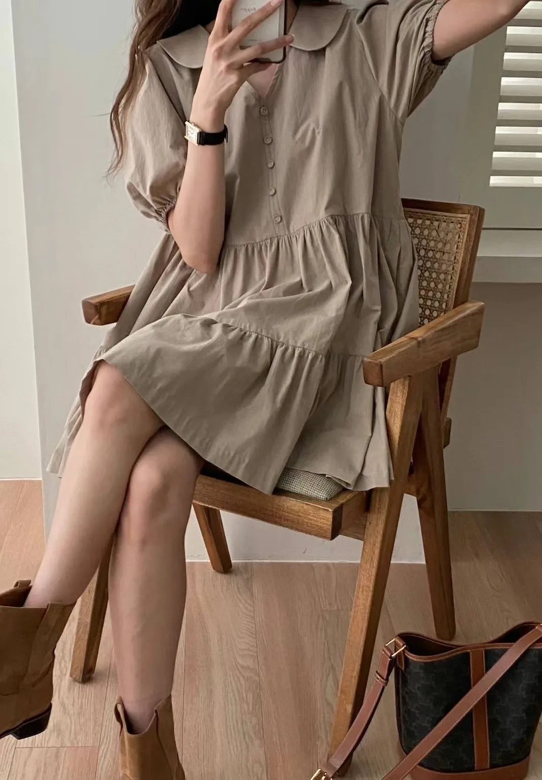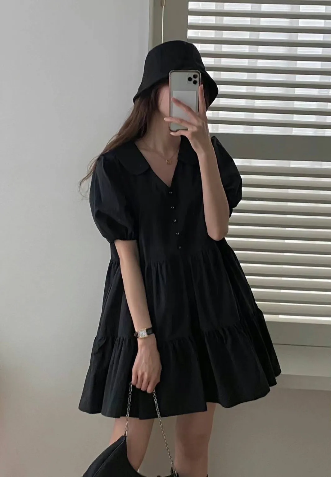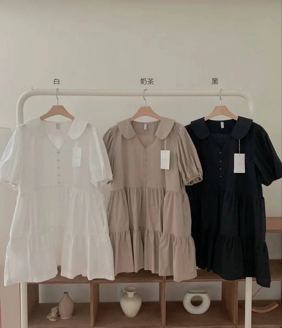 KM137推薦款V翻領蛋糕裙洋裝 白 黑 奶茶 官網價$1280 線上價$1250