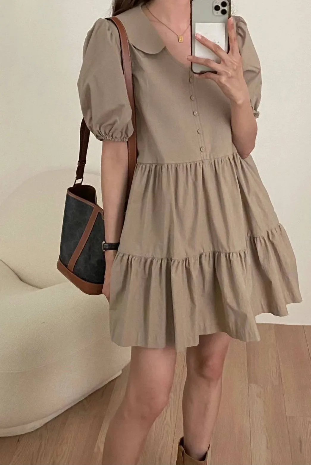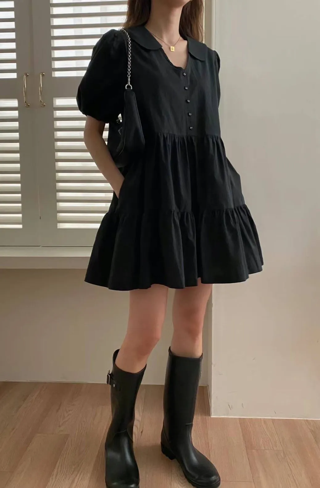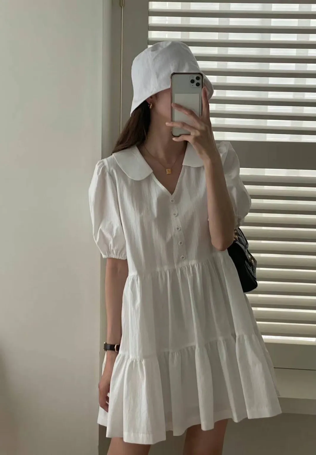 KM137推薦款V翻領蛋糕裙洋裝 白 黑 奶茶 官網價$1280 線上價$1250