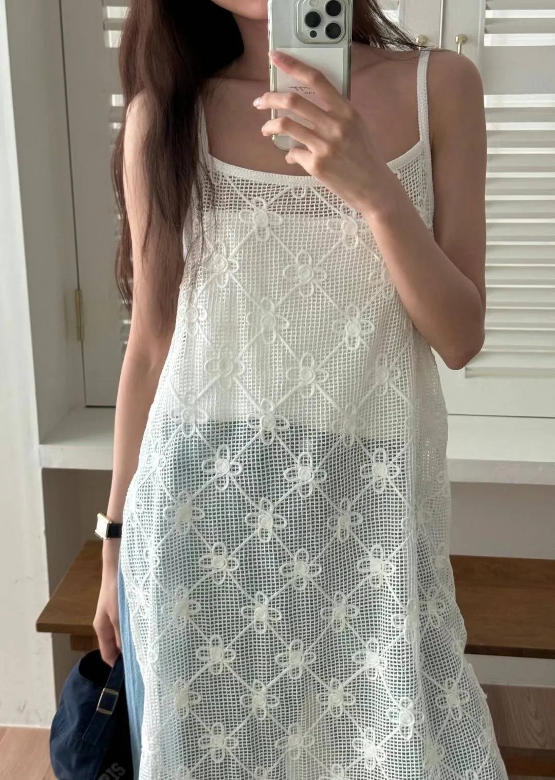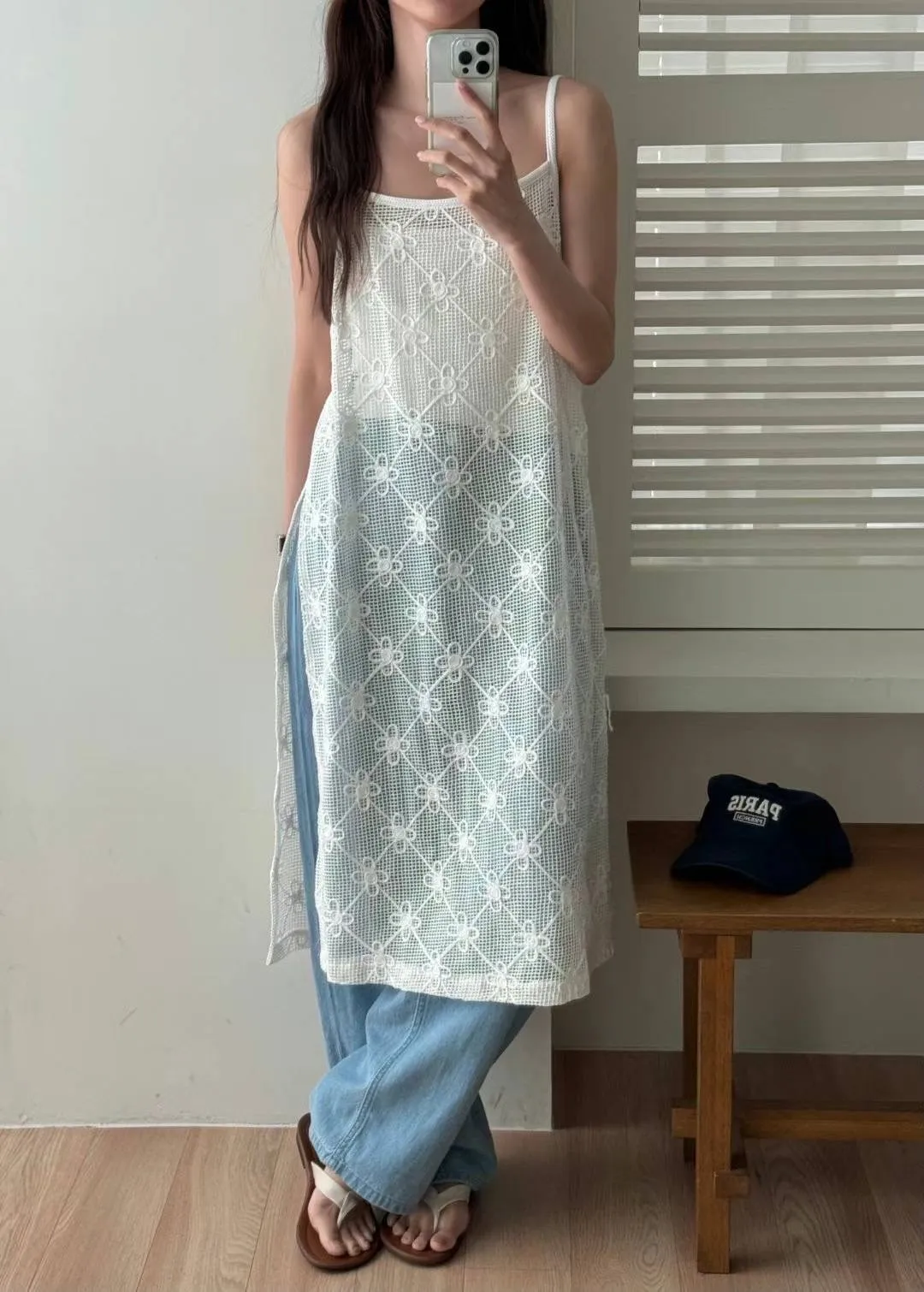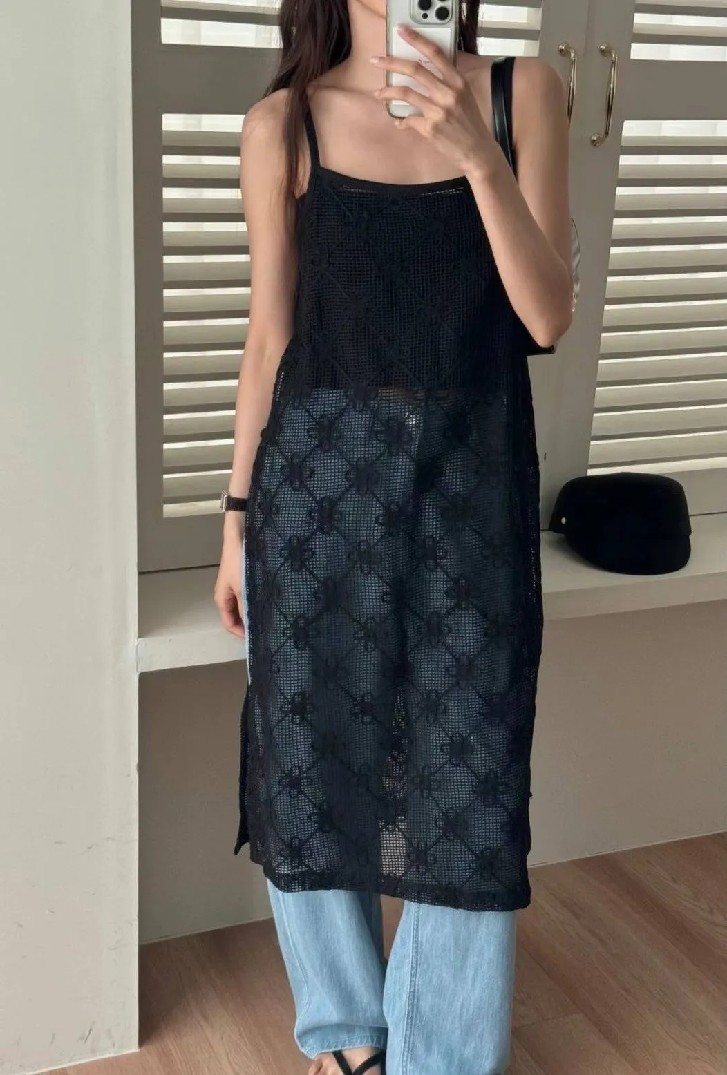 KM143穿搭側開叉簍空細肩帶洋裝 白 黑 官網價$1450 線上價$1420