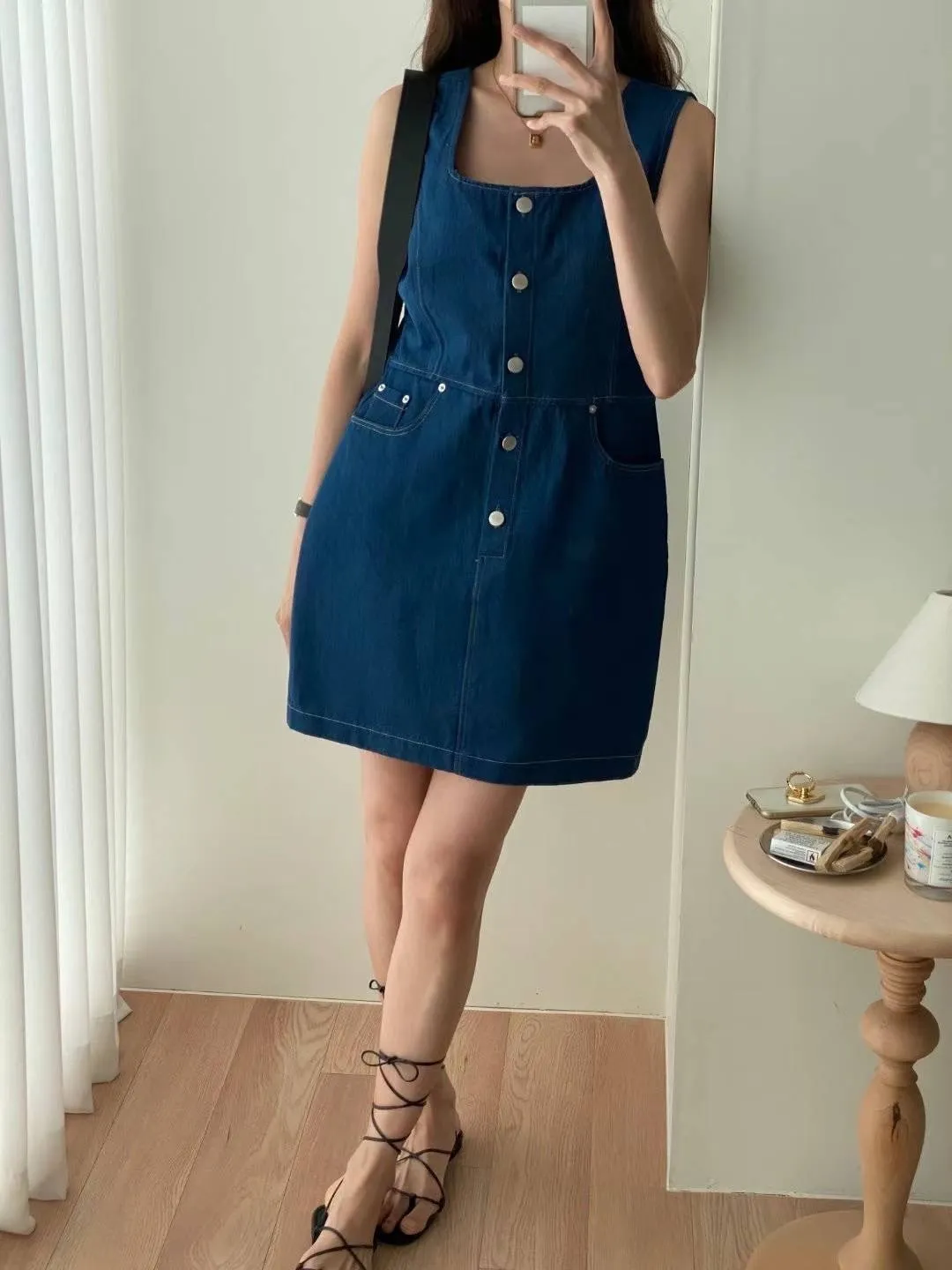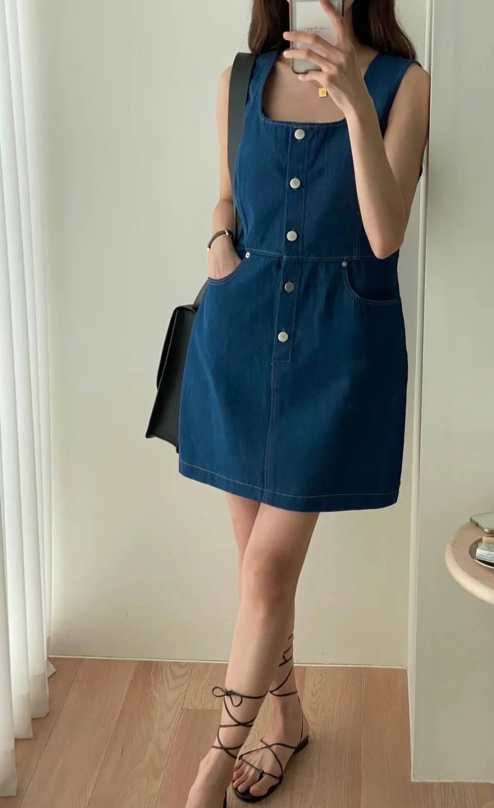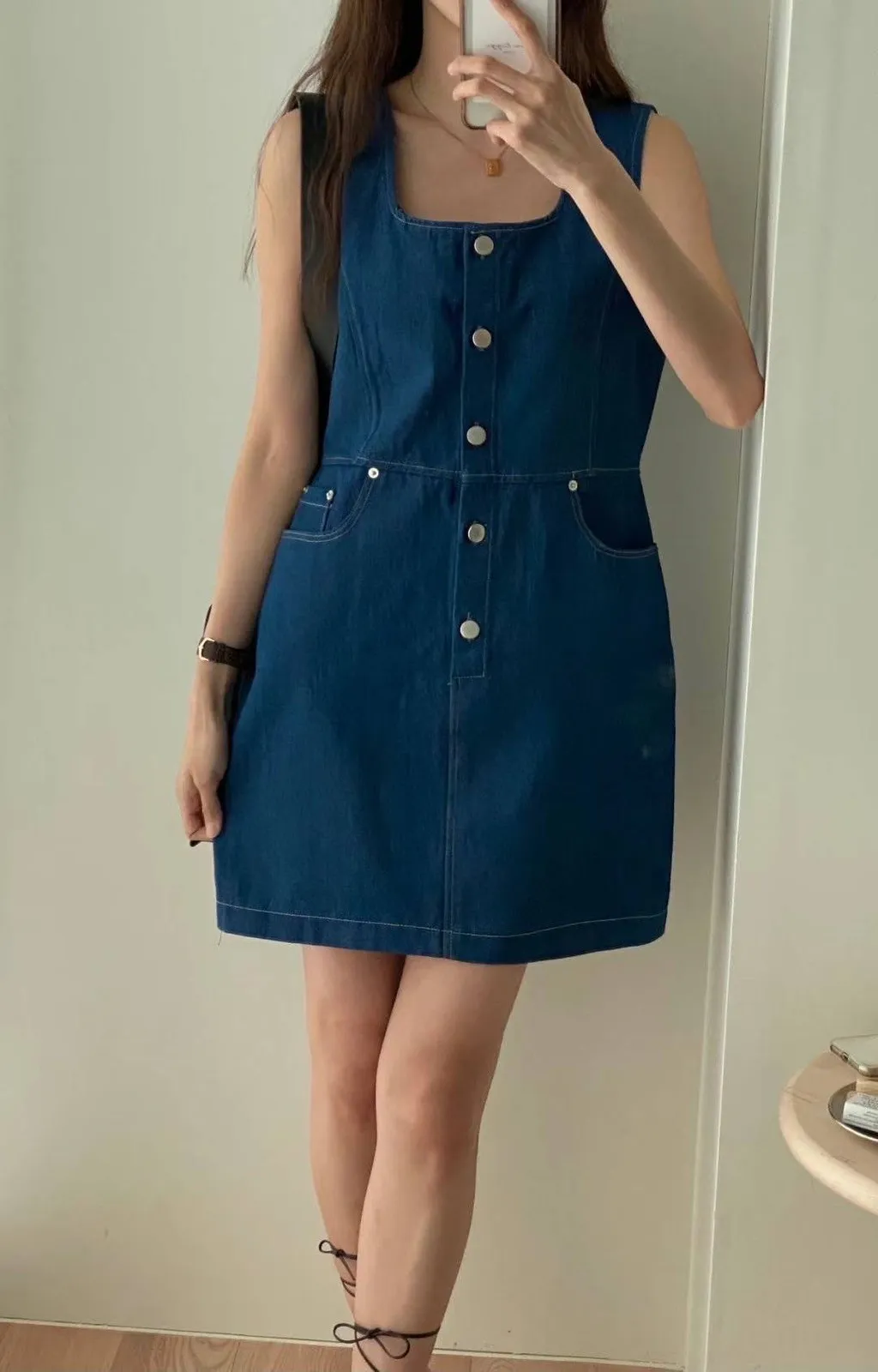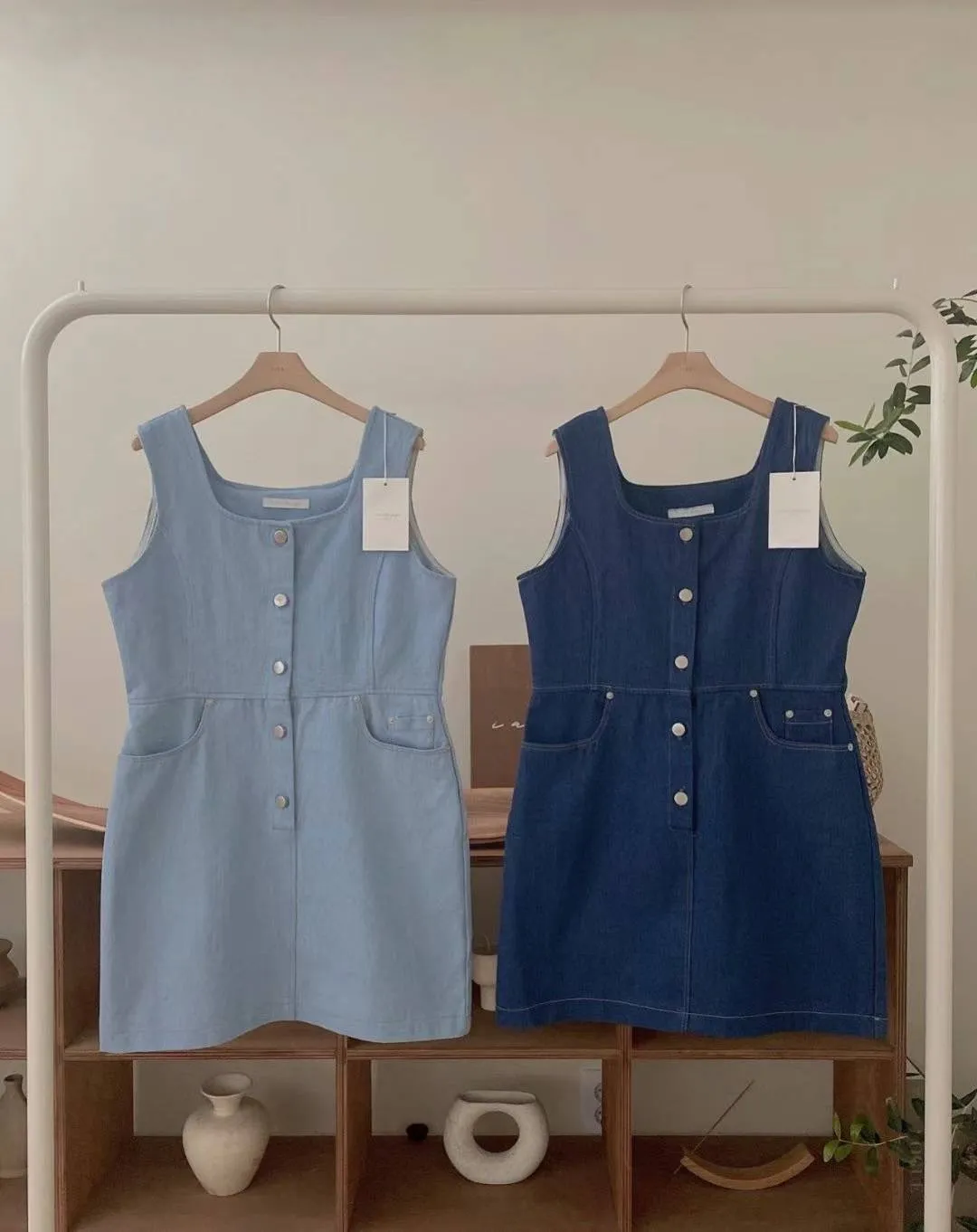 KM147薄款牛仔無袖丹寧洋裝 淺藍 深藍 官網價$1580 線上價$1550
