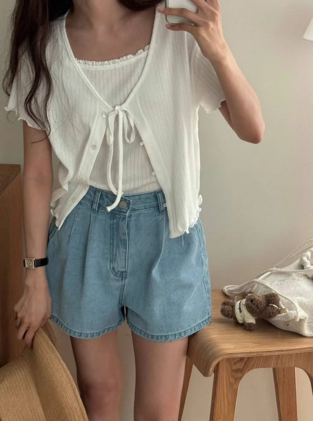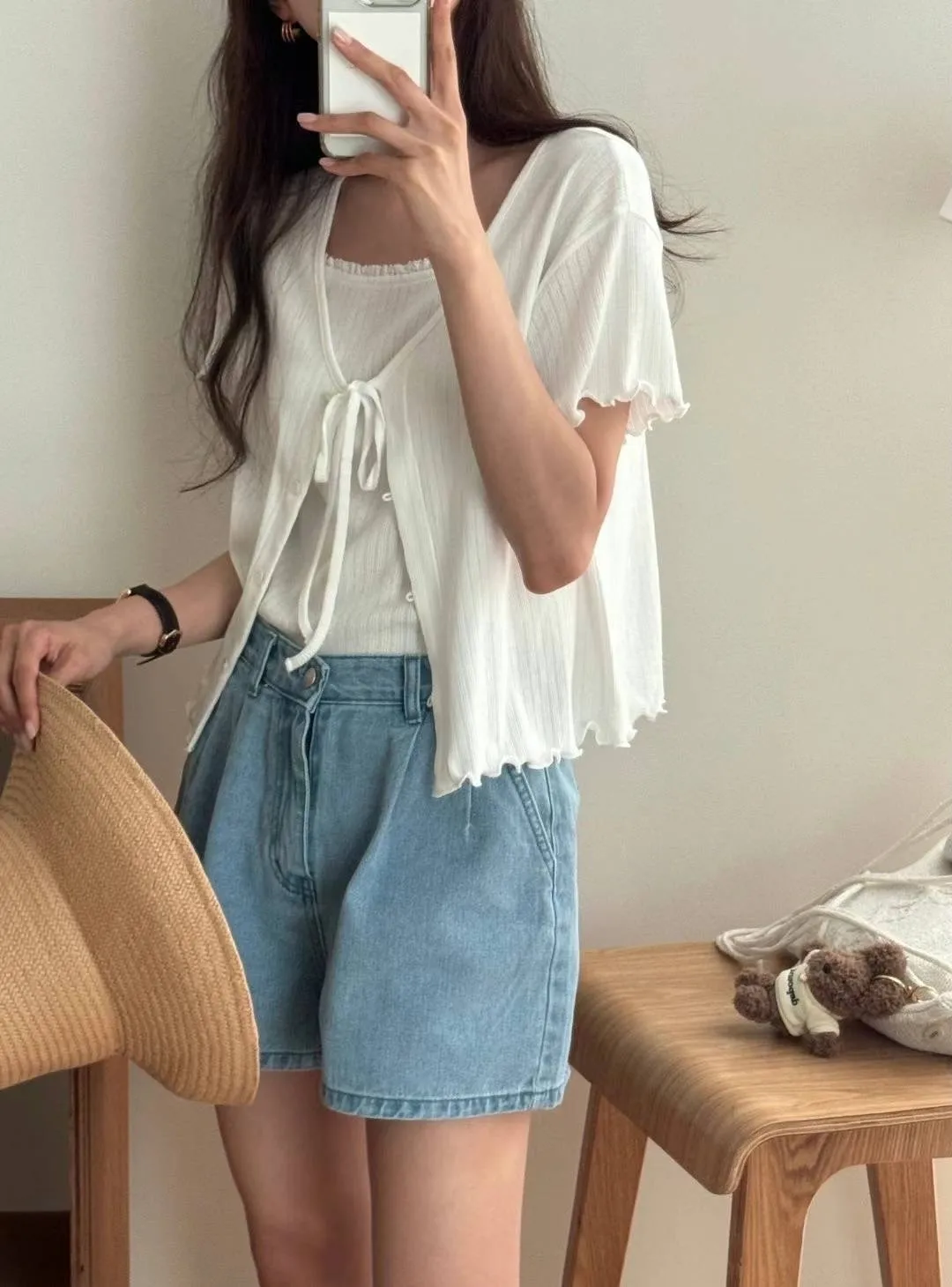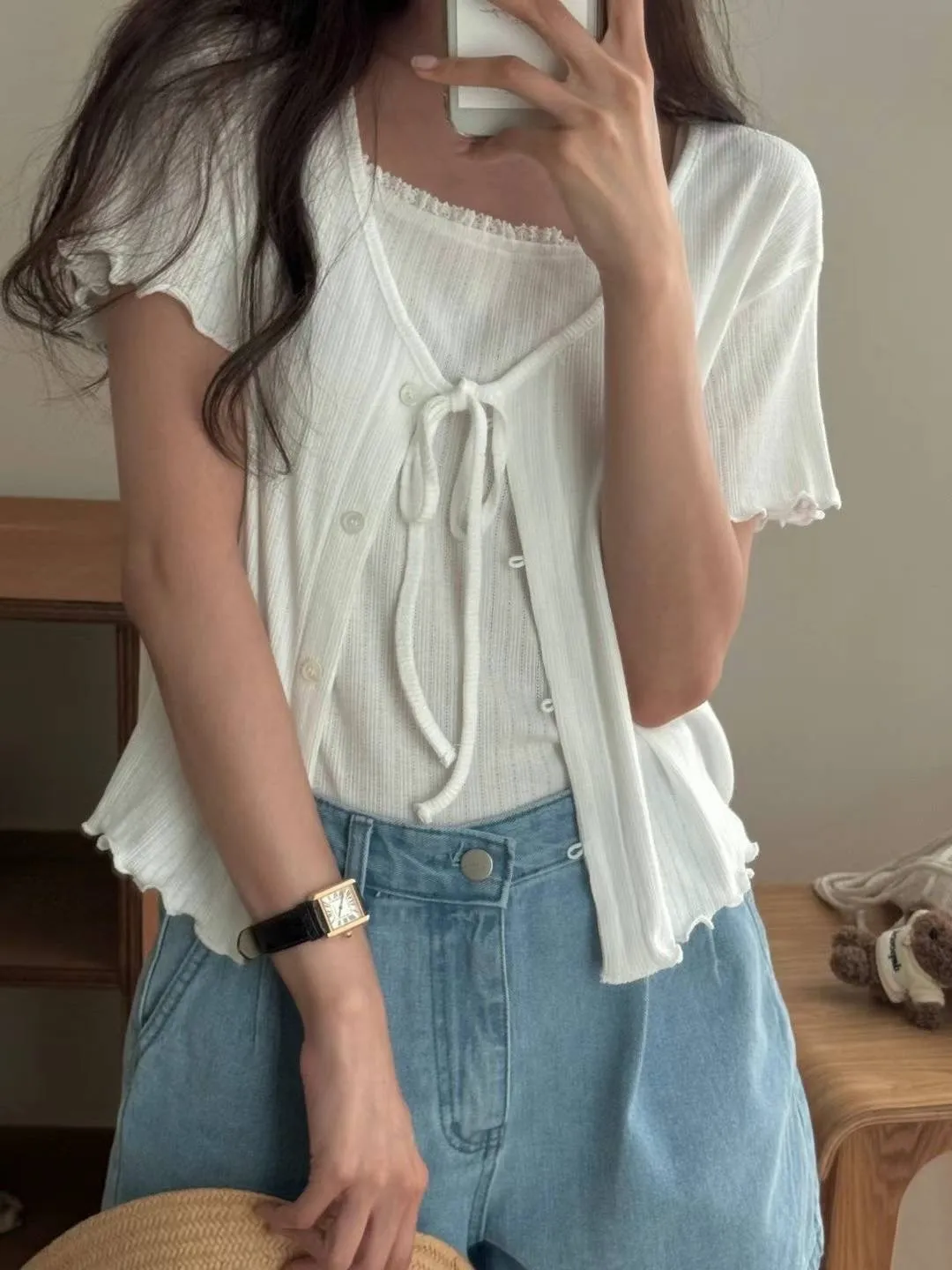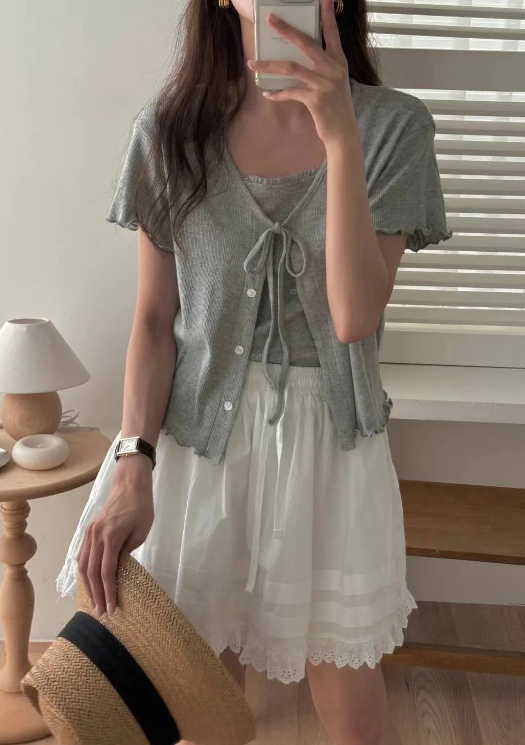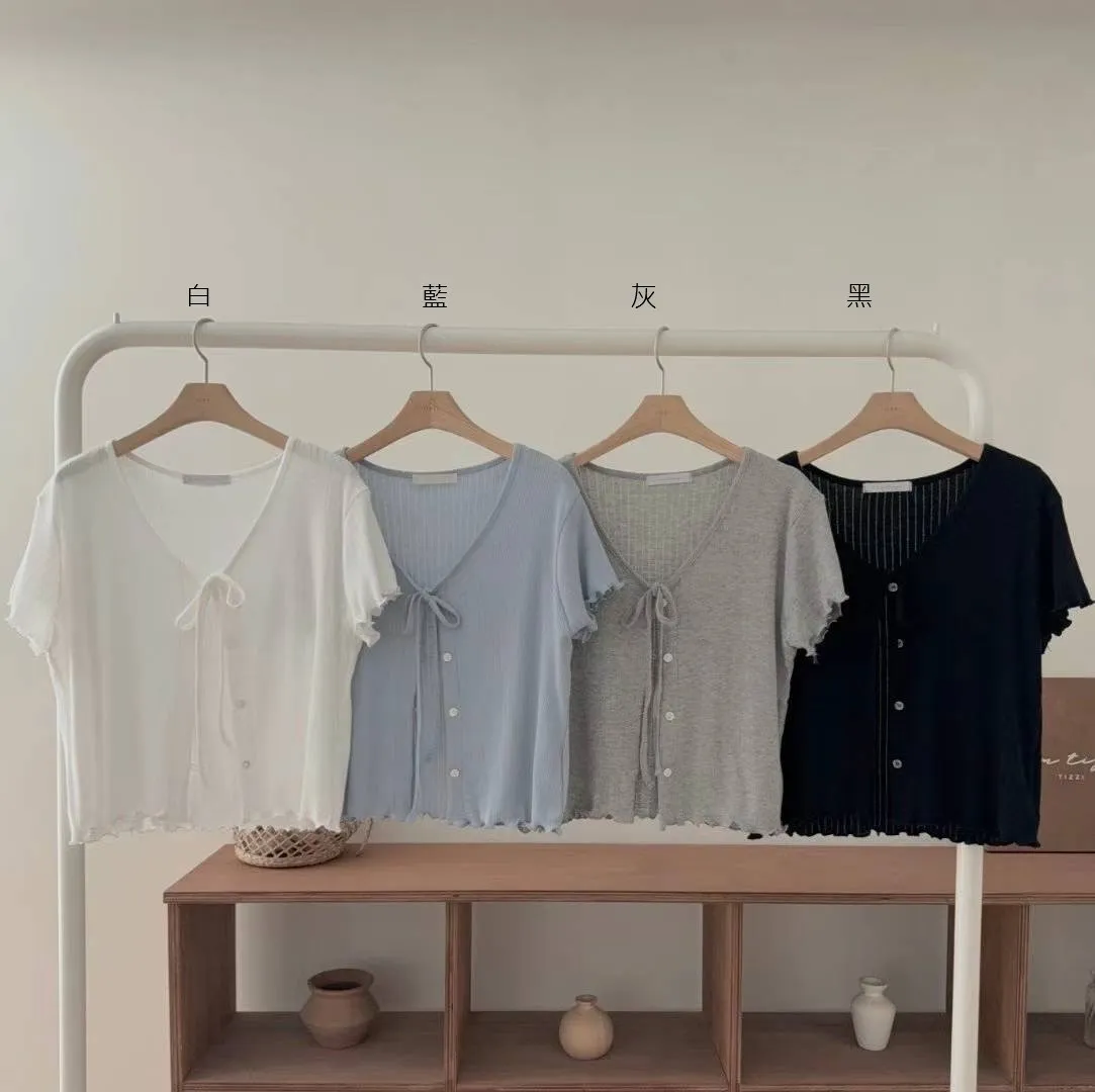 KM151套裝的薄款胸綁帶小罩衫 白 藍 灰 黑 官網價$790 線上價$760