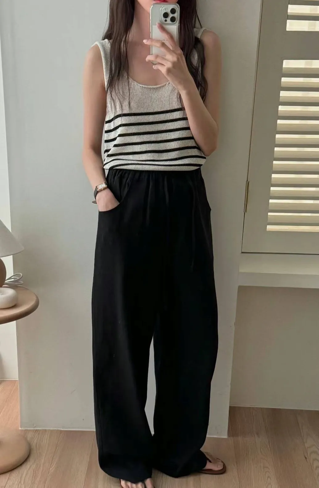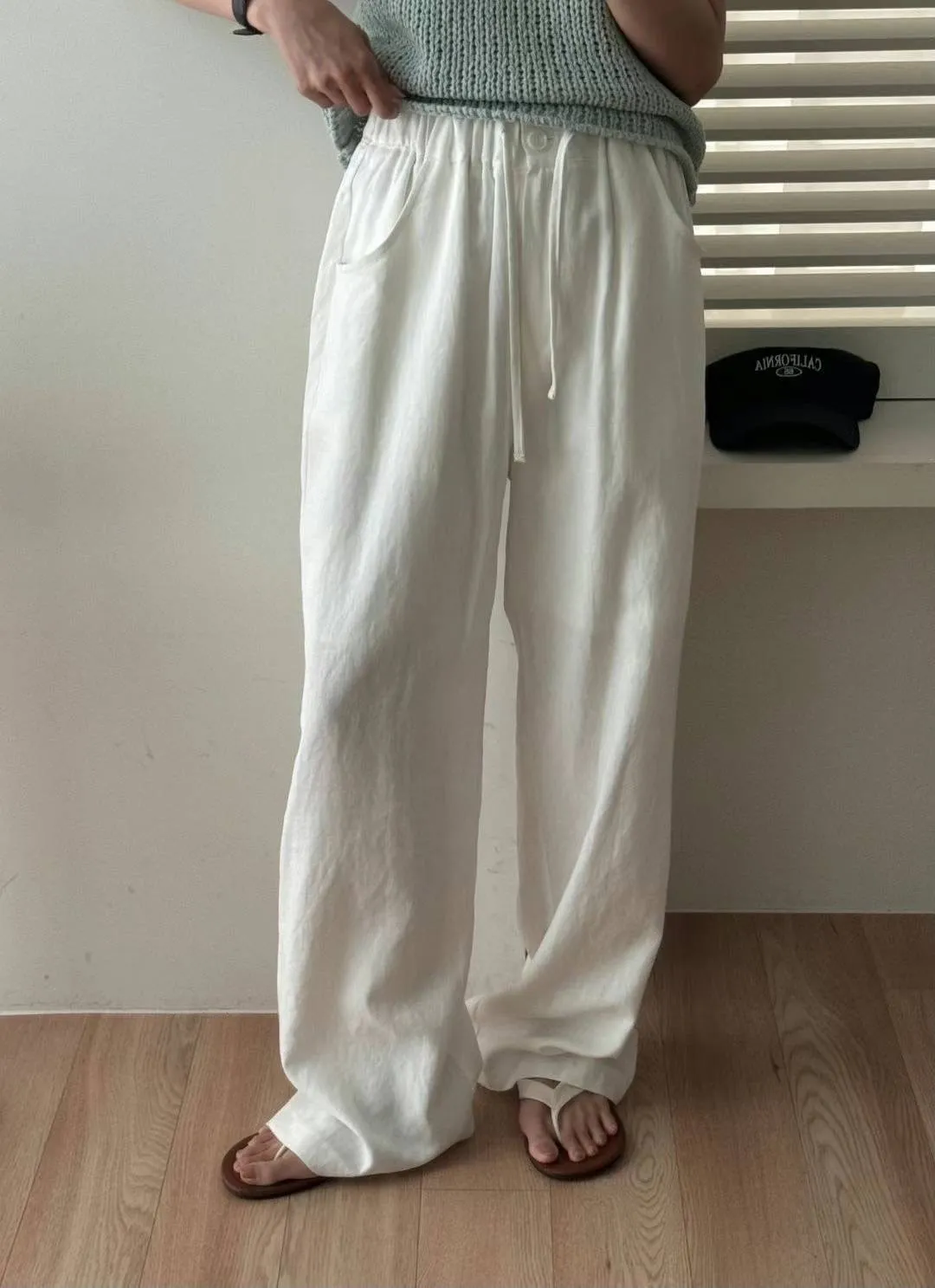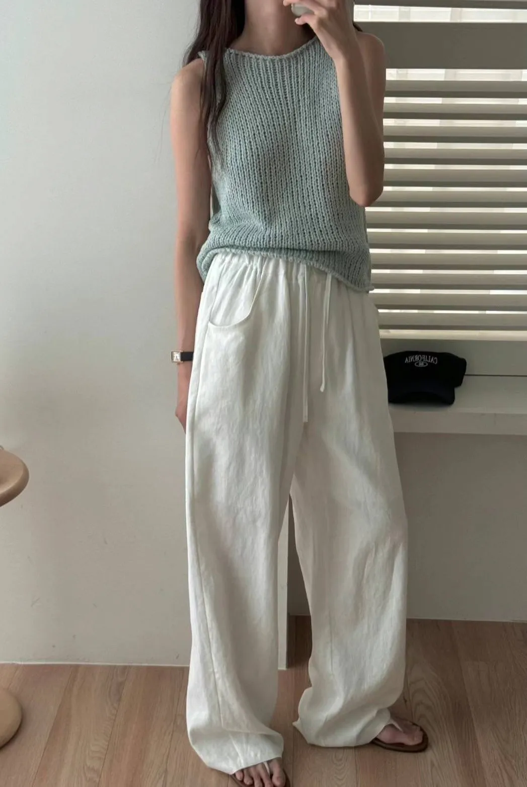 棉+亞麻 腰前有鈕扣 全腰鬆緊 有口袋