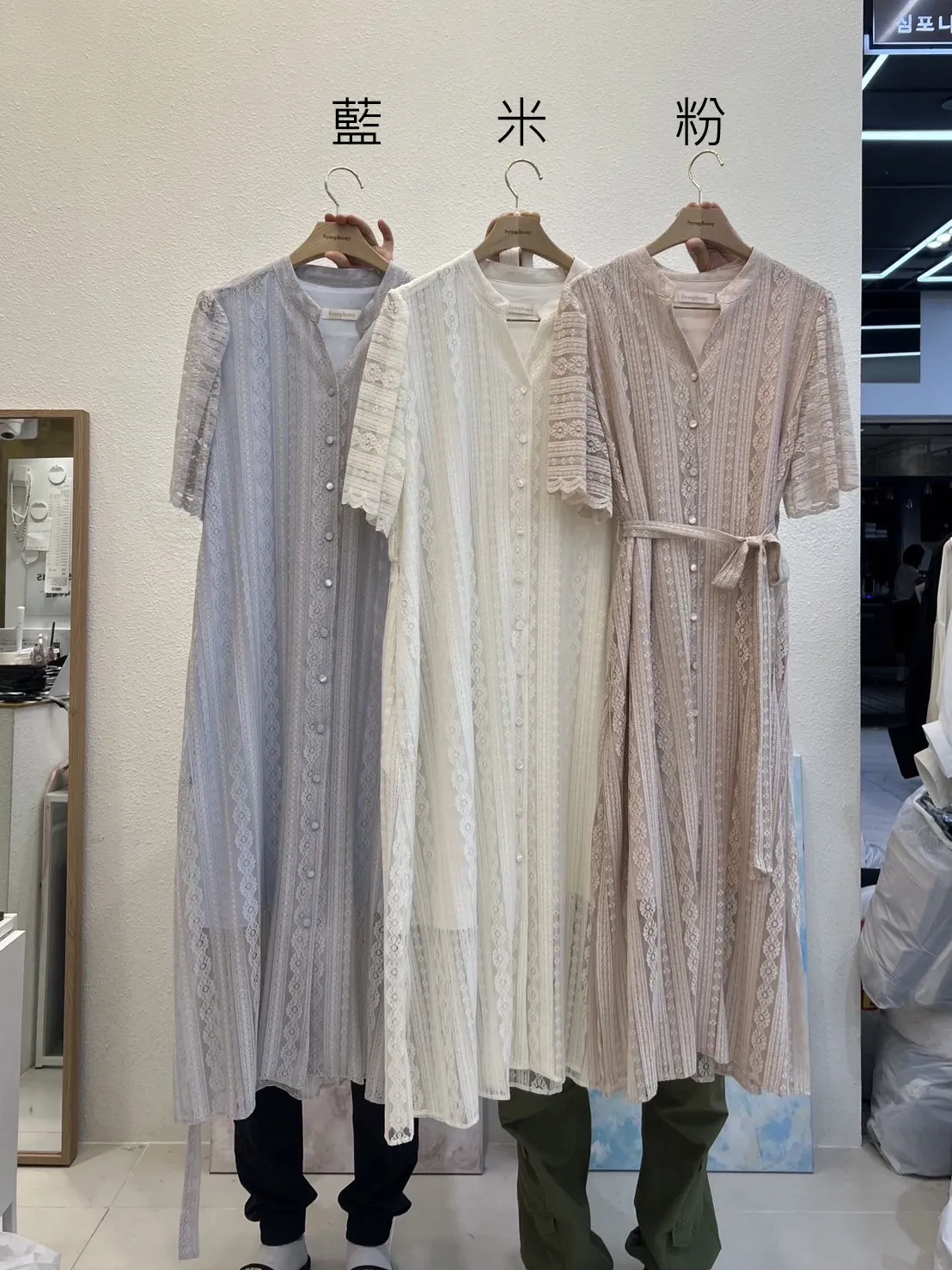 KM193氣質高雅排釦罩衫洋裝(有綁帶) 米 藍 粉 官網價$1650 線上價$1620