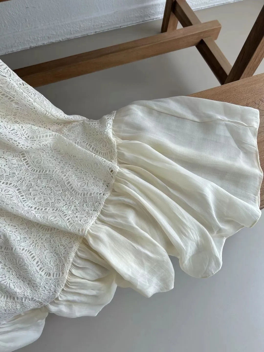 蕾絲+雪紡 肩帶可調 V領細緻簍空蕾絲 薄紗下擺 有內裡