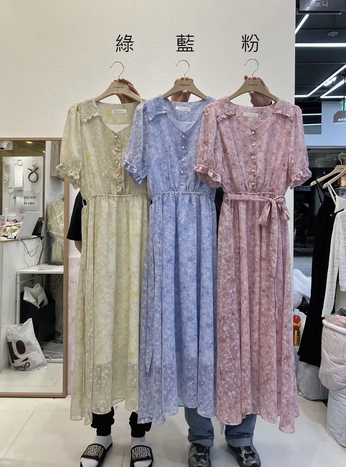 KM208精緻立體面料荷葉袖洋裝 綠 藍 粉 官網價$1650 線上價$1620