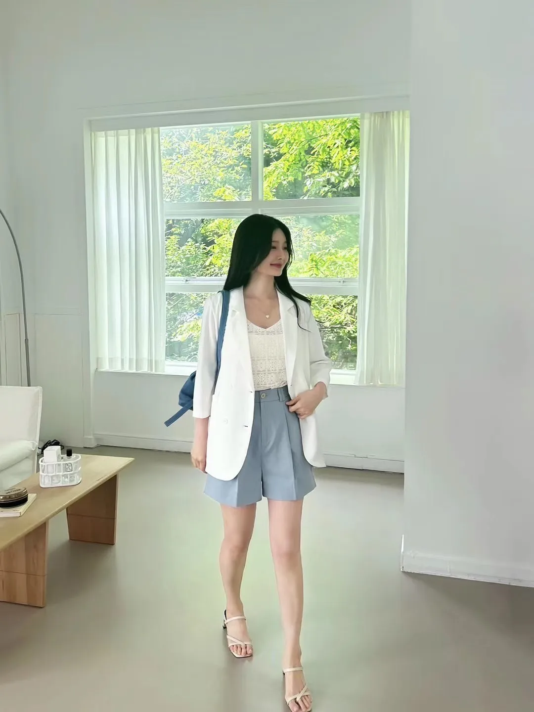 KM218單釦百搭短褲 米 藍 奶茶 黑 官網價$899 線上價$869