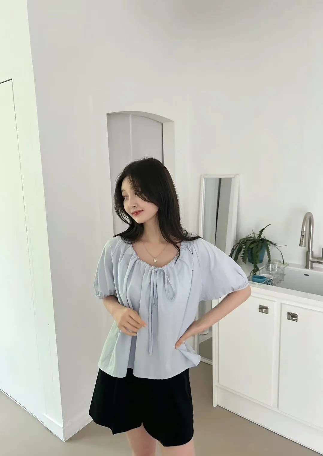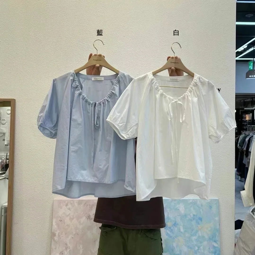 KM222胸綁帶圓領上衣 白 藍 官網價$990 線上價$960