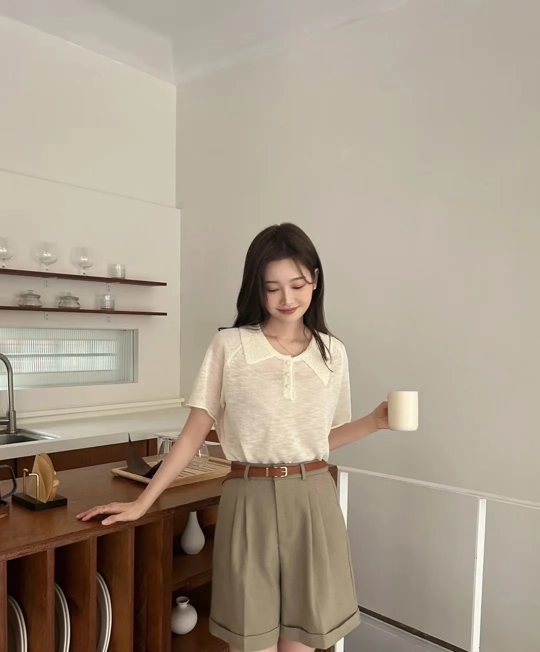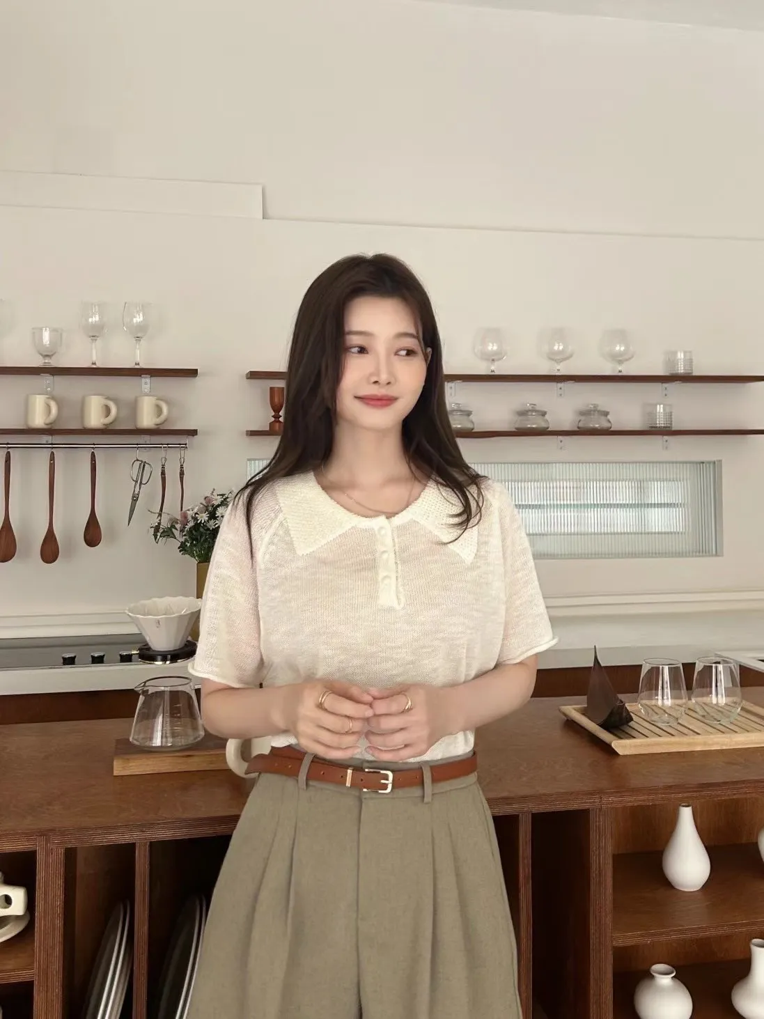 KM224氣質薄款透光POLO衫 米 粉 灰 官網價$990 線上價$960