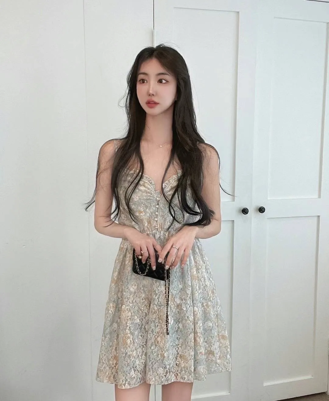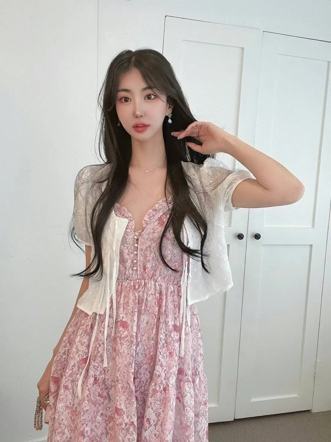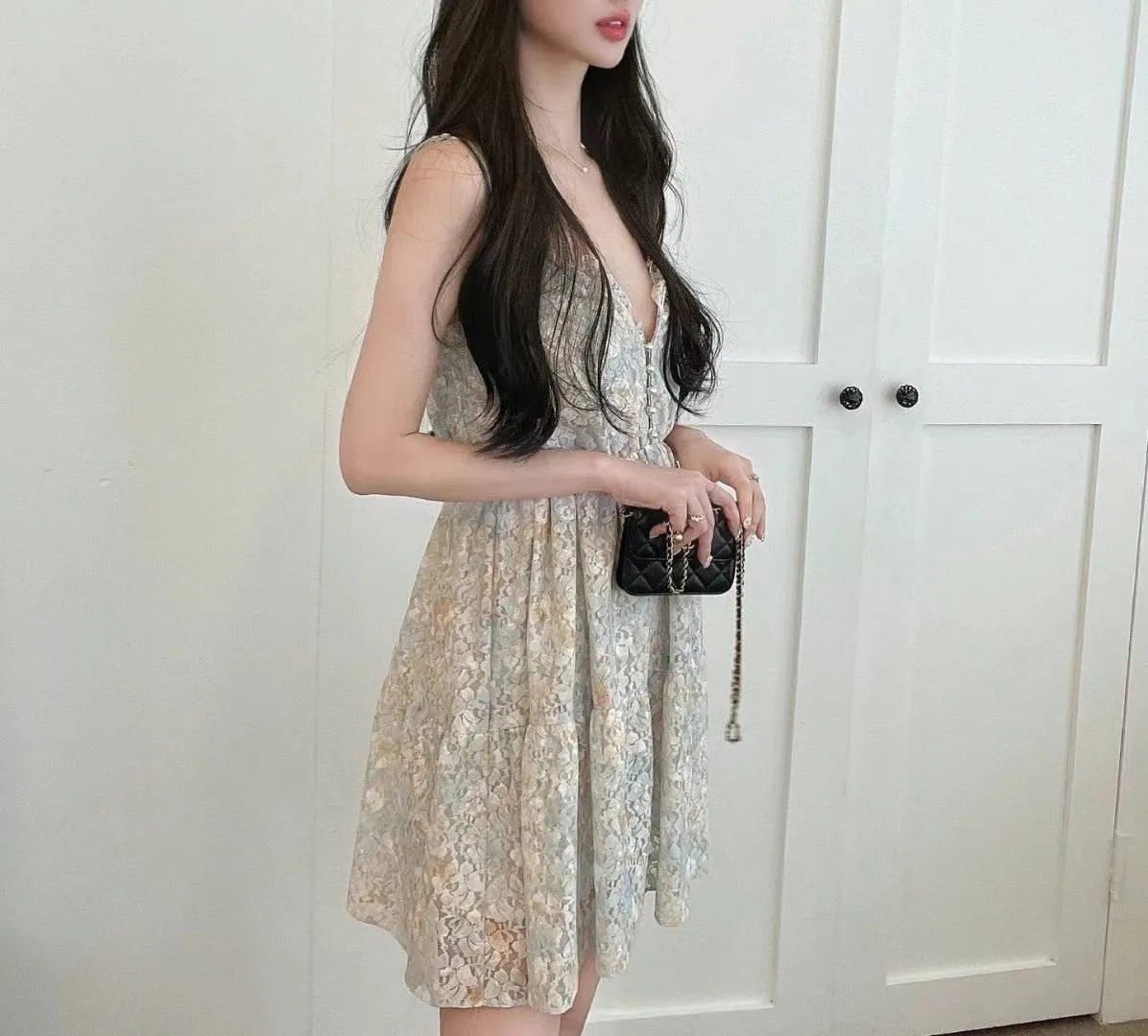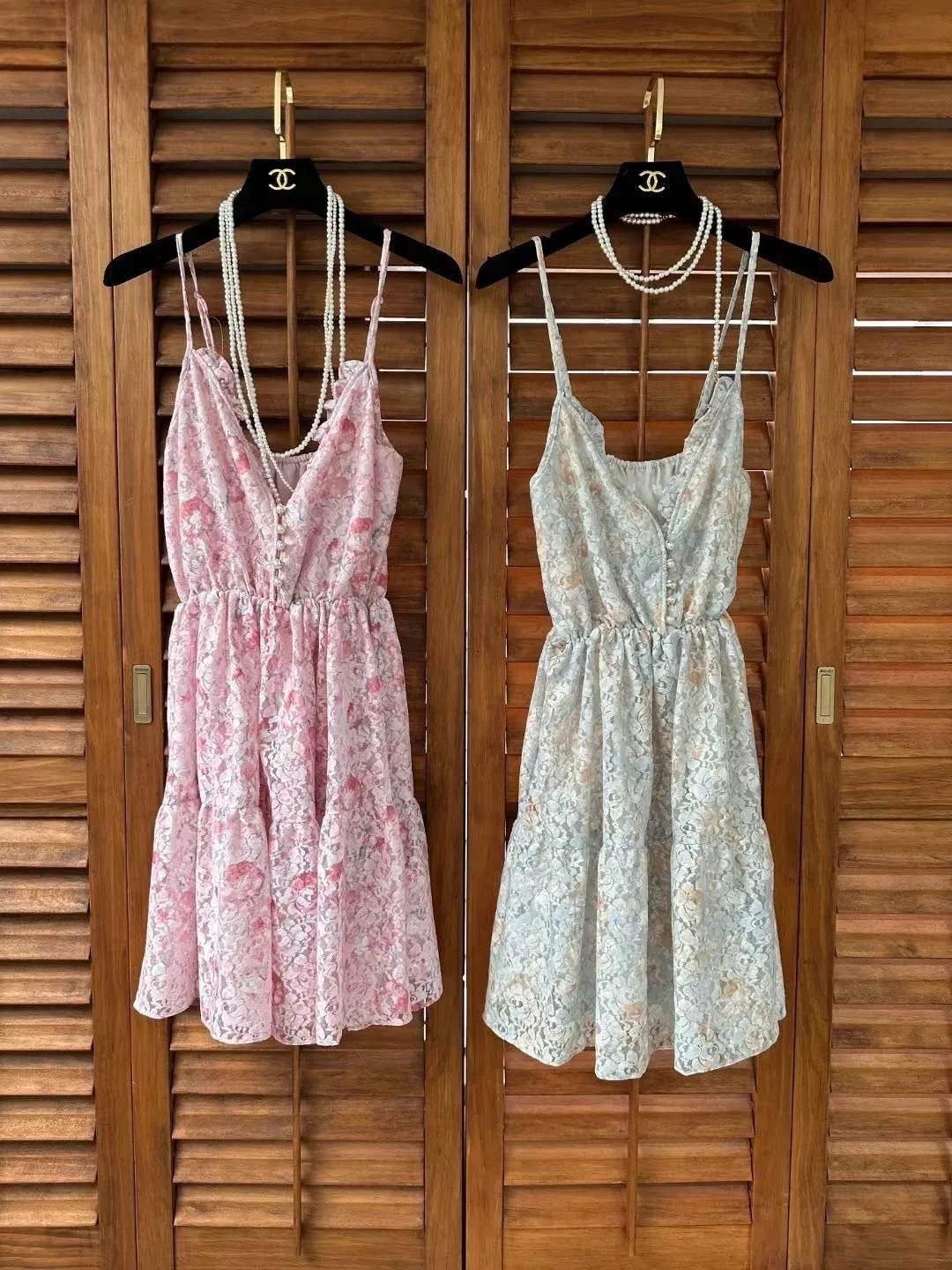雪紡 金邊珍珠釦 有內裡 腰綁帶 腰有鬆緊 短版洋裝 肩帶可調