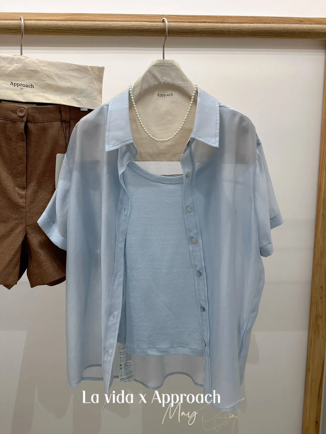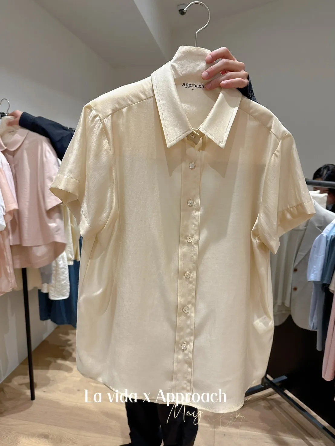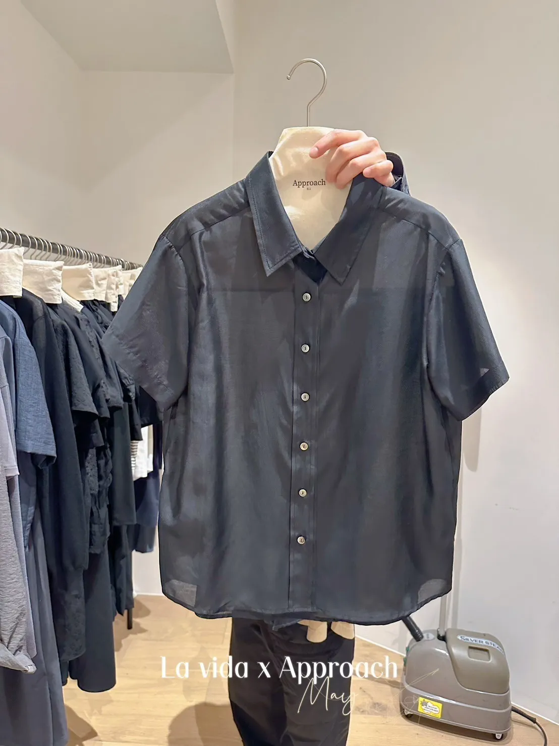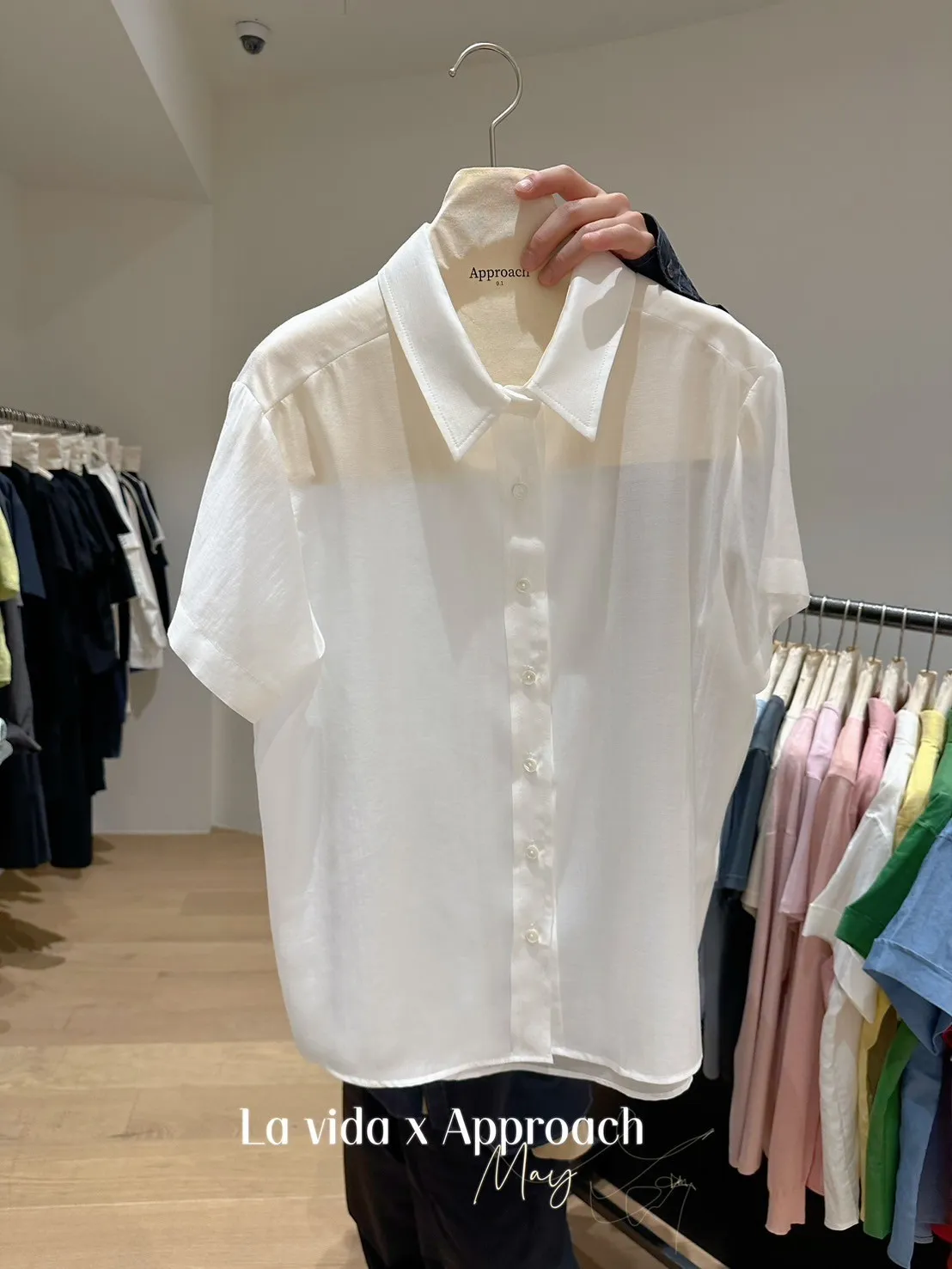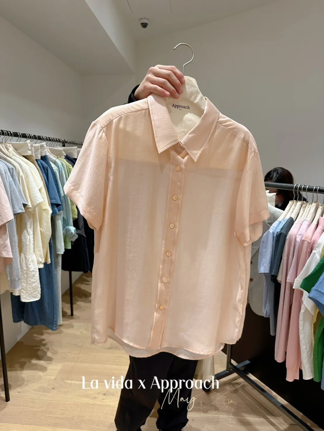 KM286天絲透光薄款短袖襯衫 白 黃 粉 藍 黑 官網價$1050 線上價$1020天絲100% 親膚舒適 光澤感面料 薄款輕盈適合夏天 貝殼釦