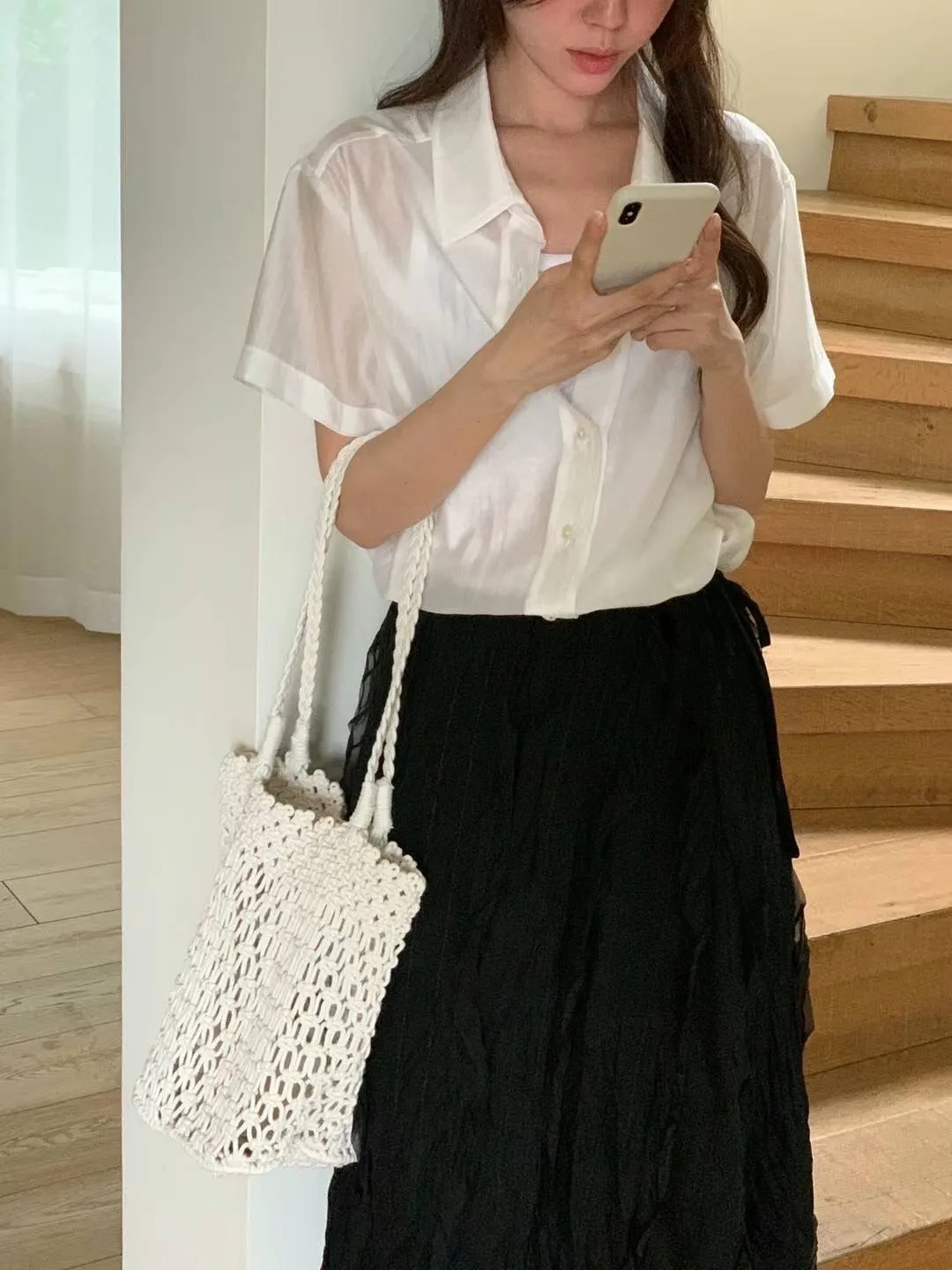 KM286天絲透光薄款短袖襯衫 白 黃 粉 藍 黑 官網價$1050 線上價$1020
