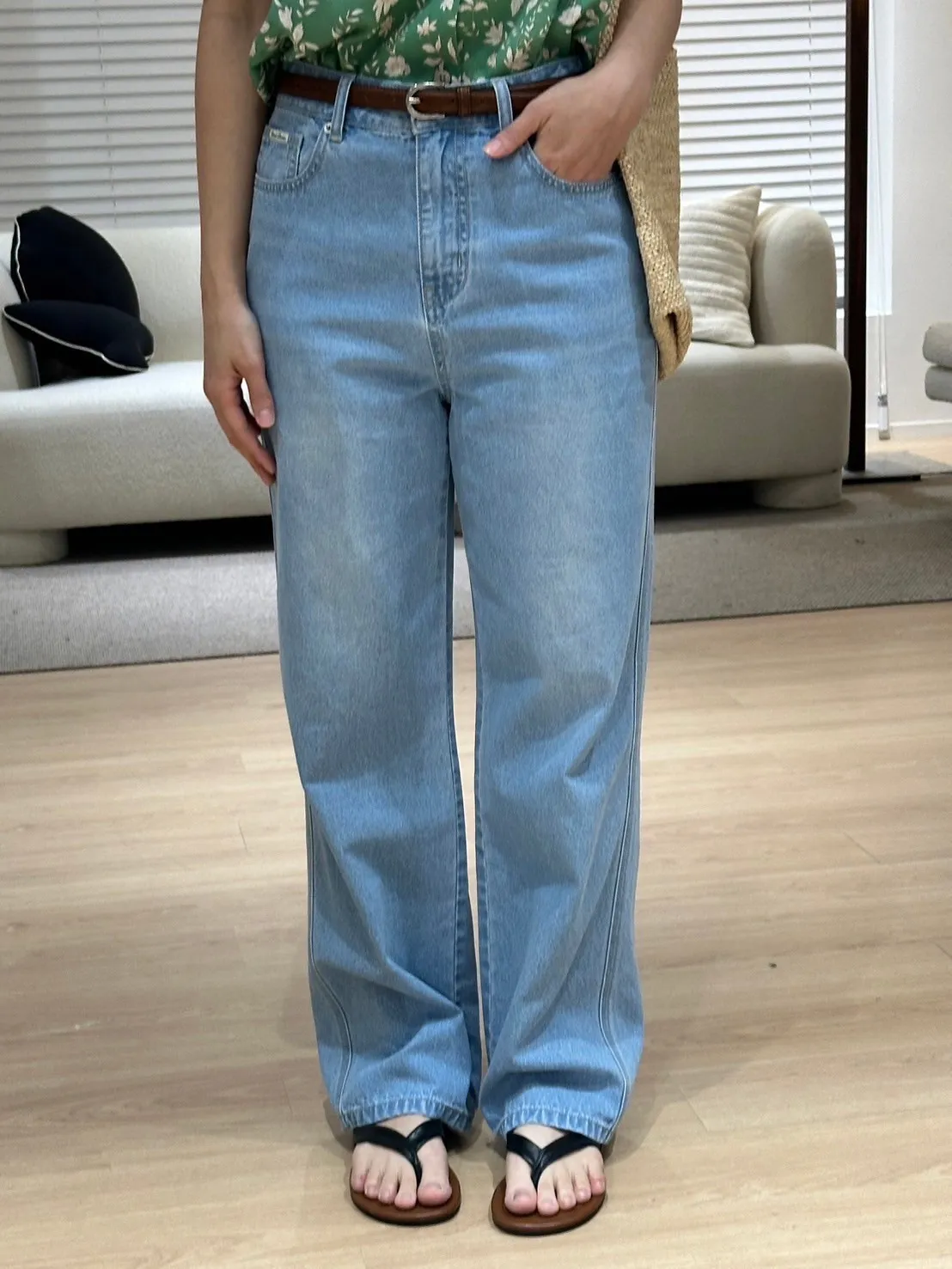 直播中歐膩和elma的褲子有色差,實品是elma穿較淺的顏色