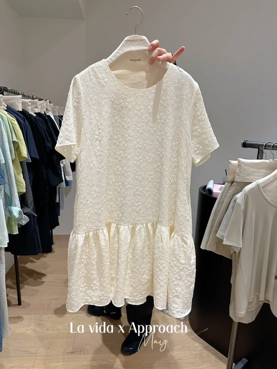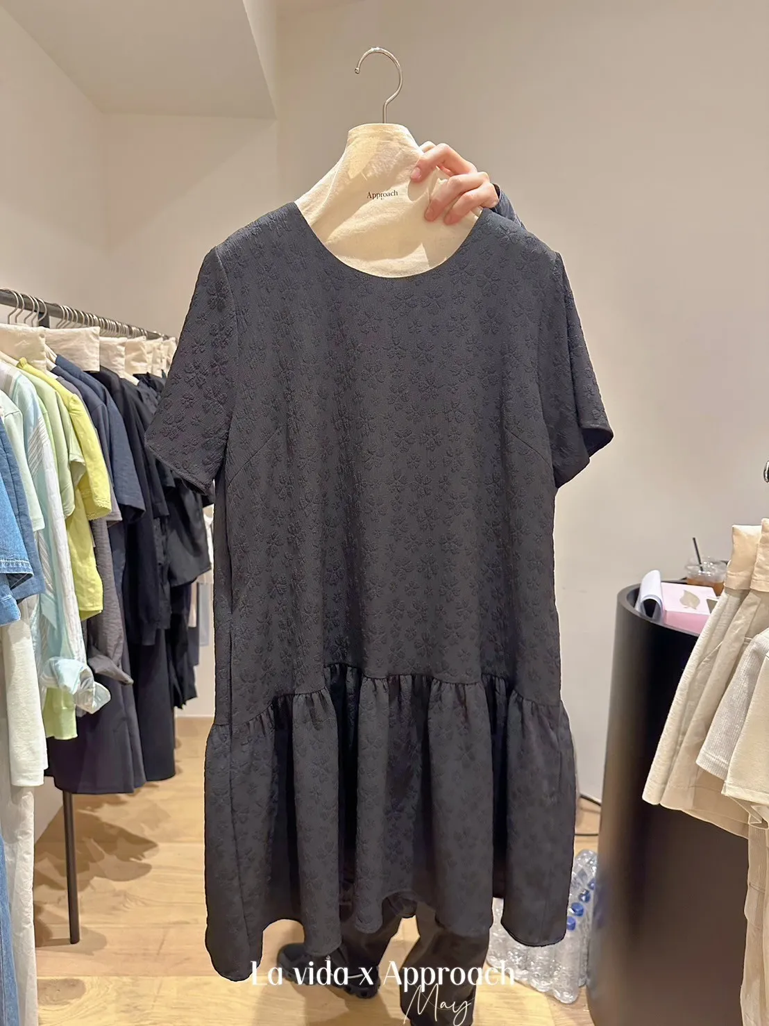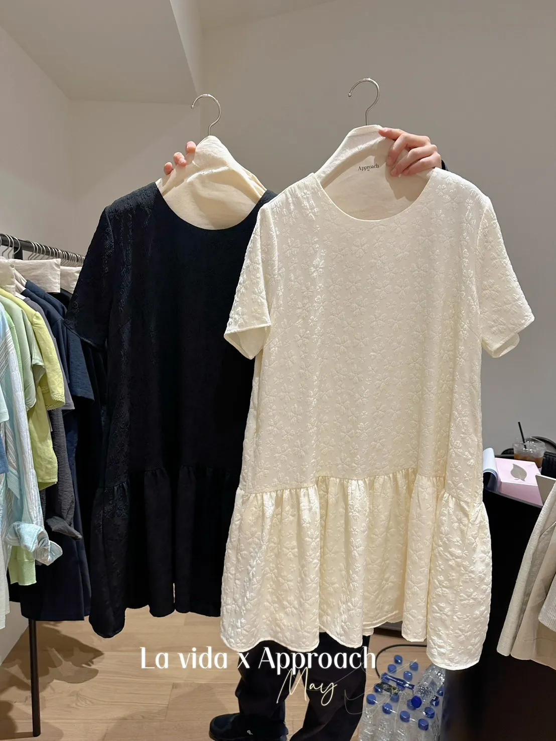 KM293薄款花朵壓紋洋裝 米 黑 官網價$1310 線上價$1280
