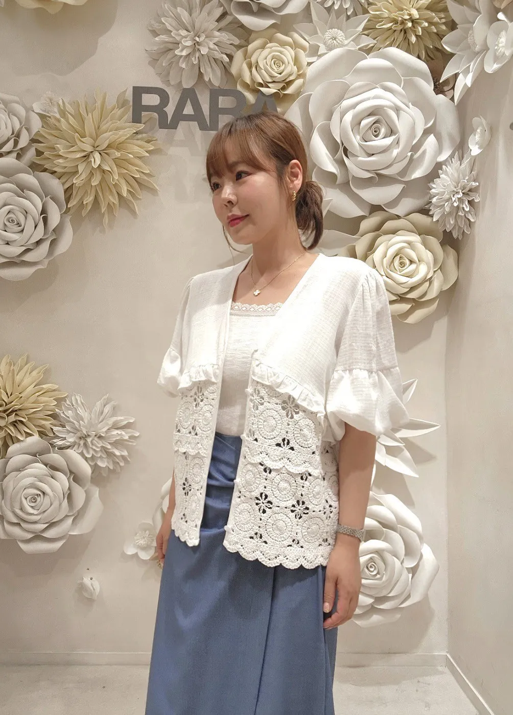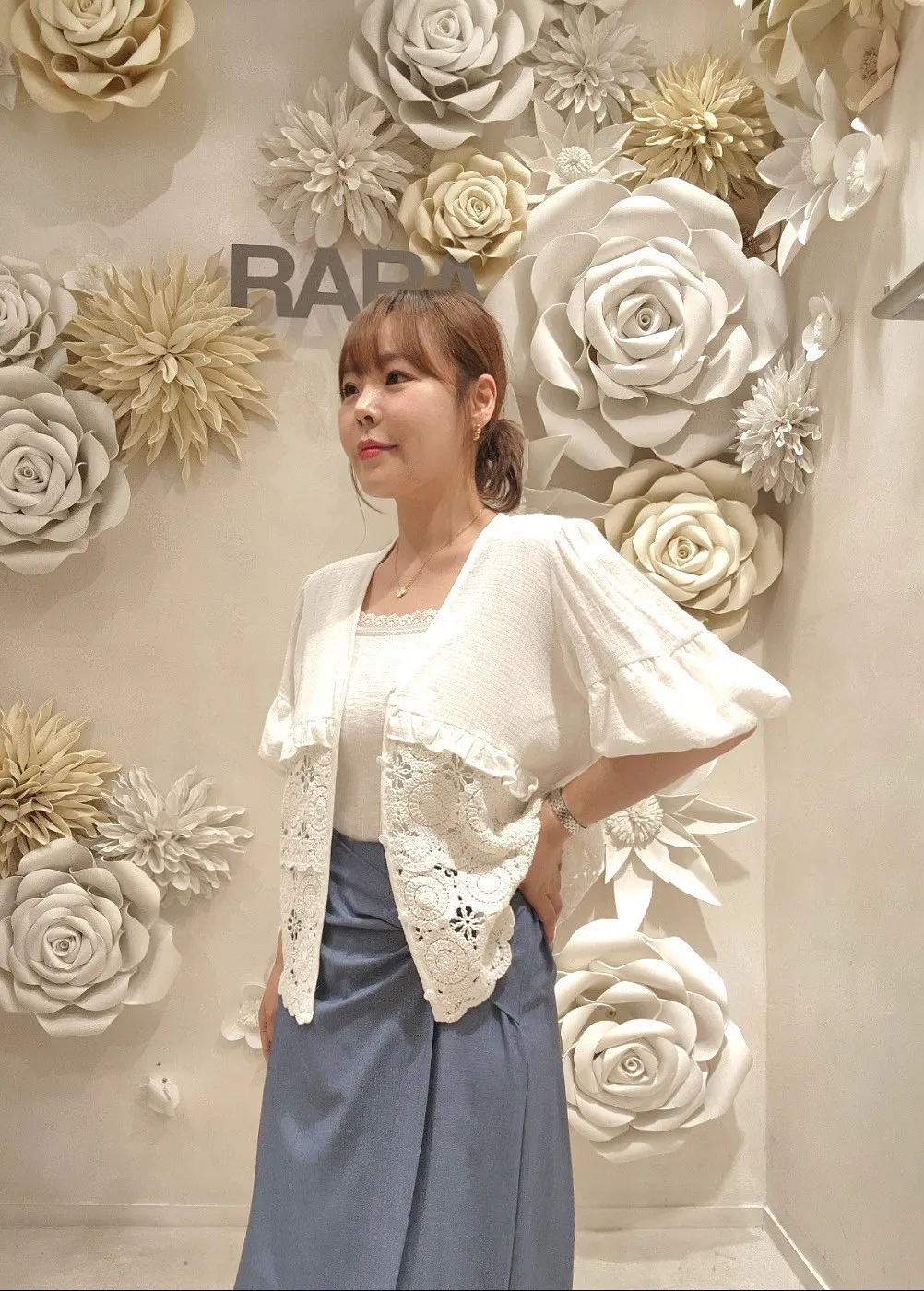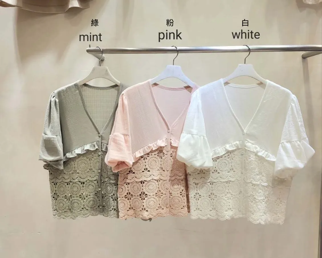 棉 日系簍空蕾絲 拼接視覺 釦子穿脫 層次美袖 袖口彈性 好看色調