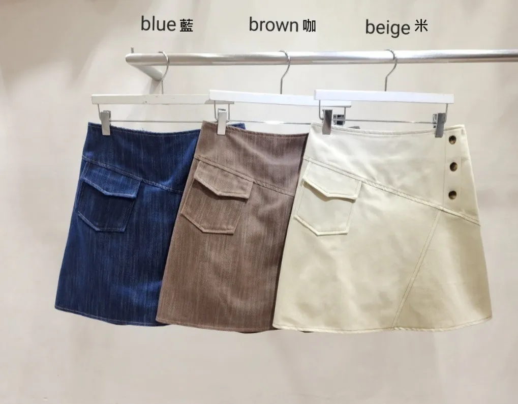 KM330切割車線設計感褲裙 藍 咖 米 官網價$990 線上價$960