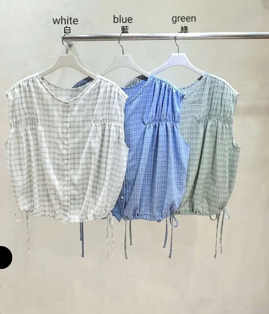 KM331細緻格紋兩面穿上衣 白 藍 綠 官網價$960 線上價$930