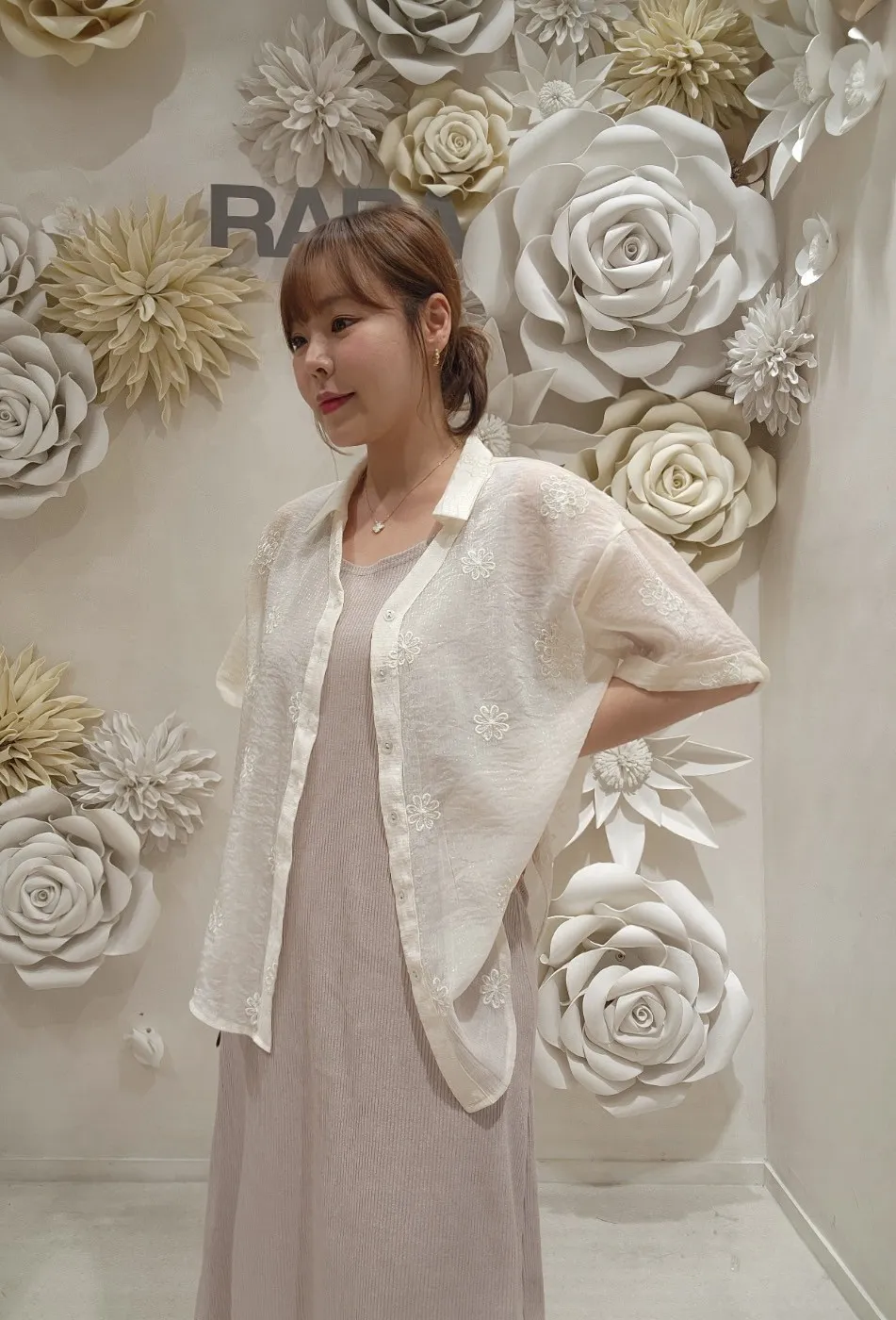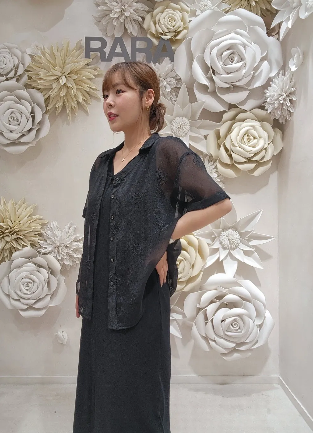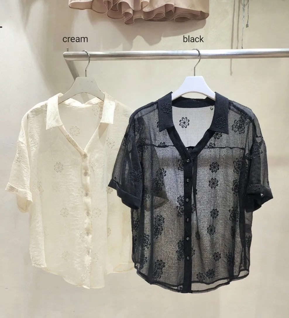 KM332推薦款雪紡紗透光刺繡美花襯衫 米 黑 官網價$1110 線上價$1080