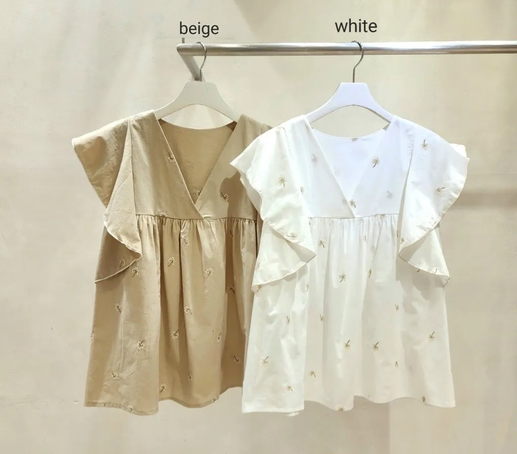 KM336蒲公英刺繡V領美衣 白 奶茶 官網價$1120 線上價$1090