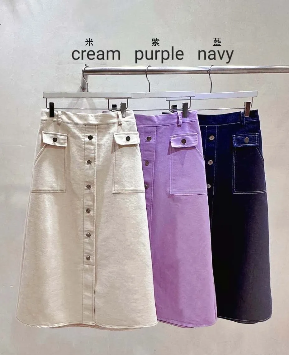 KM342加開款雙口袋長裙 米 紫 藍 $1150